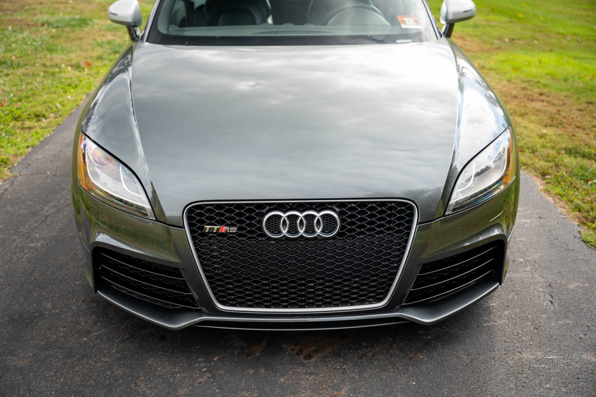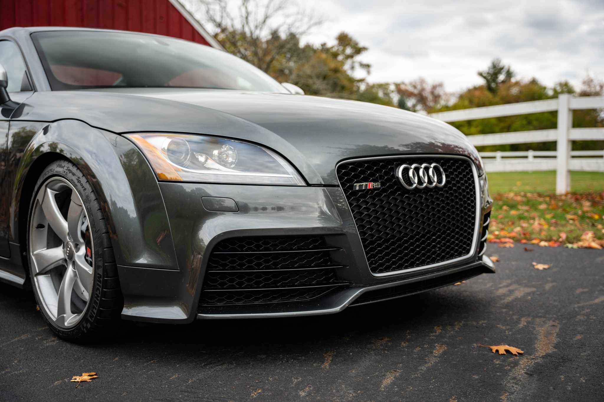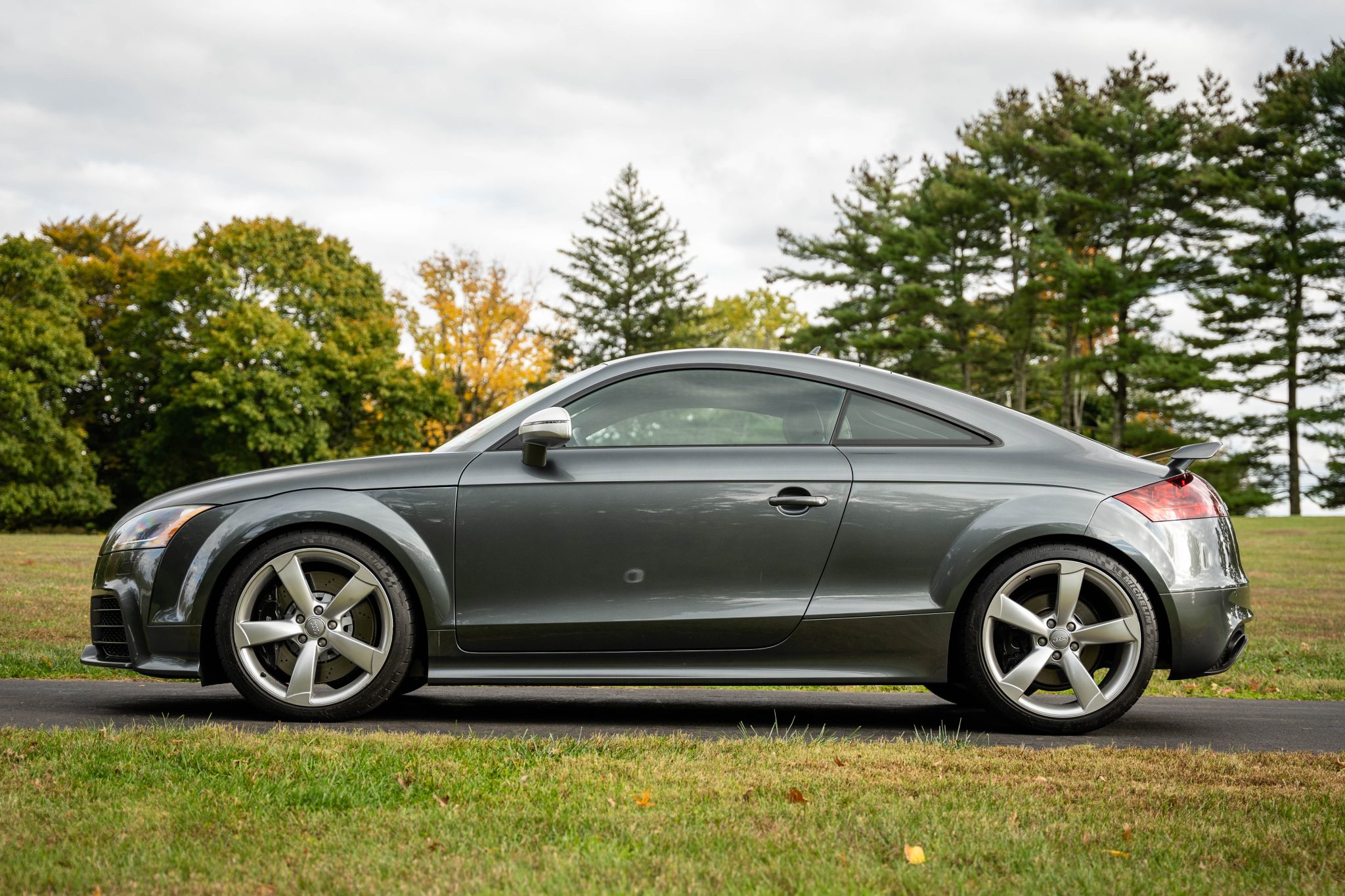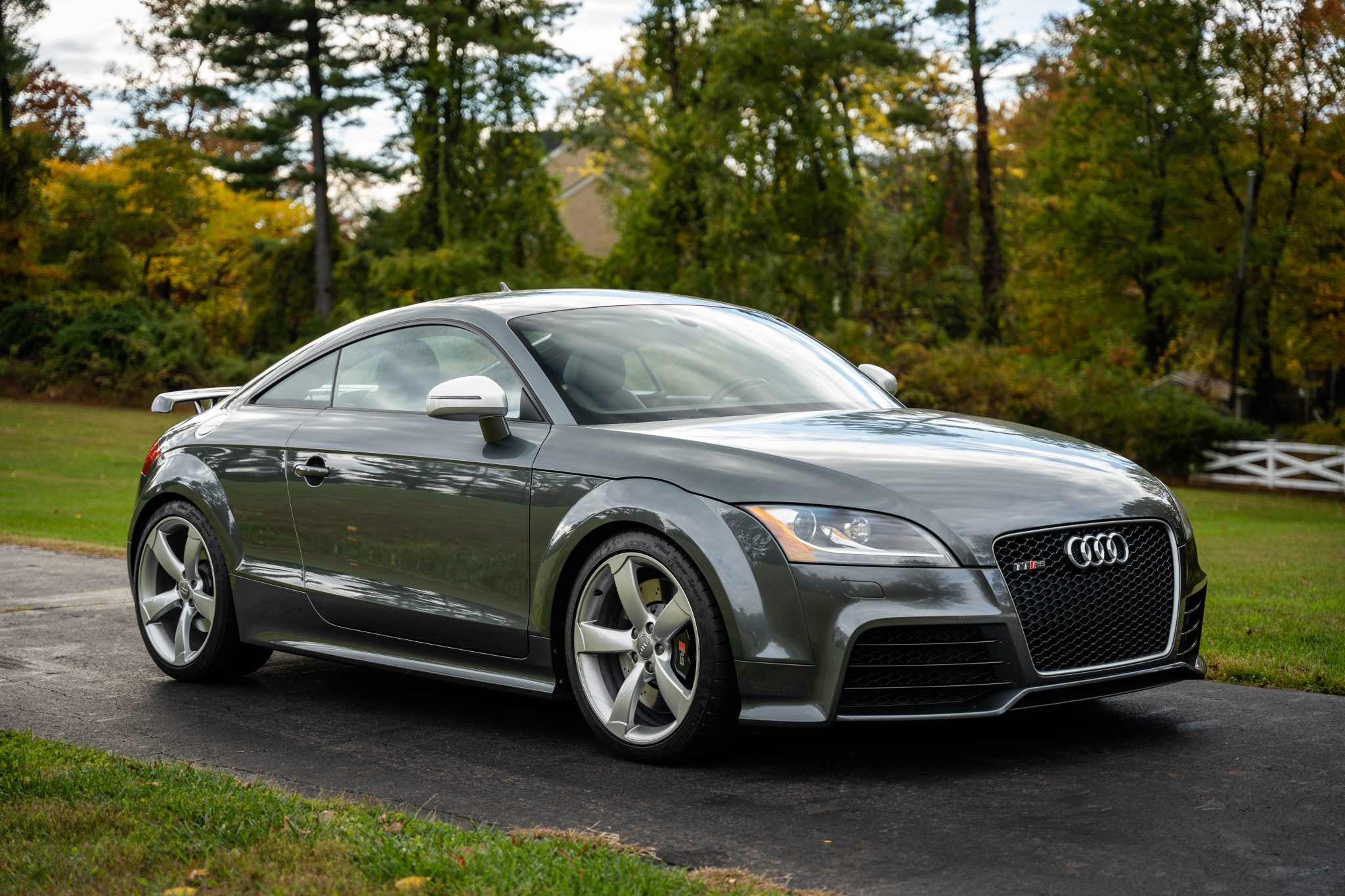 The car is finished in Daytona Gray over black Silk Nappa leather upholstery and powered by a turbocharged 2.5-liter inline-five mated to a six-speed manual transaxle and a Quattro all-wheel-drive system. Modifications include a CTS Turbo air intake system, an aftermarket downpipe and exhaust piping, a United Motorsports re-flashed engine computer, and a Pioneer multimedia stereo. Additional features include adaptive xenon headlights, 19” wheels, a TT RS rear wing, power-adjustable and heated front sport seats, automatic climate control, and navigation.