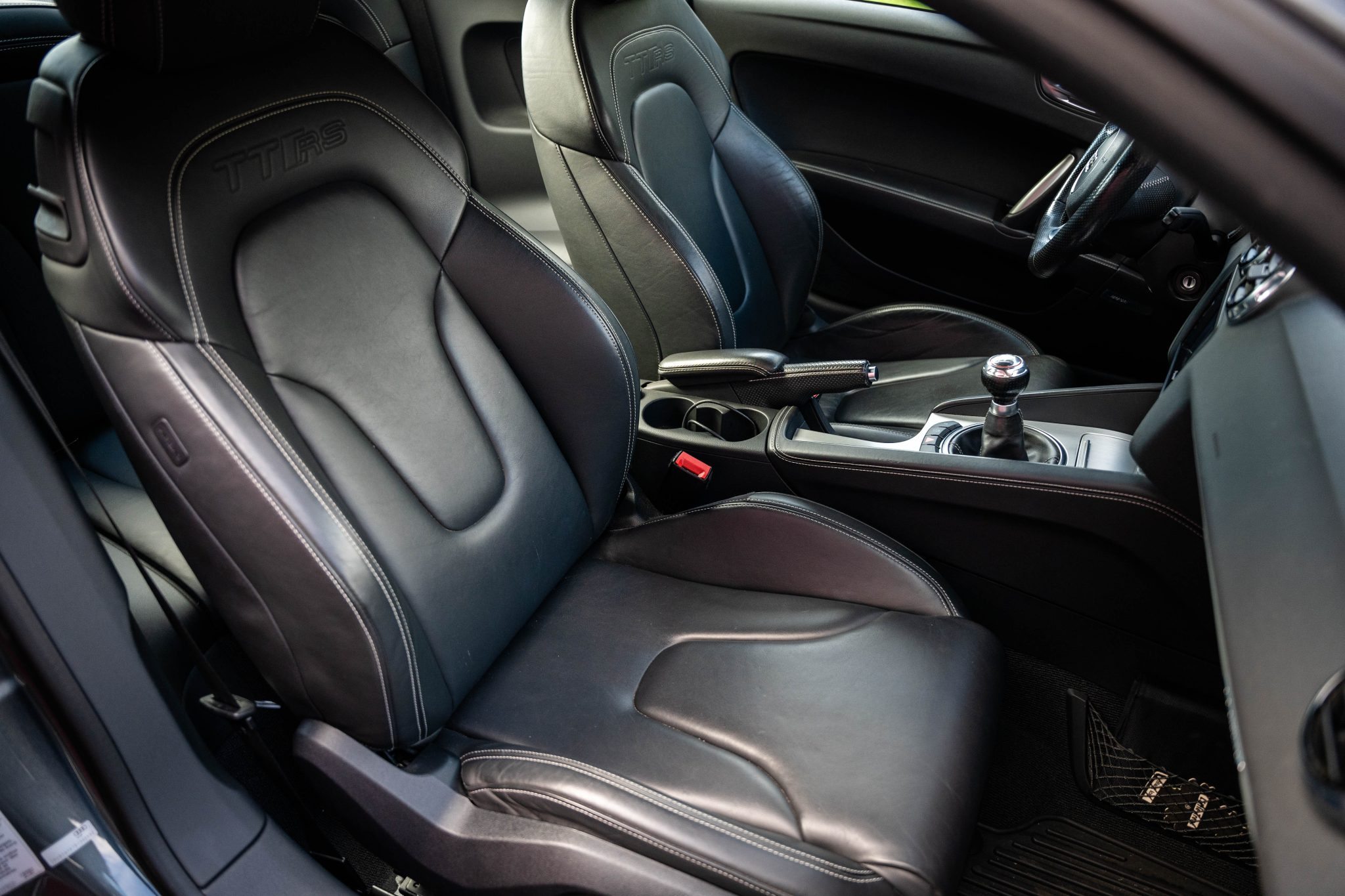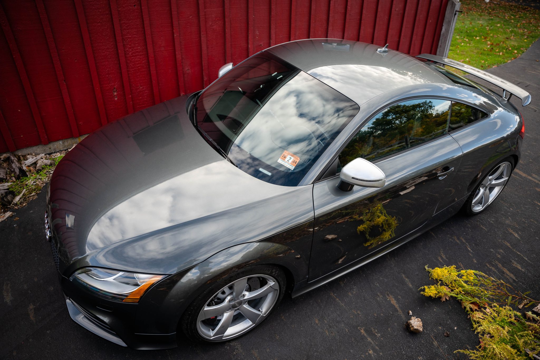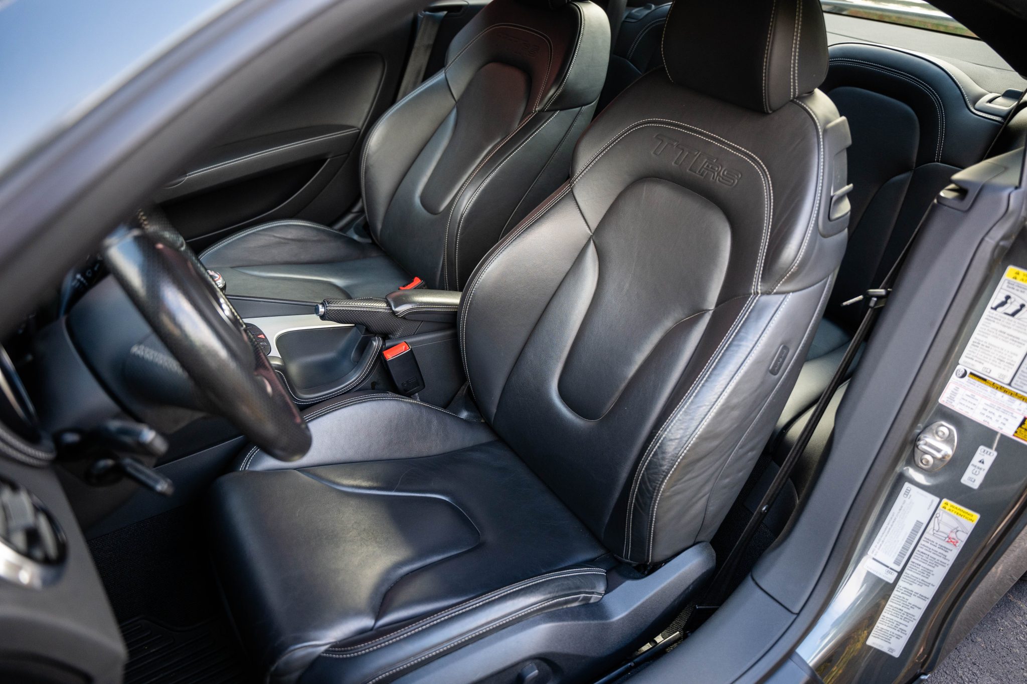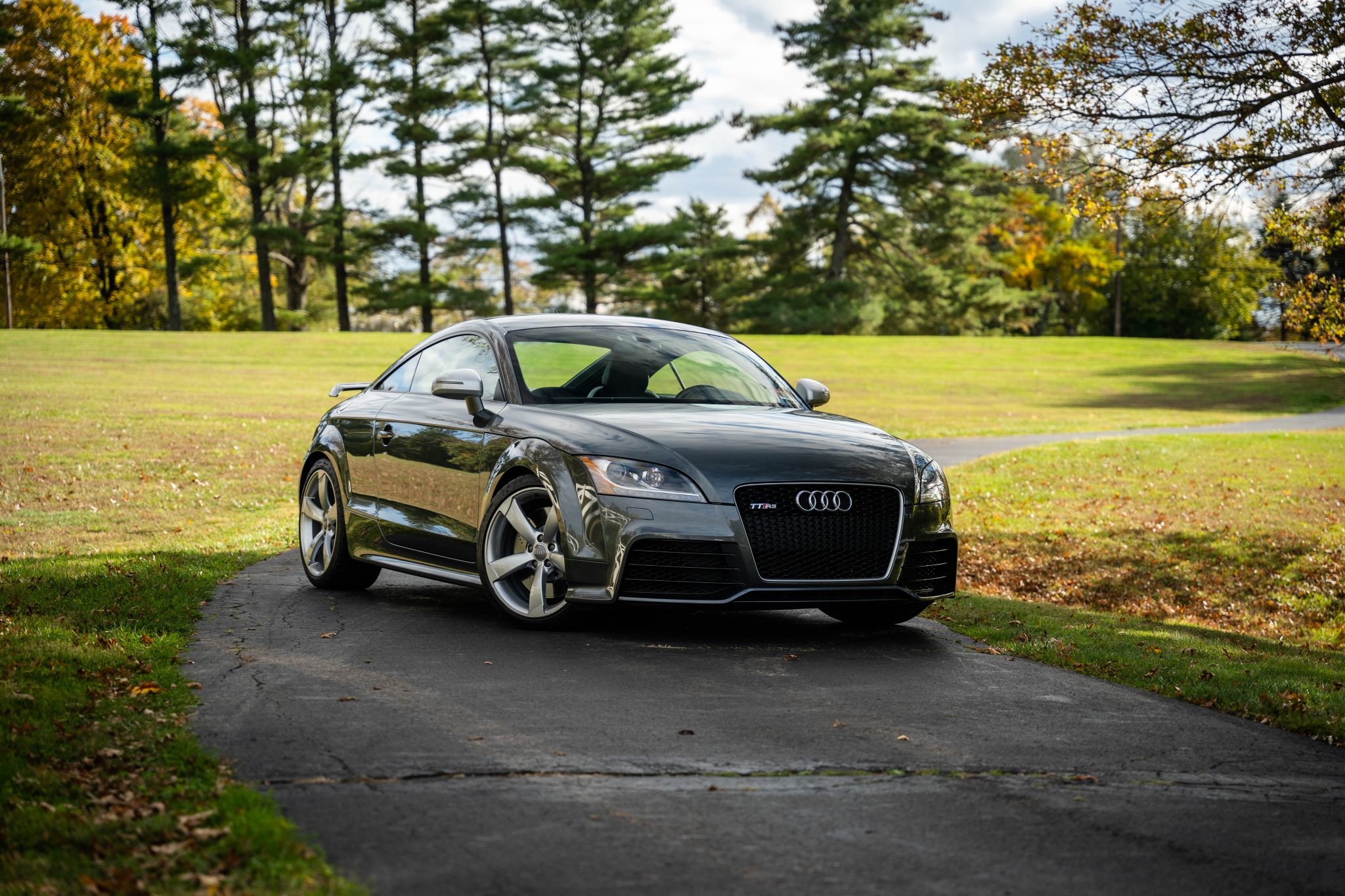 The car is finished in Daytona Gray over black Silk Nappa leather upholstery and powered by a turbocharged 2.5-liter inline-five mated to a six-speed manual transaxle and a Quattro all-wheel-drive system. Modifications include a CTS Turbo air intake system, an aftermarket downpipe and exhaust piping, a United Motorsports re-flashed engine computer, and a Pioneer multimedia stereo. Additional features include adaptive xenon headlights, 19” wheels, a TT RS rear wing, power-adjustable and heated front sport seats, automatic climate control, and navigation.