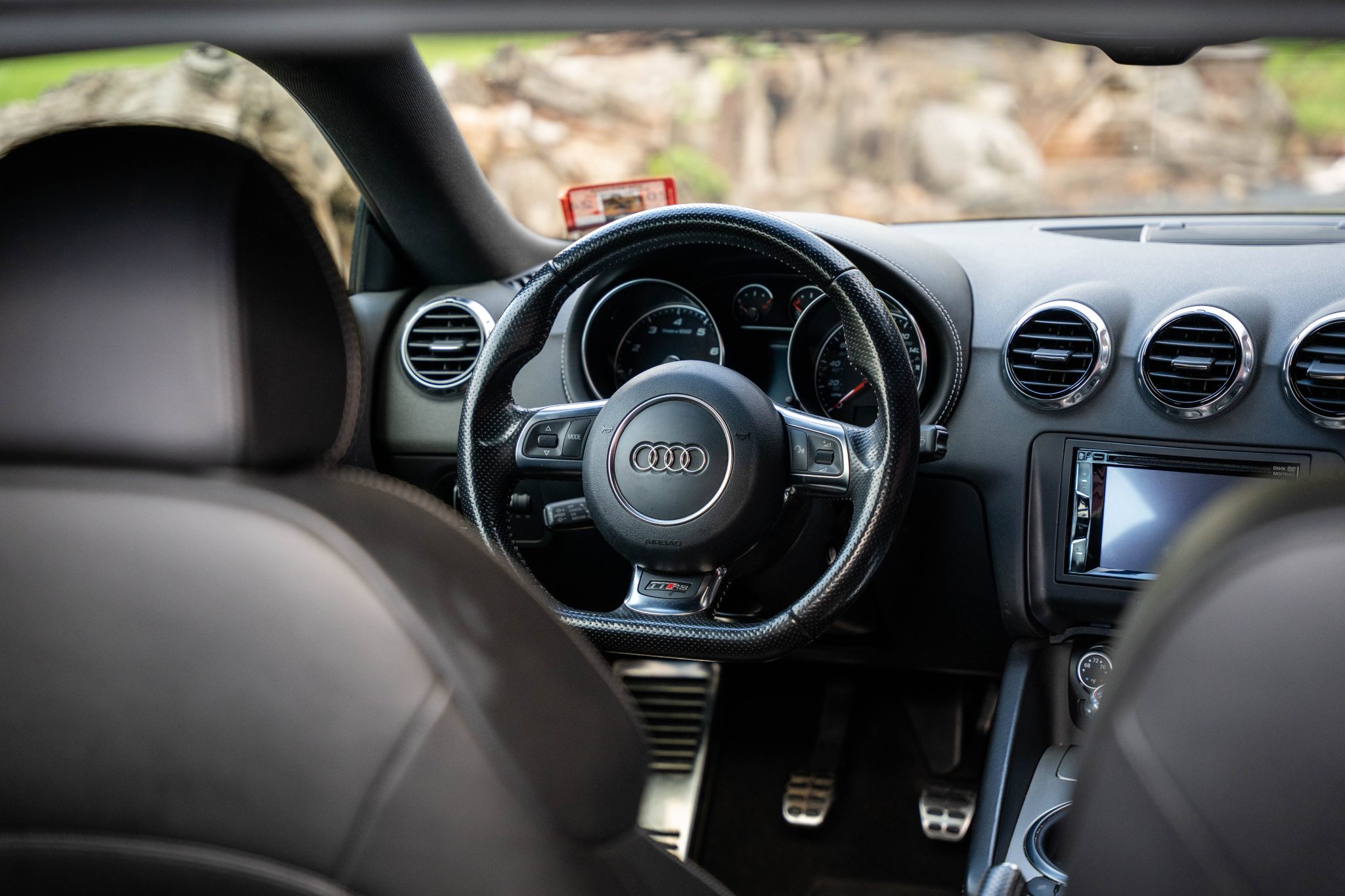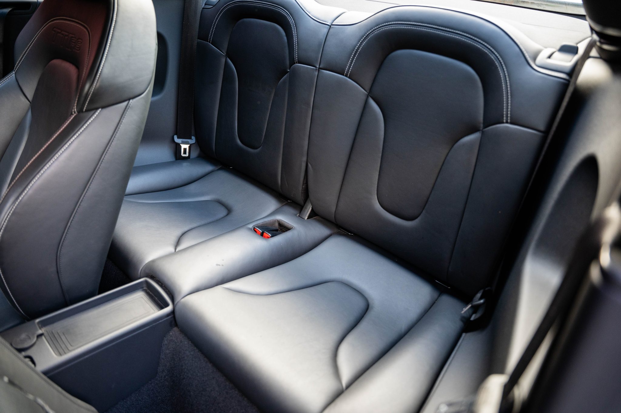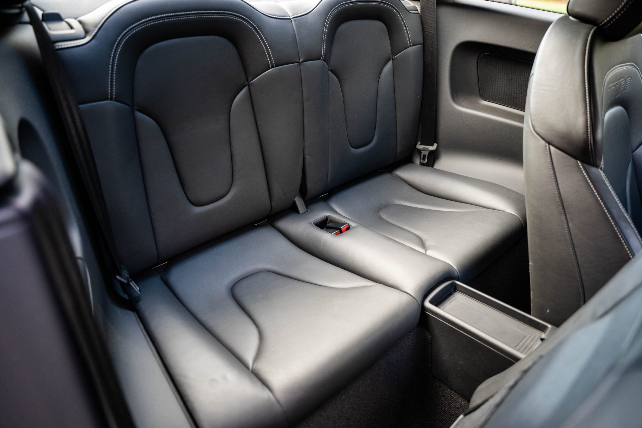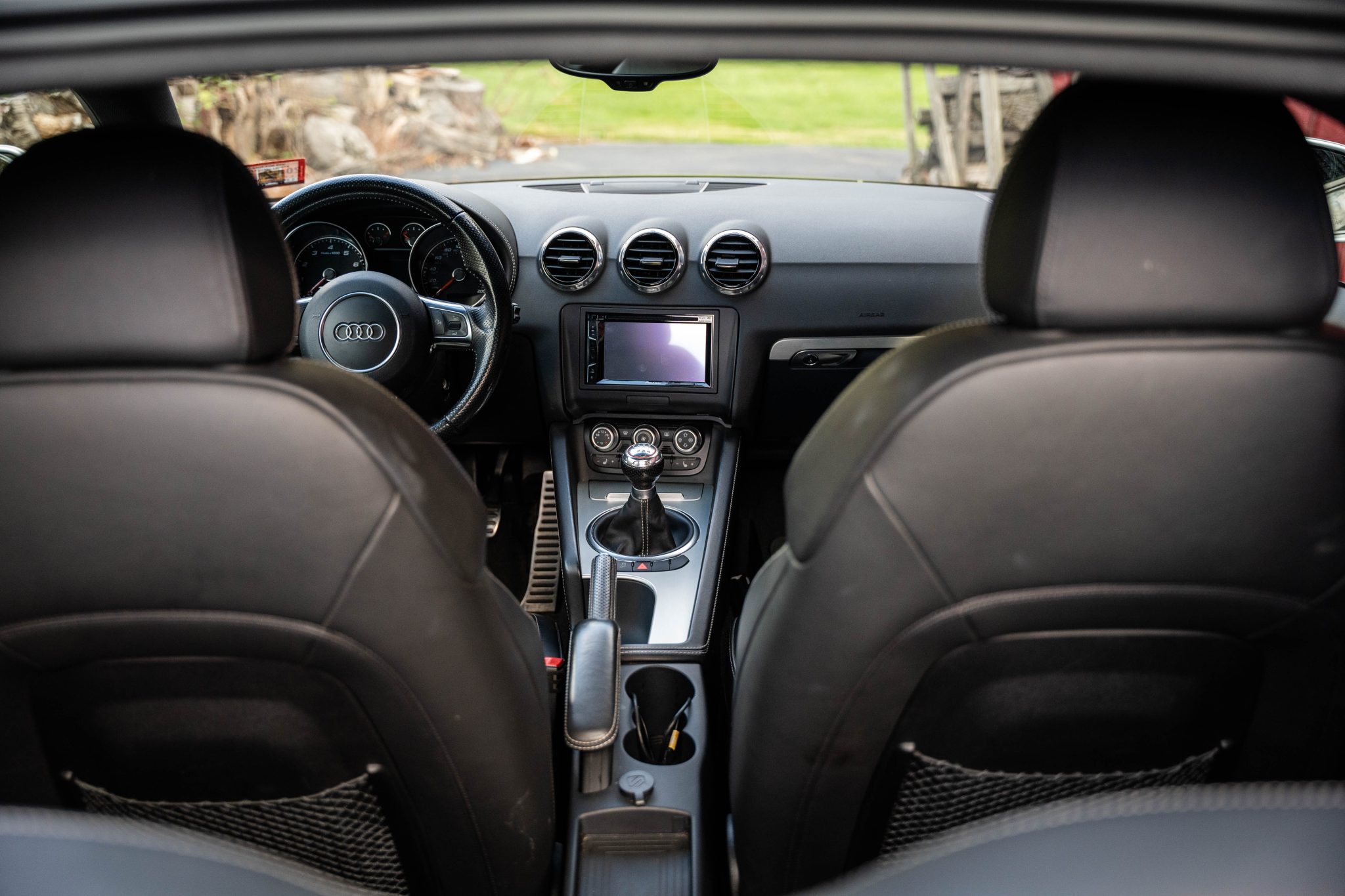 The car is finished in Daytona Gray over black Silk Nappa leather upholstery and powered by a turbocharged 2.5-liter inline-five mated to a six-speed manual transaxle and a Quattro all-wheel-drive system. Modifications include a CTS Turbo air intake system, an aftermarket downpipe and exhaust piping, a United Motorsports re-flashed engine computer, and a Pioneer multimedia stereo. Additional features include adaptive xenon headlights, 19” wheels, a TT RS rear wing, power-adjustable and heated front sport seats, automatic climate control, and navigation.
