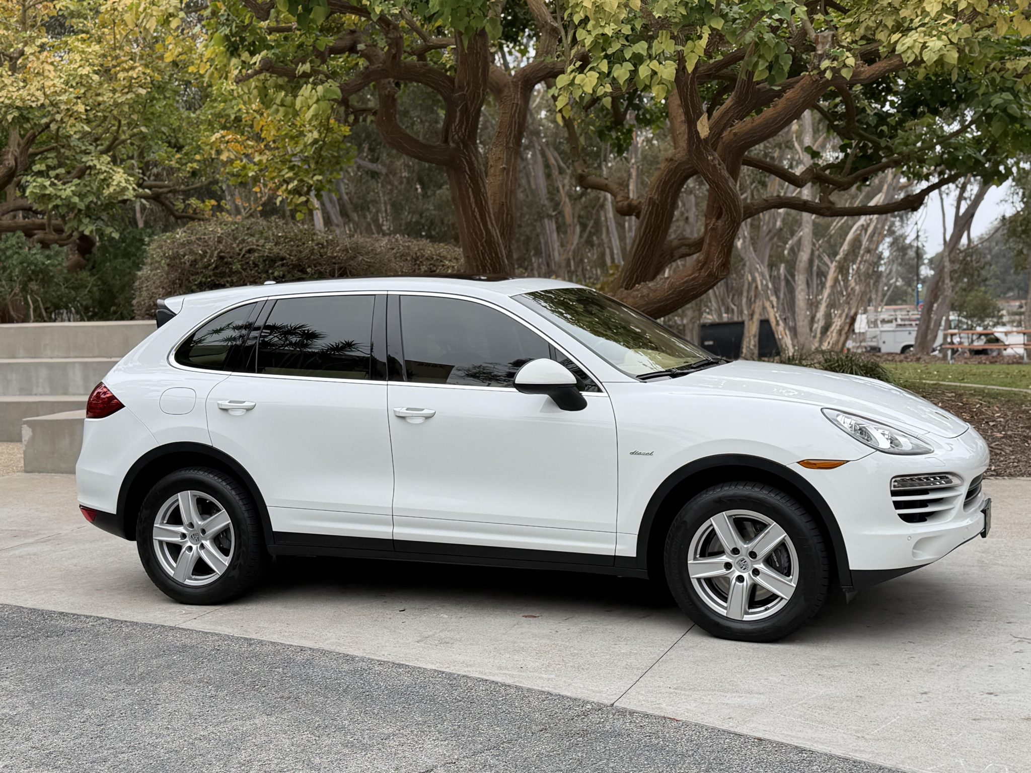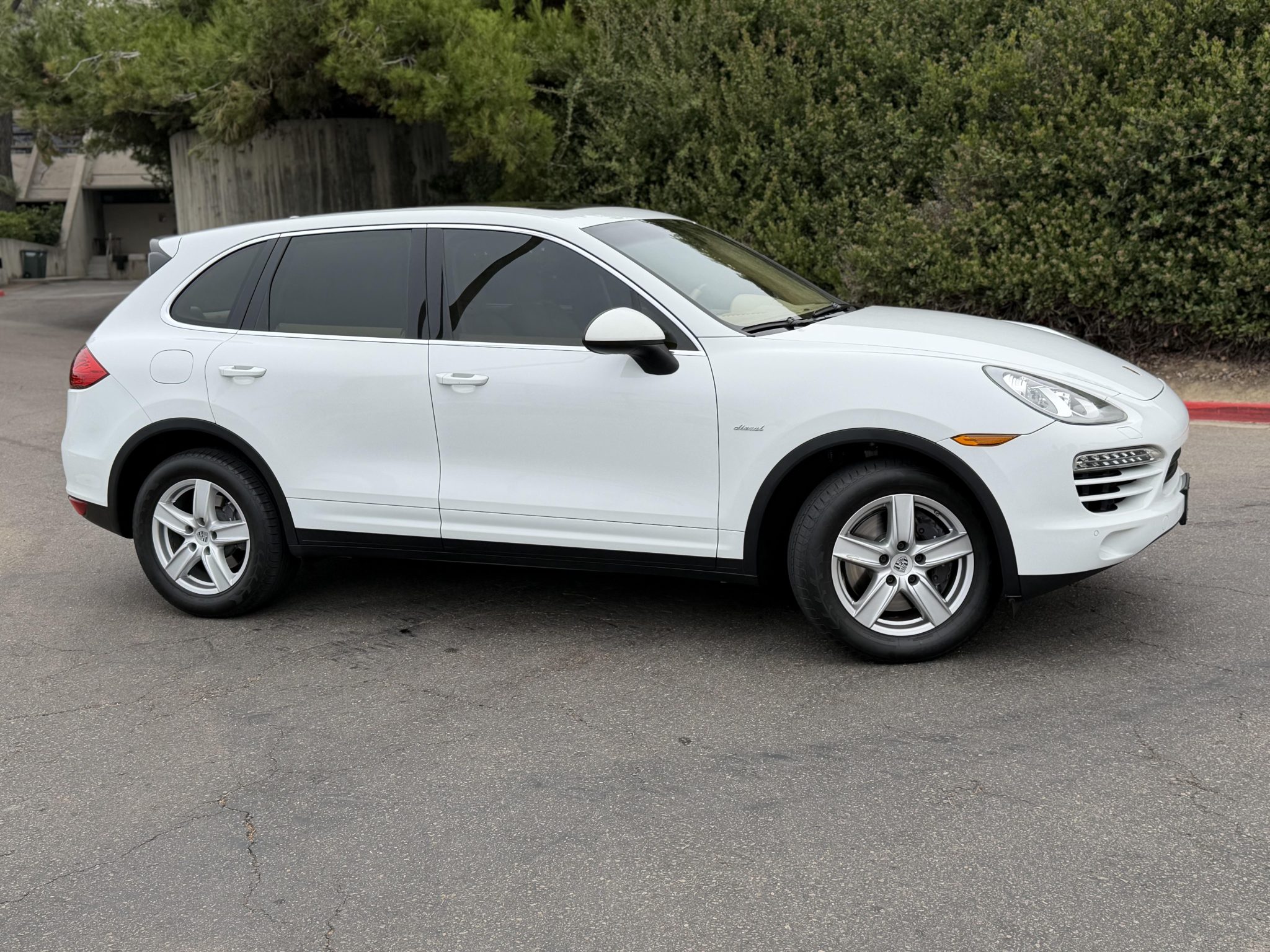 This 2013 Porsche Cayenne Diesel has 81k miles and it was ordered with the Premium Plus, Bose Audio, and Walnut Interior packages. Finished in White over Luxor Beige Standard leather, the SUV is powered by a 3.0-liter turbodiesel V6 linked with an eight-speed Tiptronic S automatic transmission and a locking center differential. Other equipment includes a panoramic sunroof, heated and ventilated front seats, a Bose sound system, heated rear seats, 18″ Cayenne S III wheels, a heated steering wheel, PCM with navigation, and xenon headlights with PDLS.