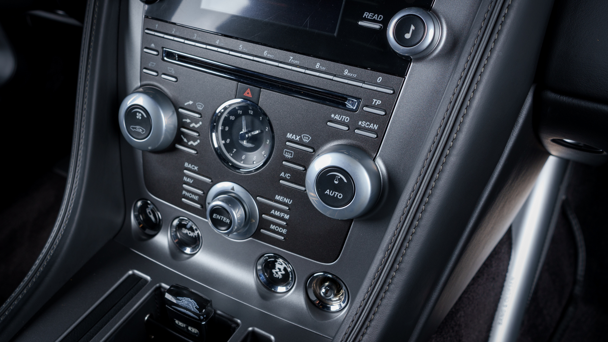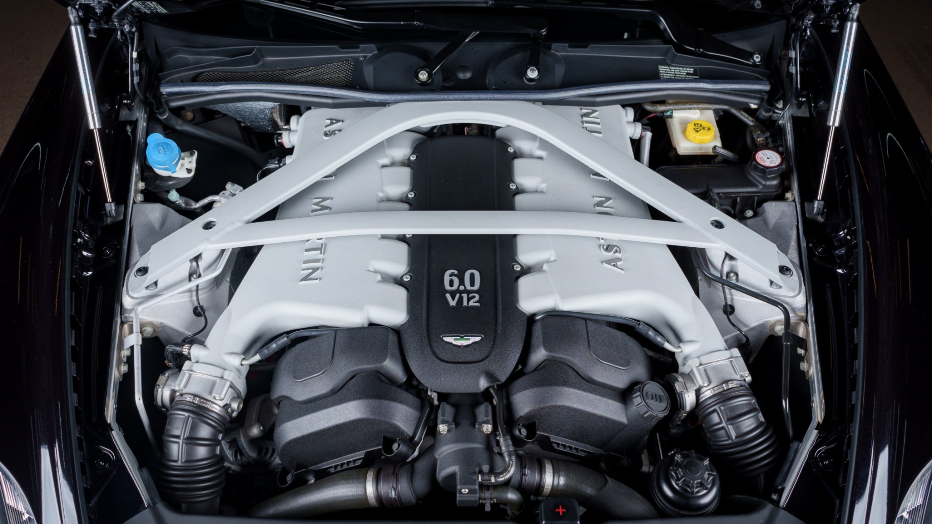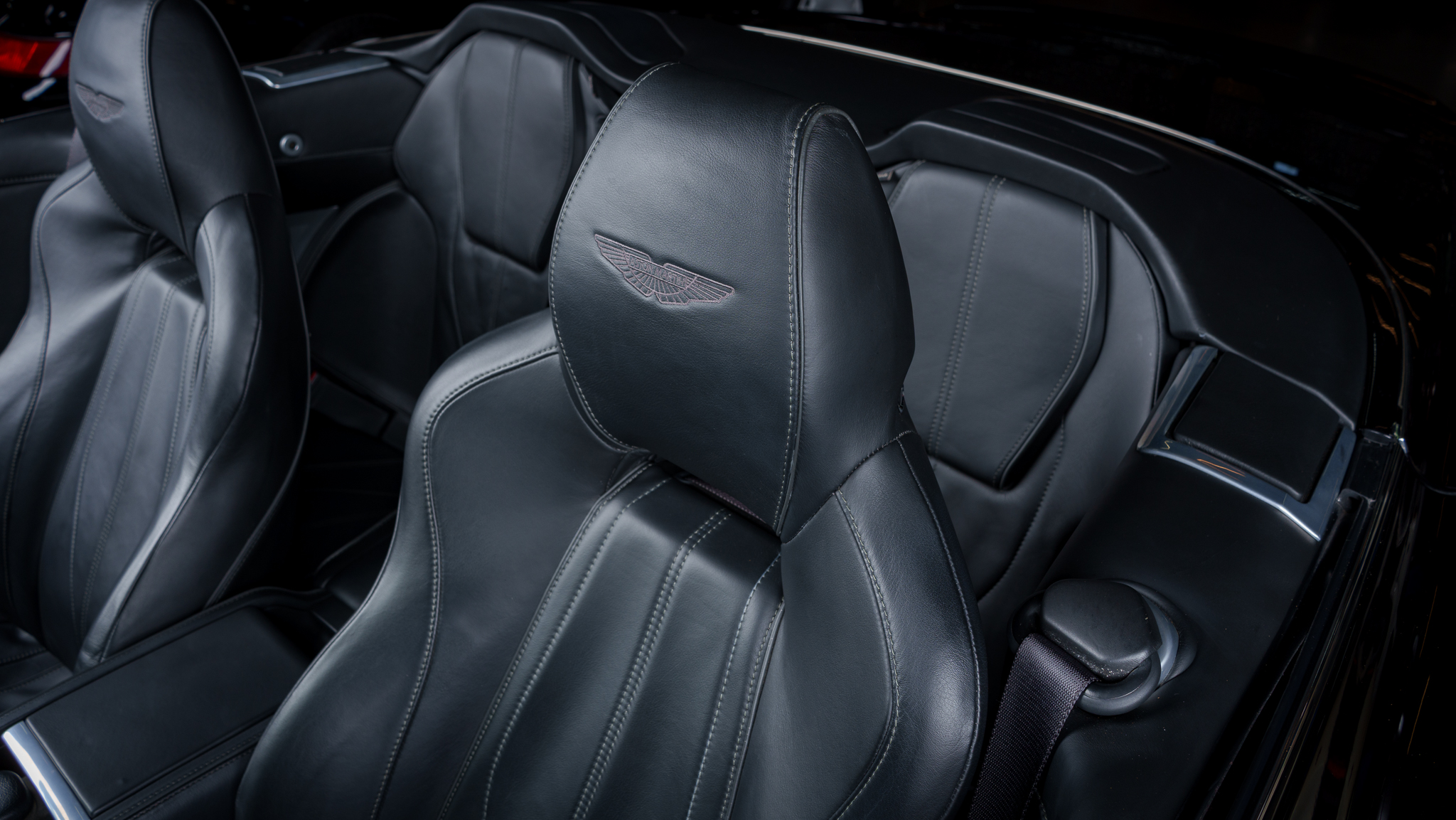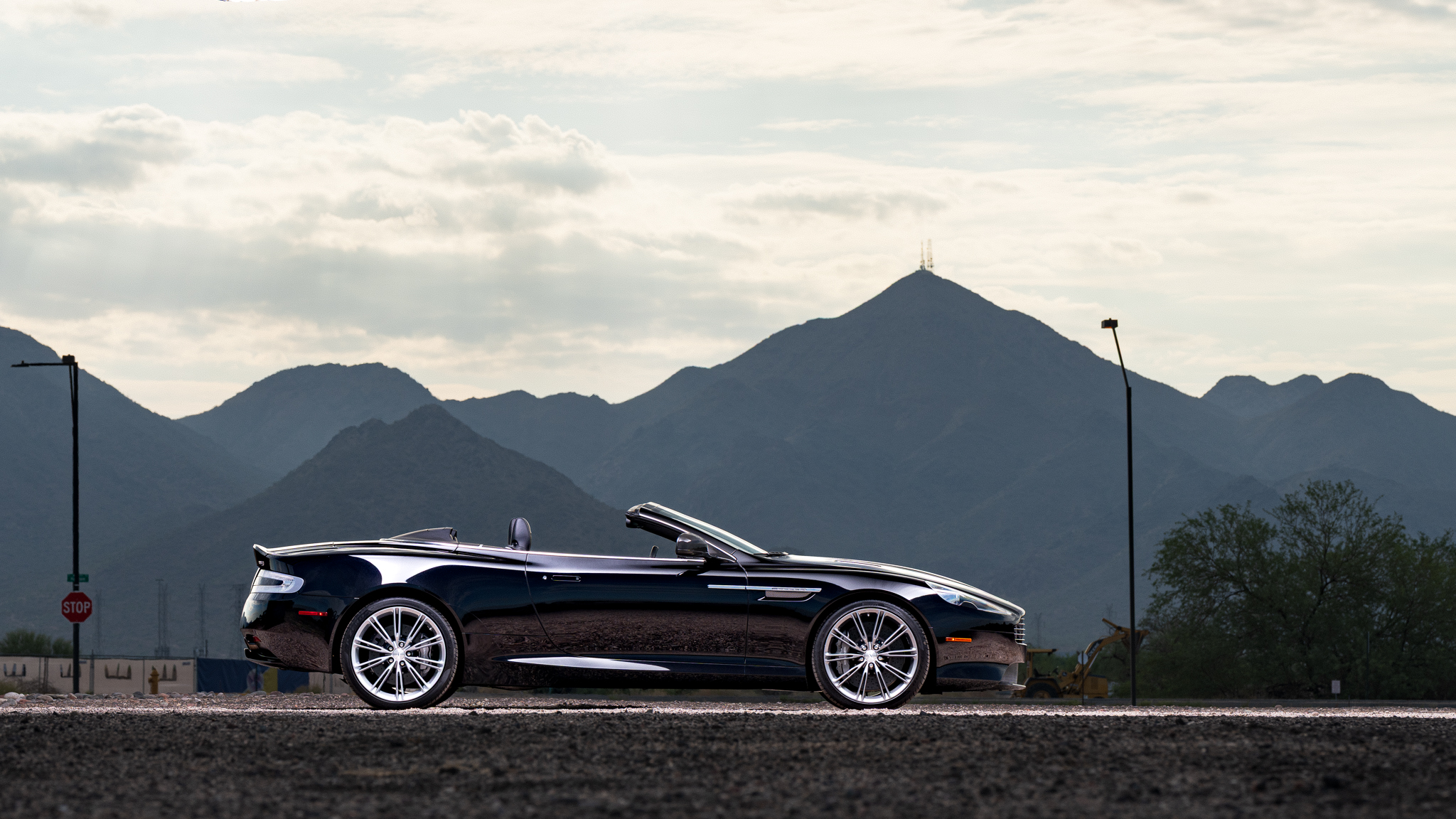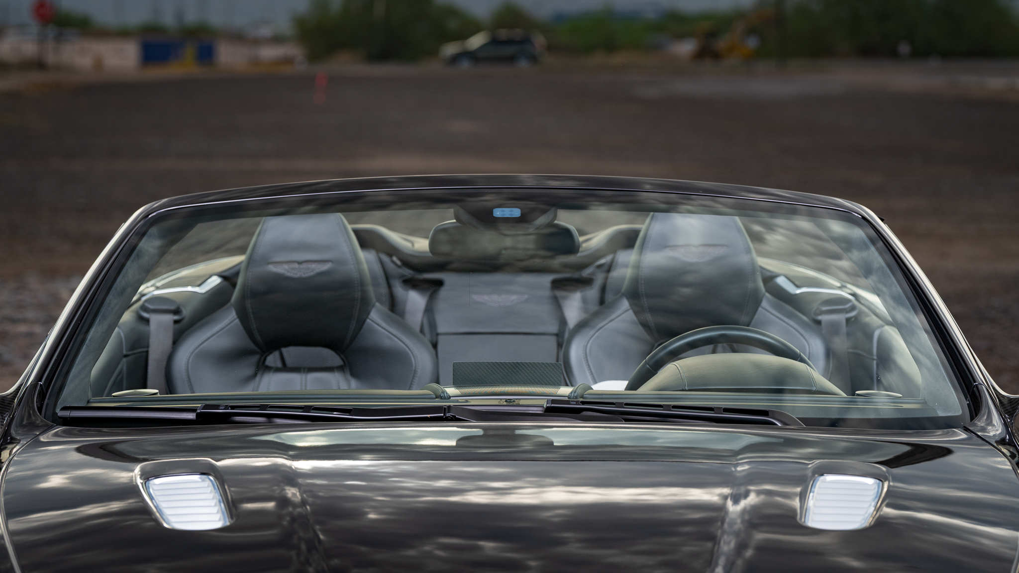 The car is powered by a 5.9-liter V12 linked with a six-speed automatic transaxle and a limited-slip differential, and it is finished in Onyx Black over Obsidian Black leather. A black convertible soft top is fitted along with parking sensors, 20″ split-spoke diamond-turned alloy wheels, ceramic-composite brakes, power-adjustable front seats, a rearview camera, a navigation system, a Bang & Olufsen sound system, and automatic climate control.