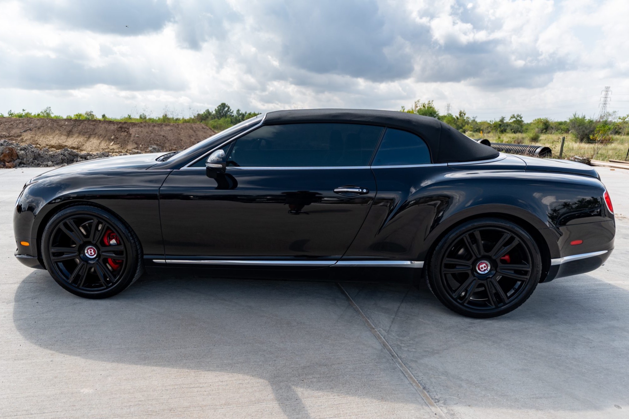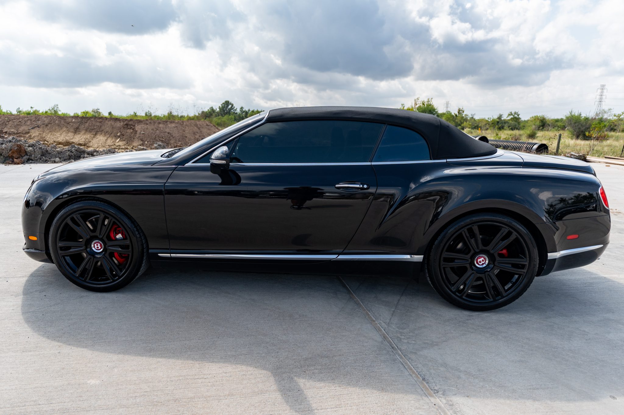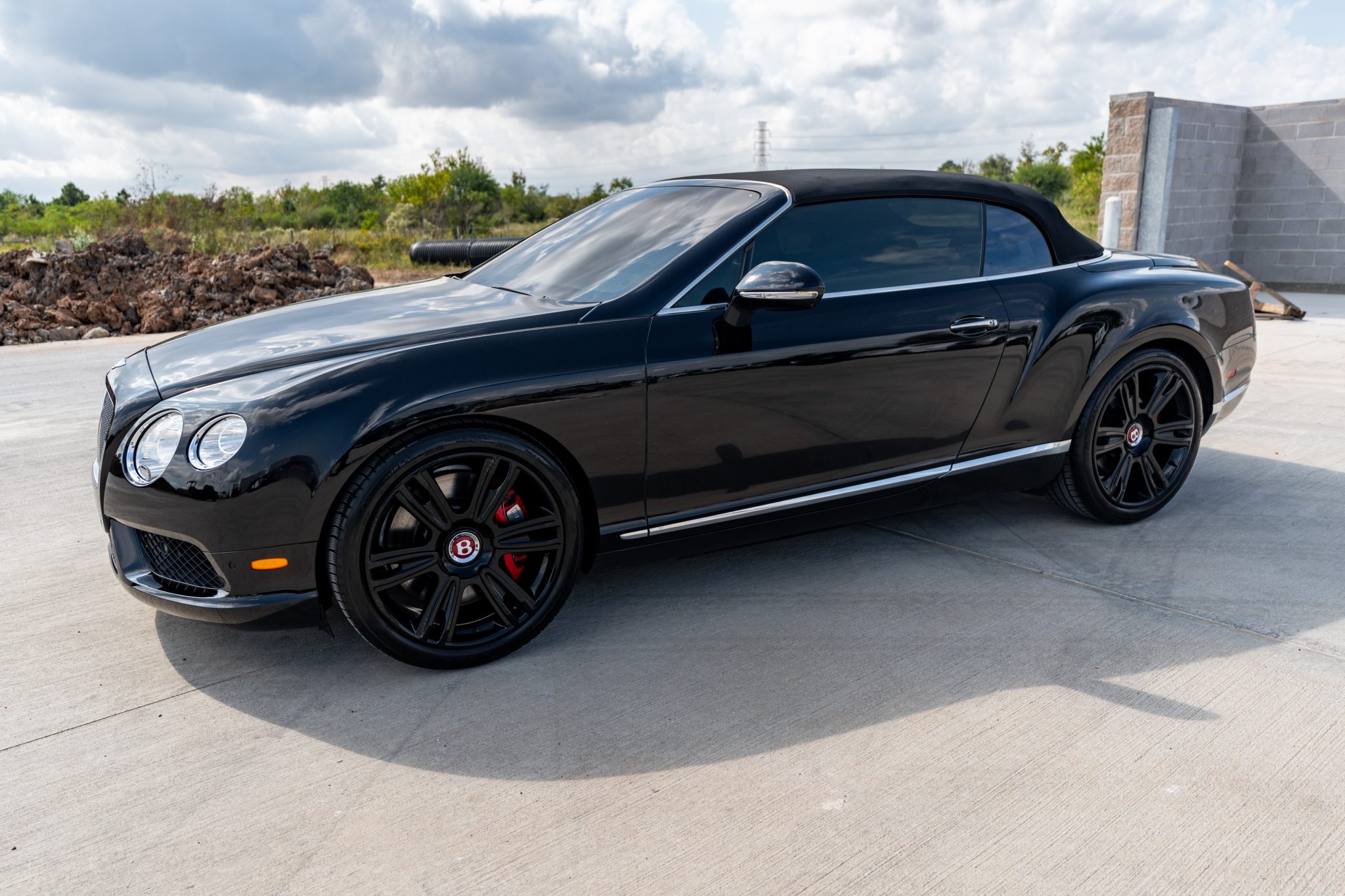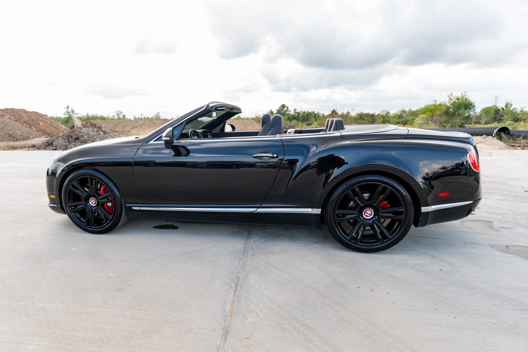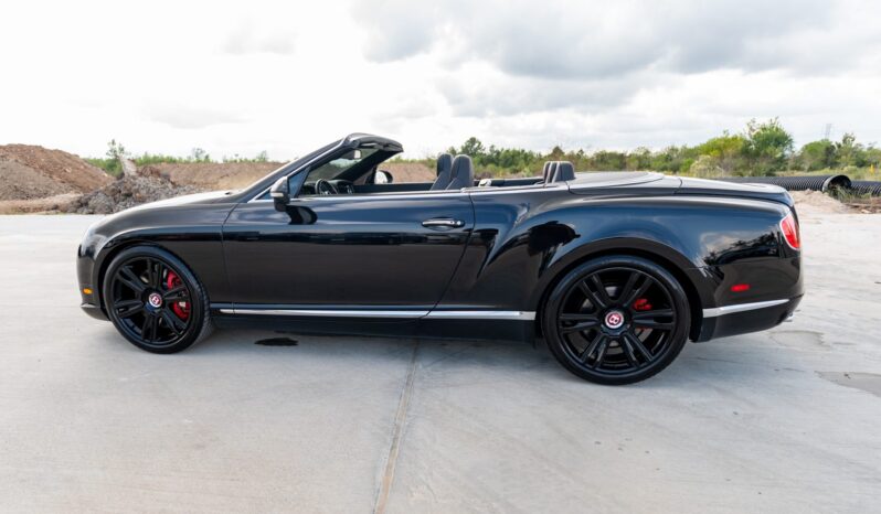 This 2014 Bentley Continental GTC V8 is finished in Beluga over Beluga leather with red stitching and is powered by a twin-turbocharged 4.0-liter V8 that drives all four wheels through an eight-speed automatic transaxle.  Features include heated, ventilated, and massaging front seats as well as bi-xenon headlights, adjustable air suspension, 21″ six-spoke wheels, a Black soft top, and front-seat neck warmers.