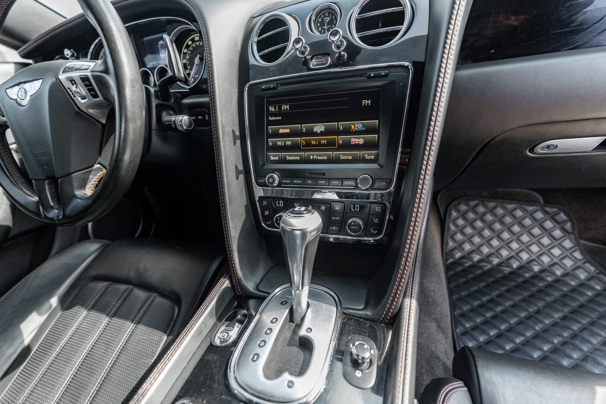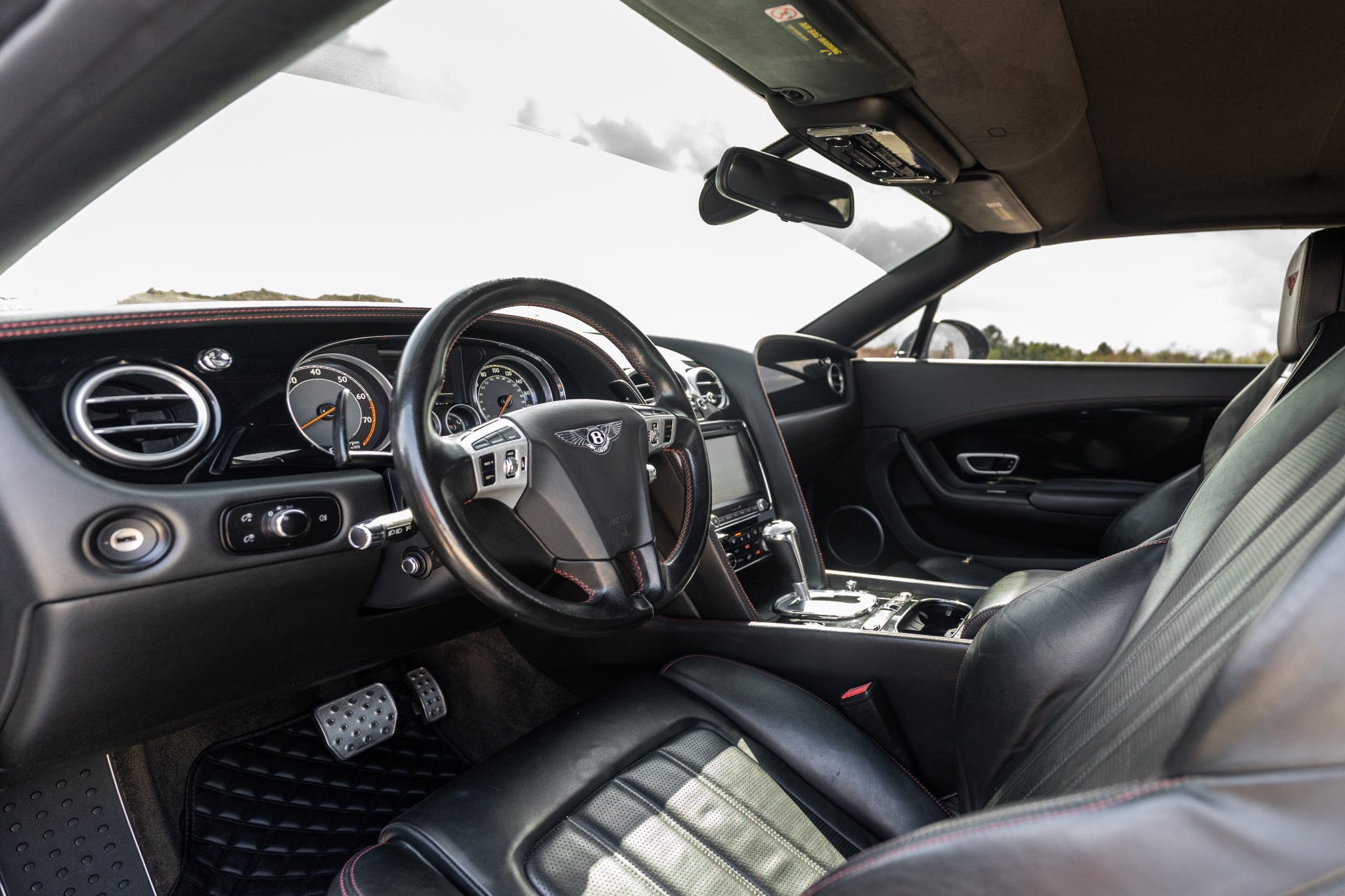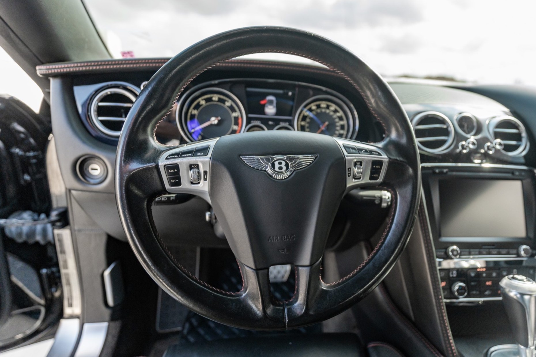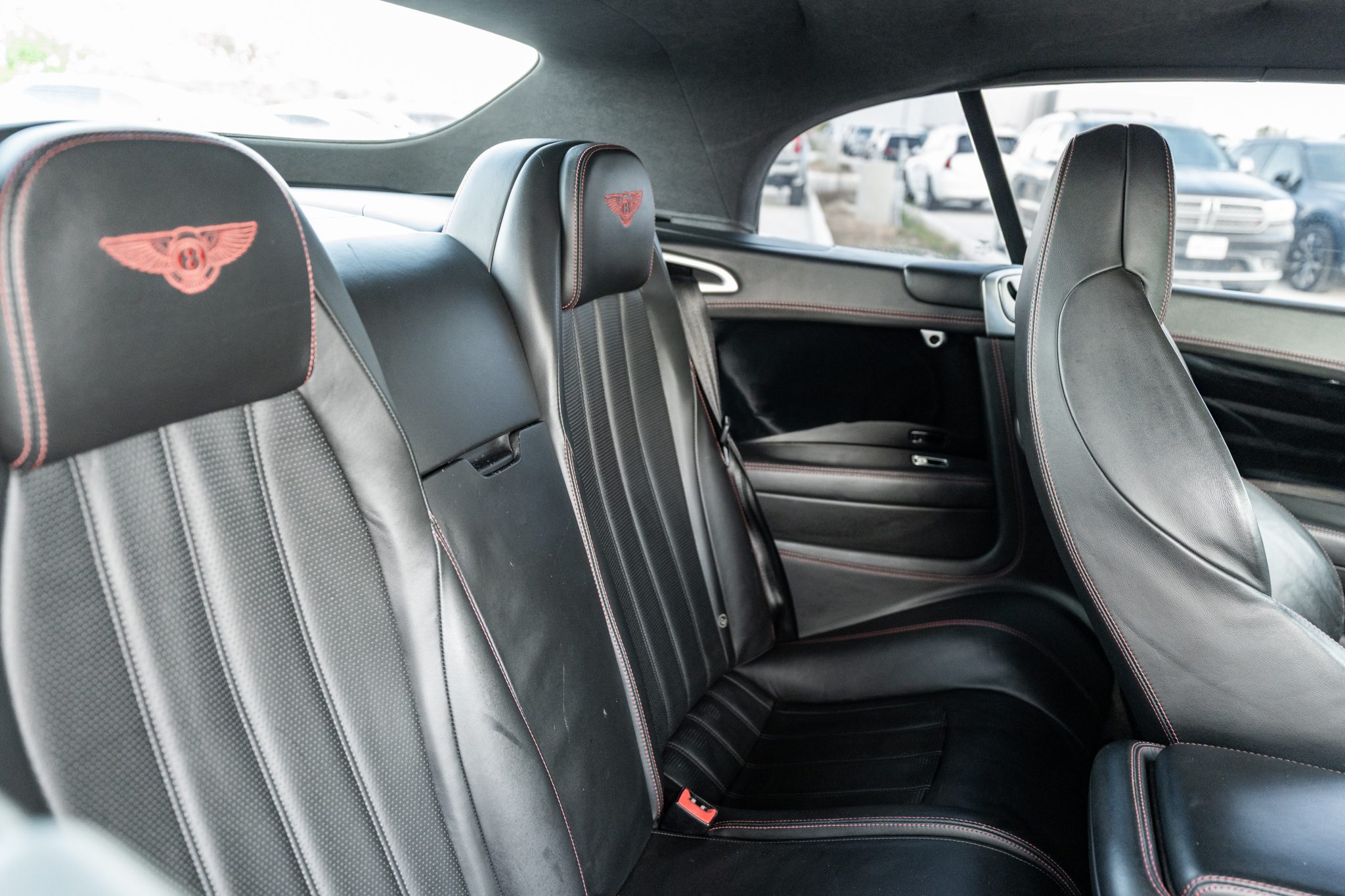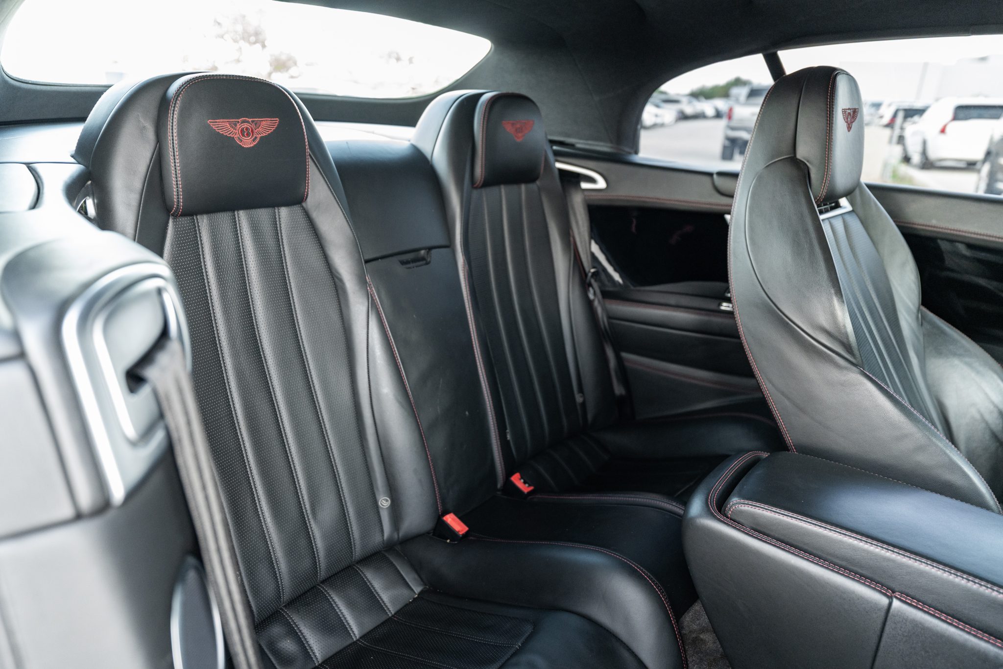 This 2014 Bentley Continental GTC V8 is finished in Beluga over Beluga leather with red stitching and is powered by a twin-turbocharged 4.0-liter V8 that drives all four wheels through an eight-speed automatic transaxle.  Features include heated, ventilated, and massaging front seats as well as bi-xenon headlights, adjustable air suspension, 21″ six-spoke wheels, a Black soft top, and front-seat neck warmers.