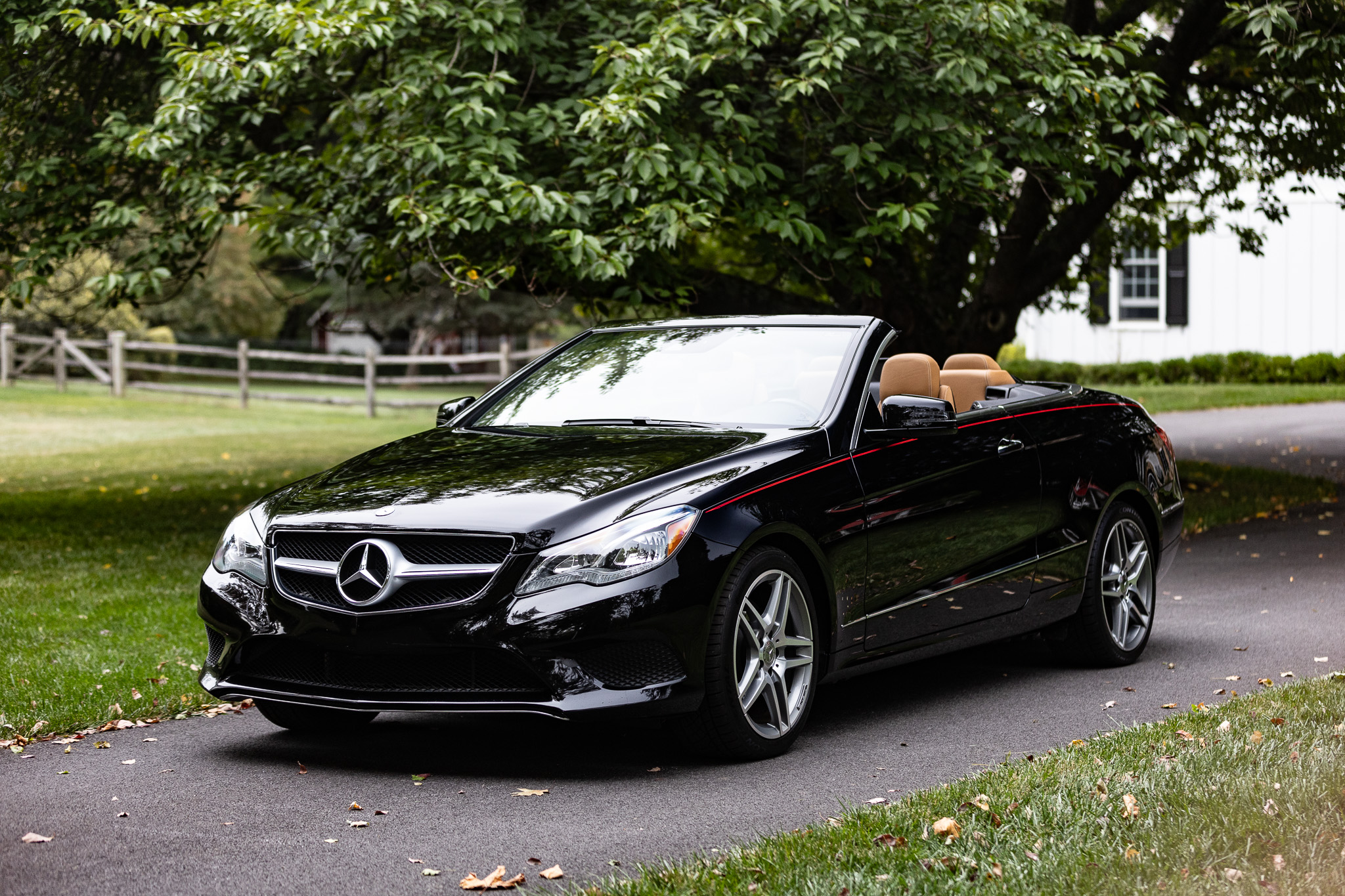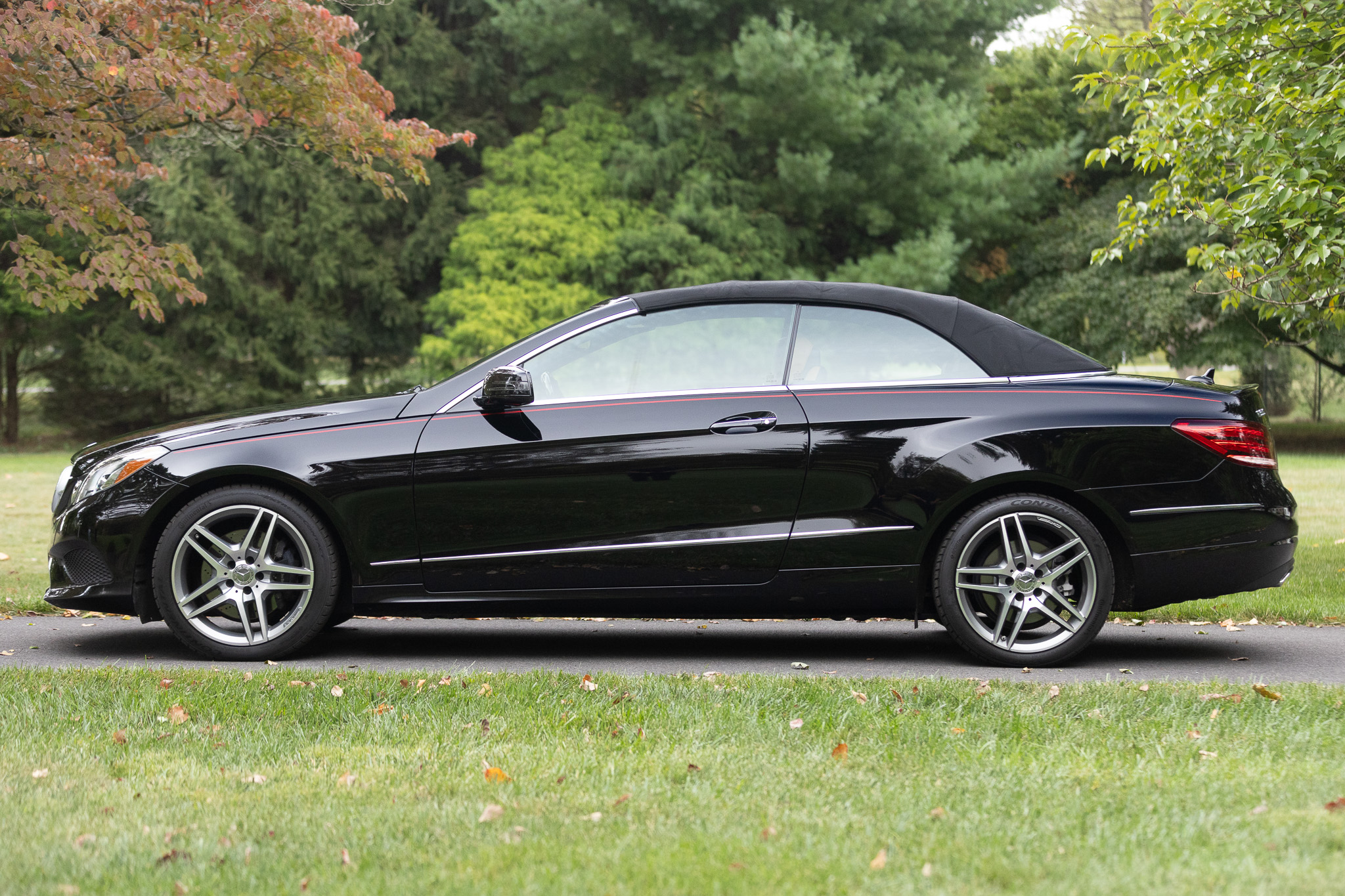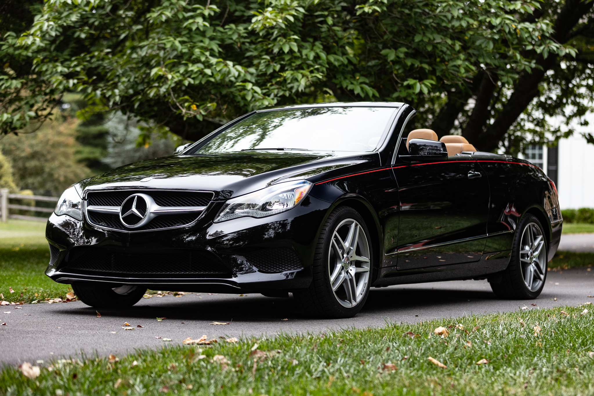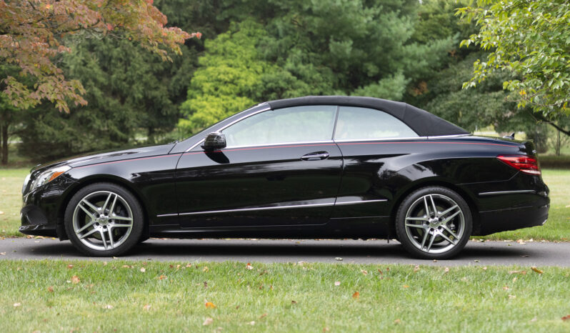 The car is finished in black over brown leather and is powered by a 3.5-liter V6 paired with a seven-speed automatic transmission. Additional equipment includes LED headlights, a black convertible top, 18″ AMG split-spoke wheels, a back-up camera, Blind Spot Assist, Lane Keeping Assist, navigation, heated front seats, a Harman Kardon sound system, Keyless Go, and dual-zone automatic climate control.