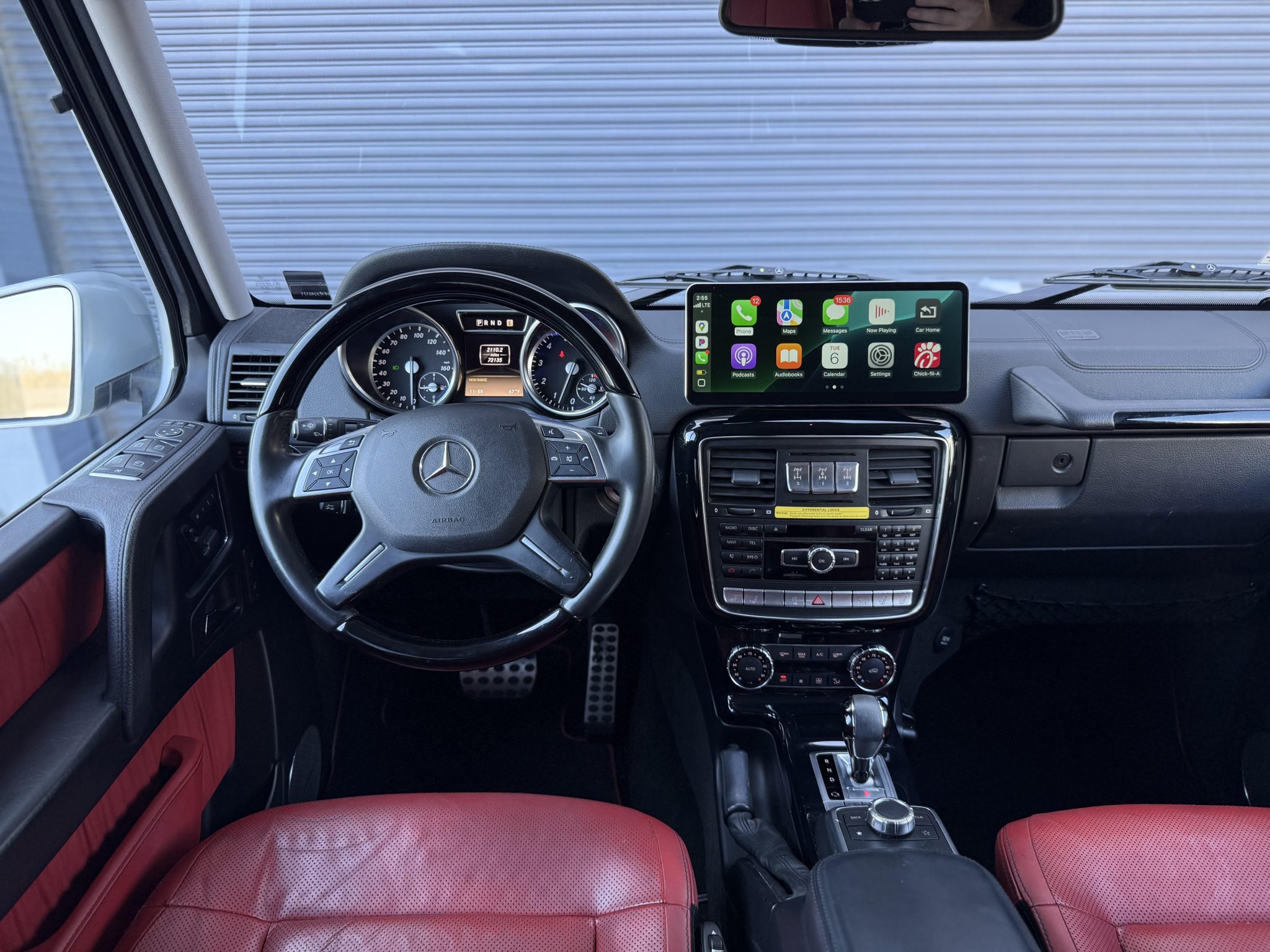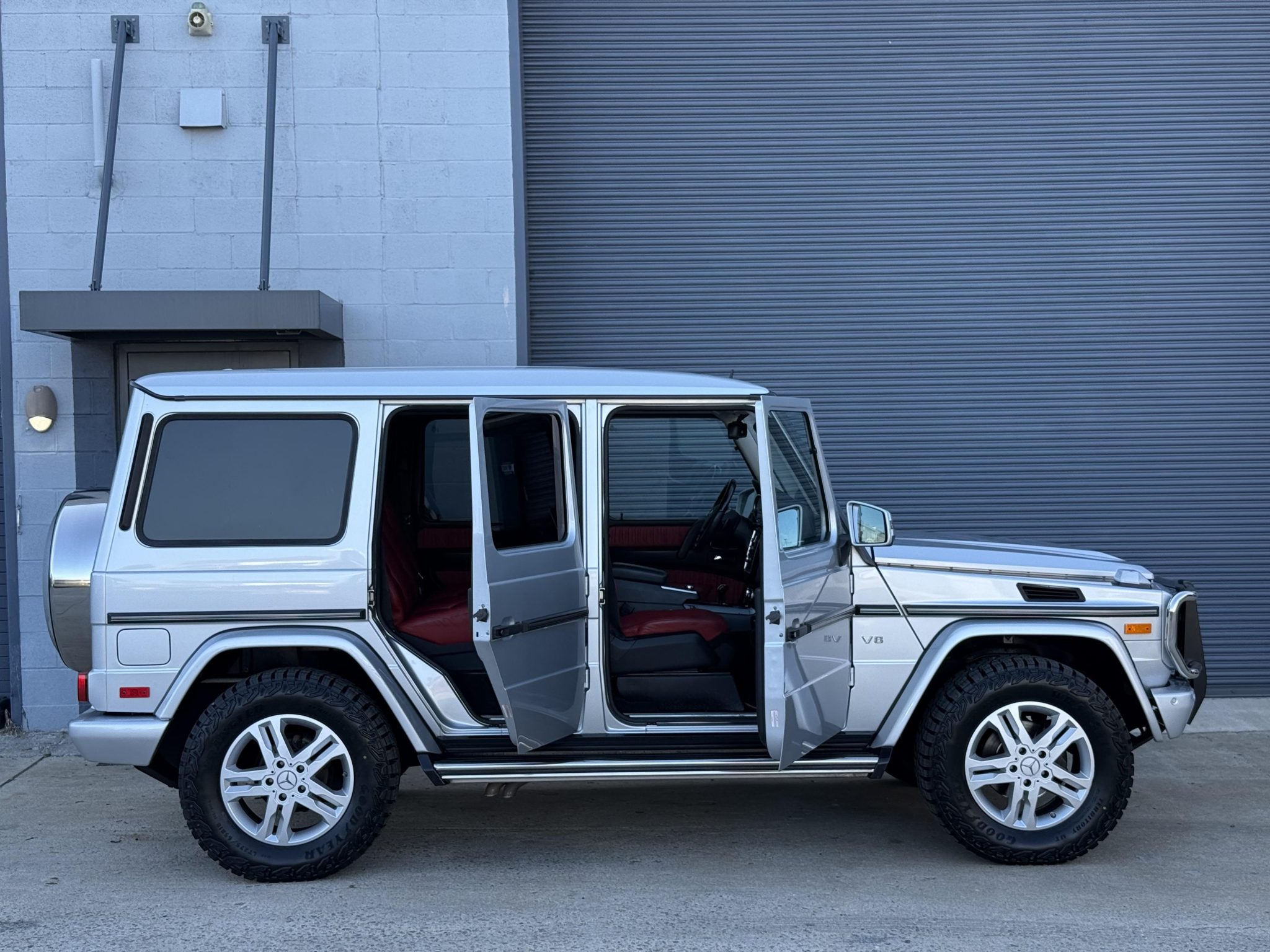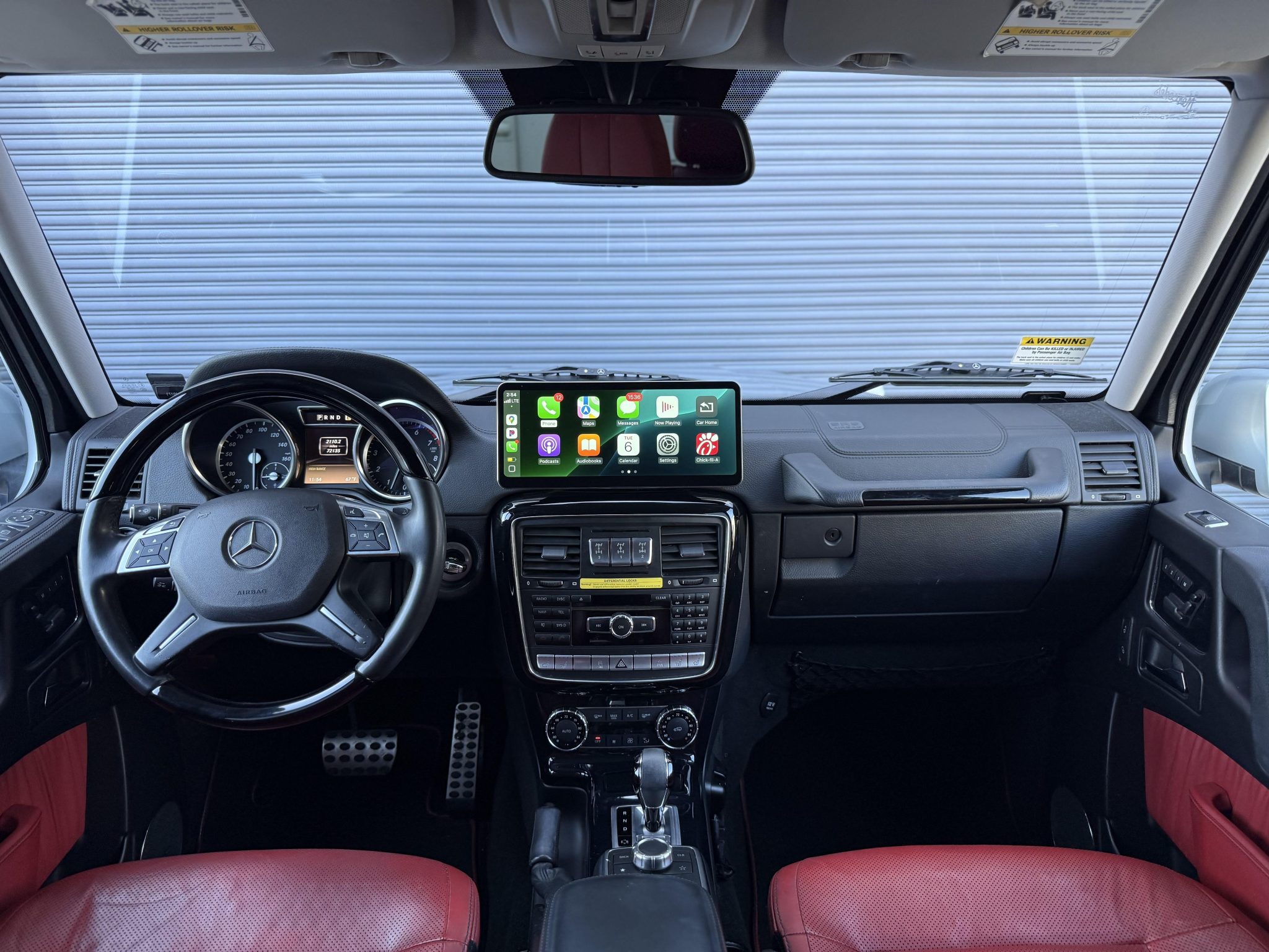 Finished in Iridium Silver Metallic over Designo Classic Red leather, it is powered by a 5.5-liter V8 linked with a seven-speed automatic transmission, a dual-range transfer case, and three locking differentials. The truck is equipped with a sunroof, bi-xenon headlights, Parktronic, a back-up camera, 18″ multi-spoke alloy wheels, heated and ventilated power-adjustable front seats, heated rear seats, blind-spot monitoring, Distronic adaptive cruise control, an aftermarket infotainment screen with Apple CarPlay, and a Harman Kardon sound system.