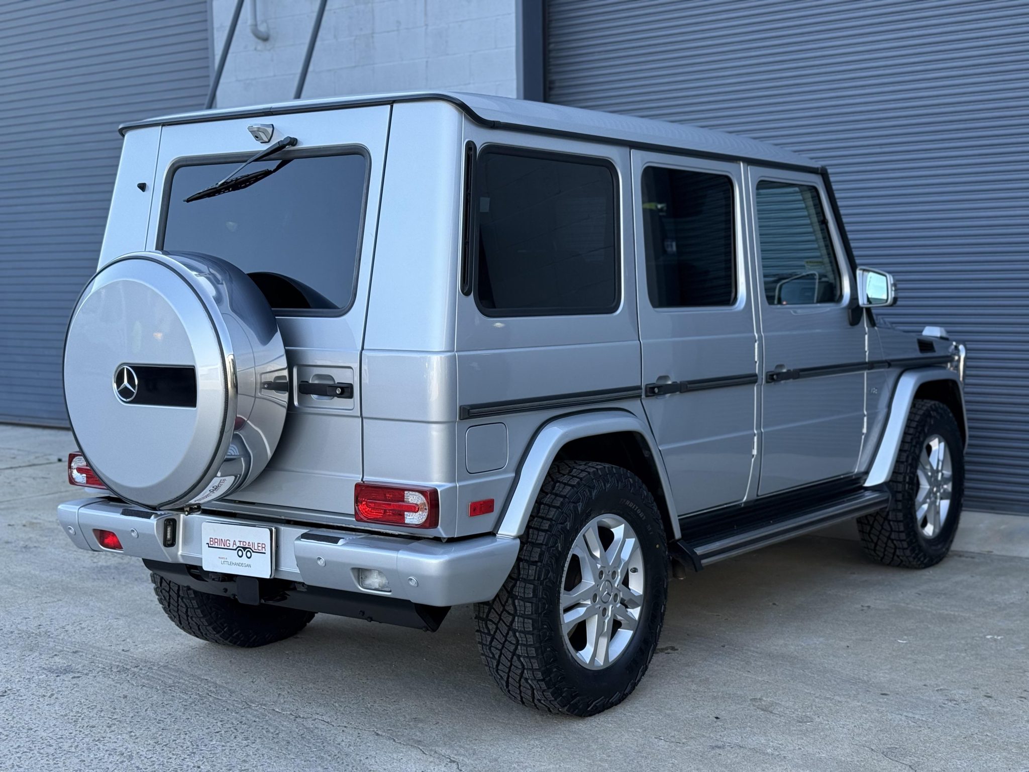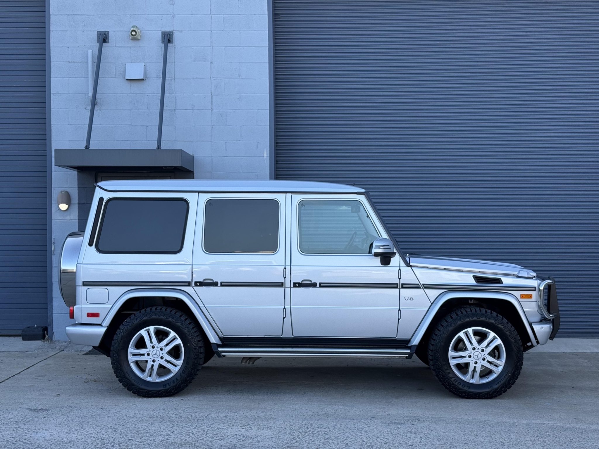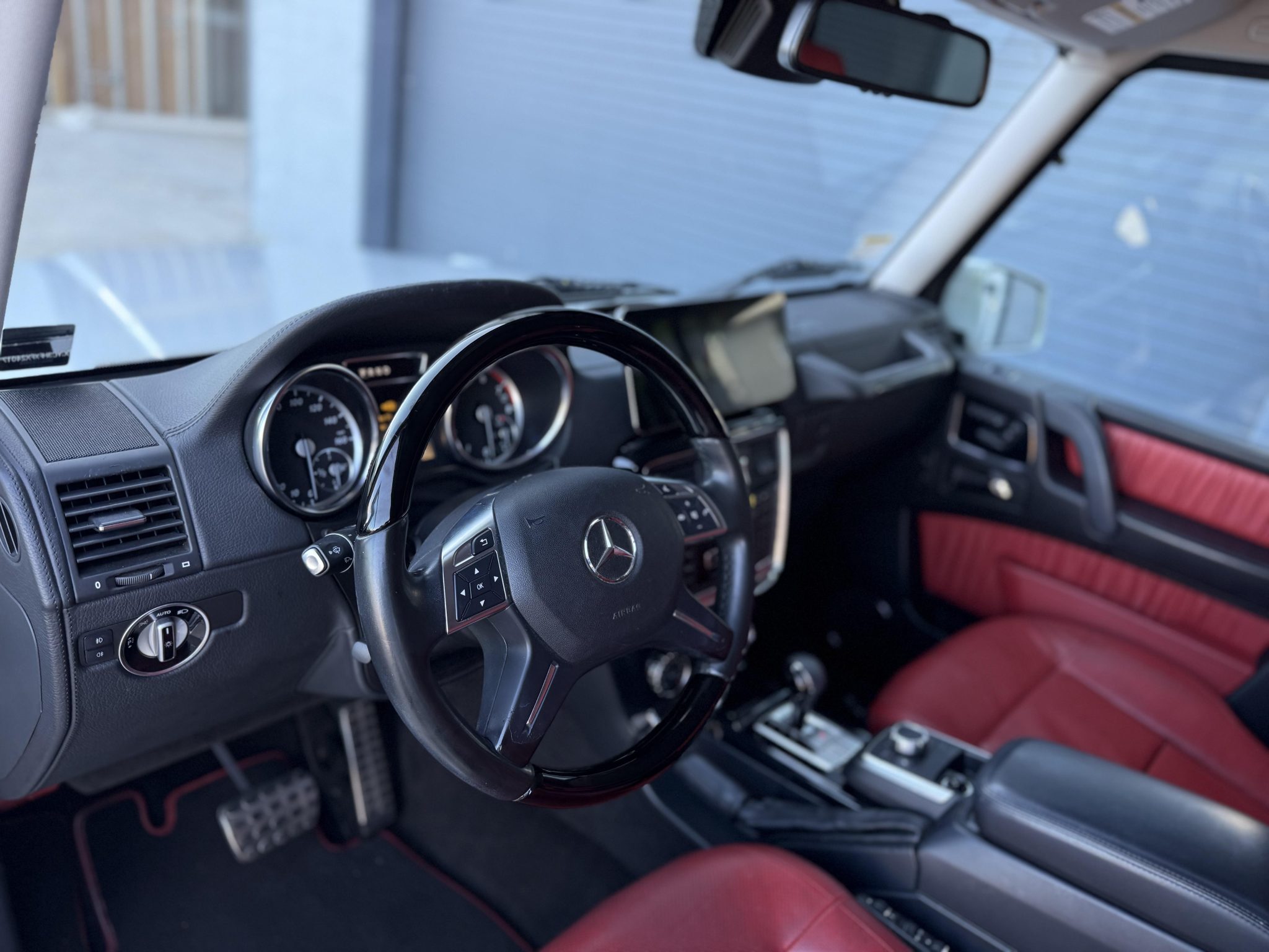 Finished in Iridium Silver Metallic over Designo Classic Red leather, it is powered by a 5.5-liter V8 linked with a seven-speed automatic transmission, a dual-range transfer case, and three locking differentials. The truck is equipped with a sunroof, bi-xenon headlights, Parktronic, a back-up camera, 18″ multi-spoke alloy wheels, heated and ventilated power-adjustable front seats, heated rear seats, blind-spot monitoring, Distronic adaptive cruise control, an aftermarket infotainment screen with Apple CarPlay, and a Harman Kardon sound system.