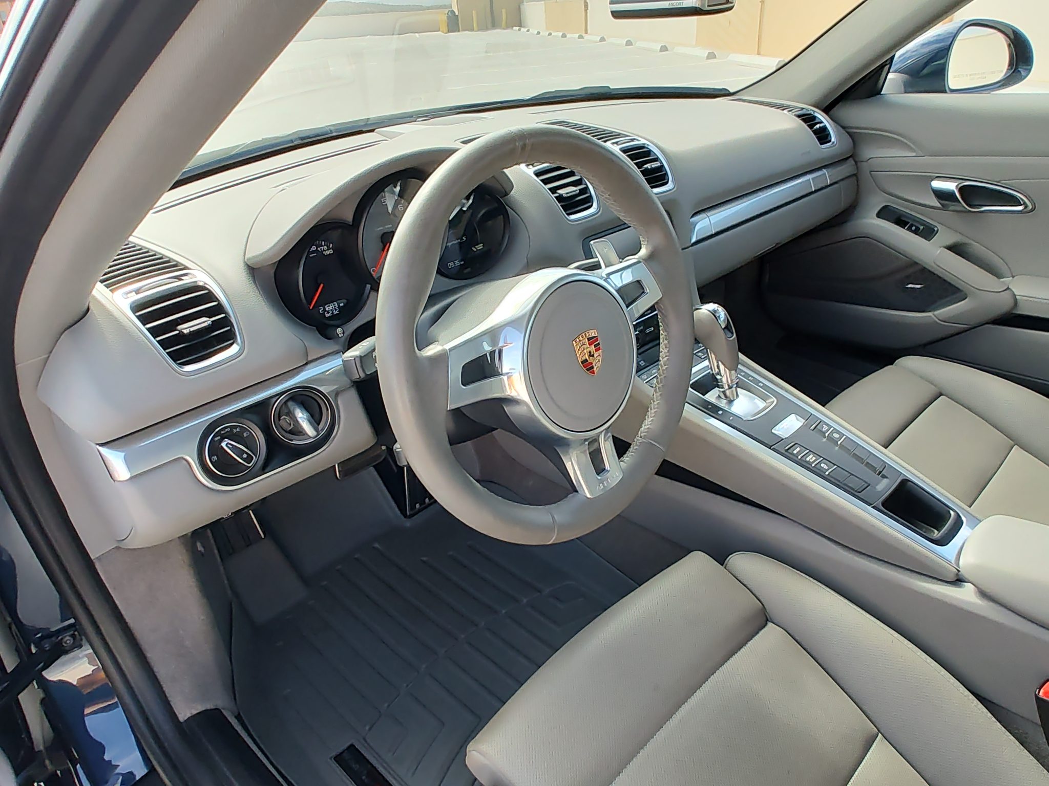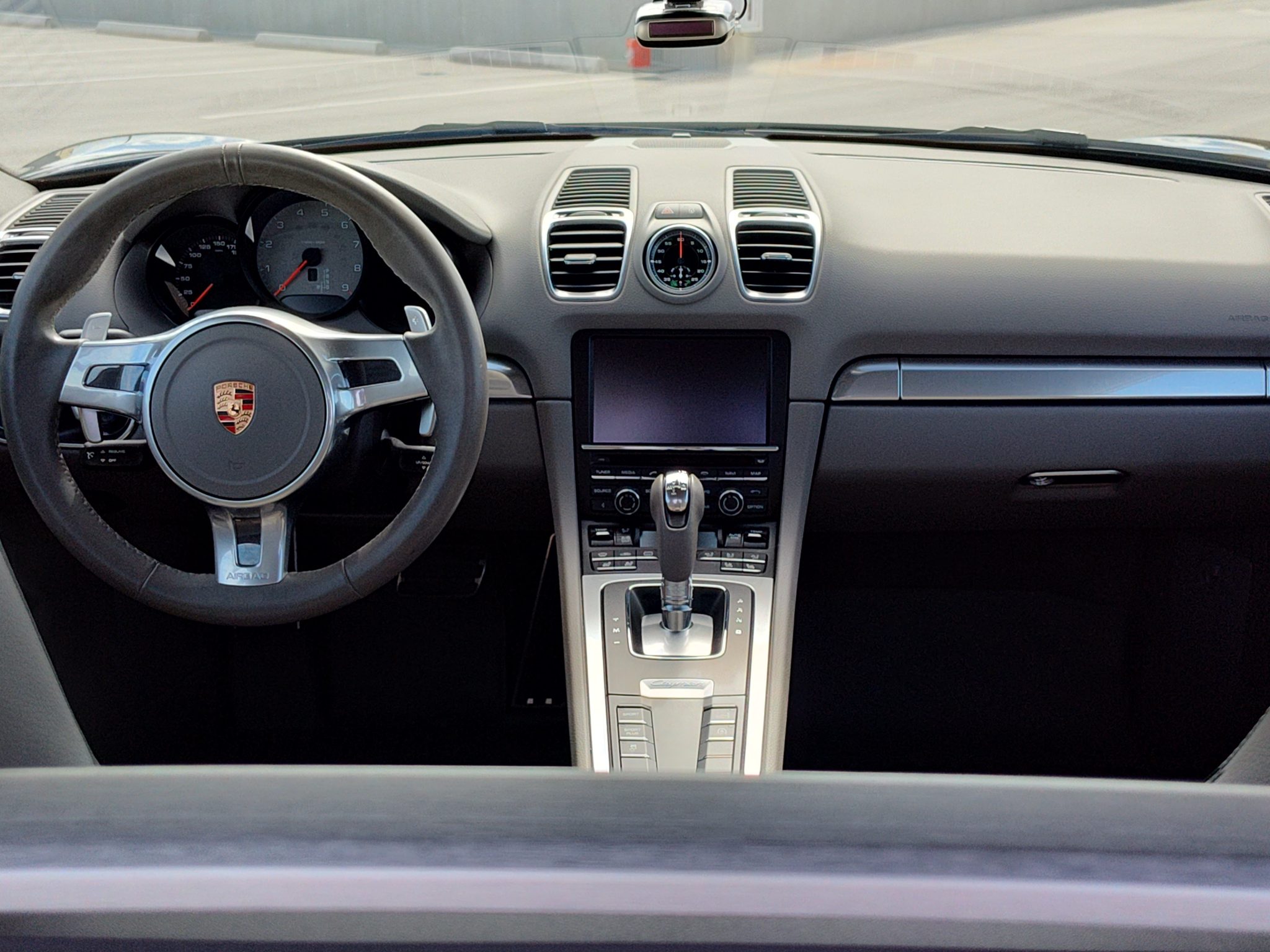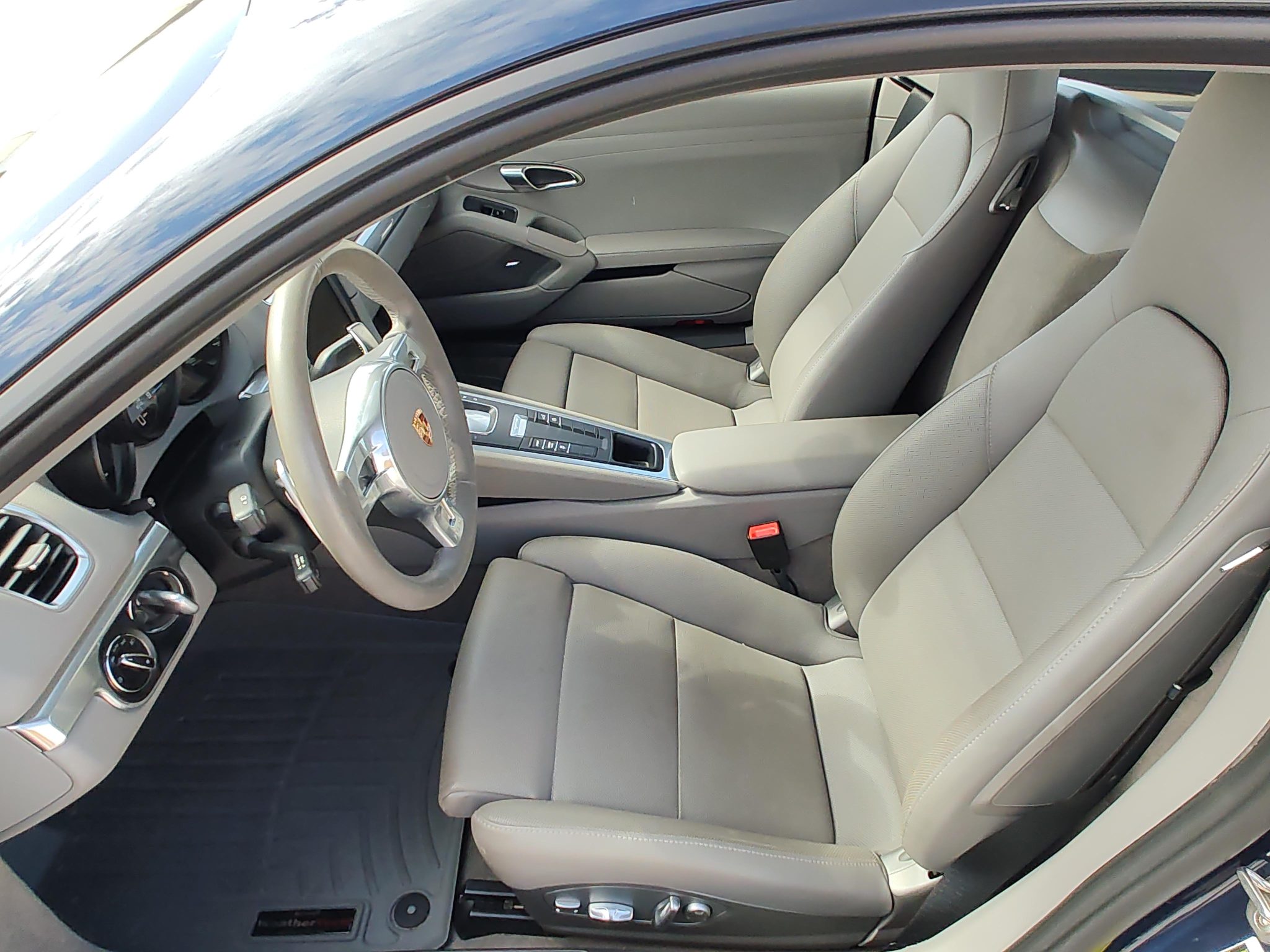 Finished in Dark Blue Metallic over Platinum Grey leather, the car is powered by a 3.4-liter flat-six paired with a seven-speed PDK transaxle. Equipment includes bi-xenon headlights with PDLS as well as the Sport Chrono Package, 20″ Carrera S wheels, front and rear ParkAssist, a rearview camera, Power Steering Plus, heated and ventilated power-adjustable seats, Bose audio, and PCM with navigation.