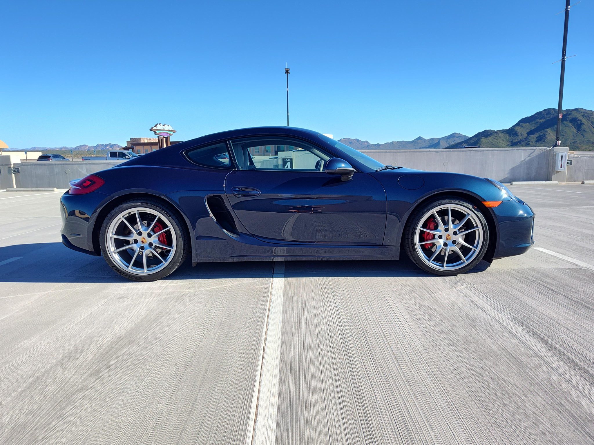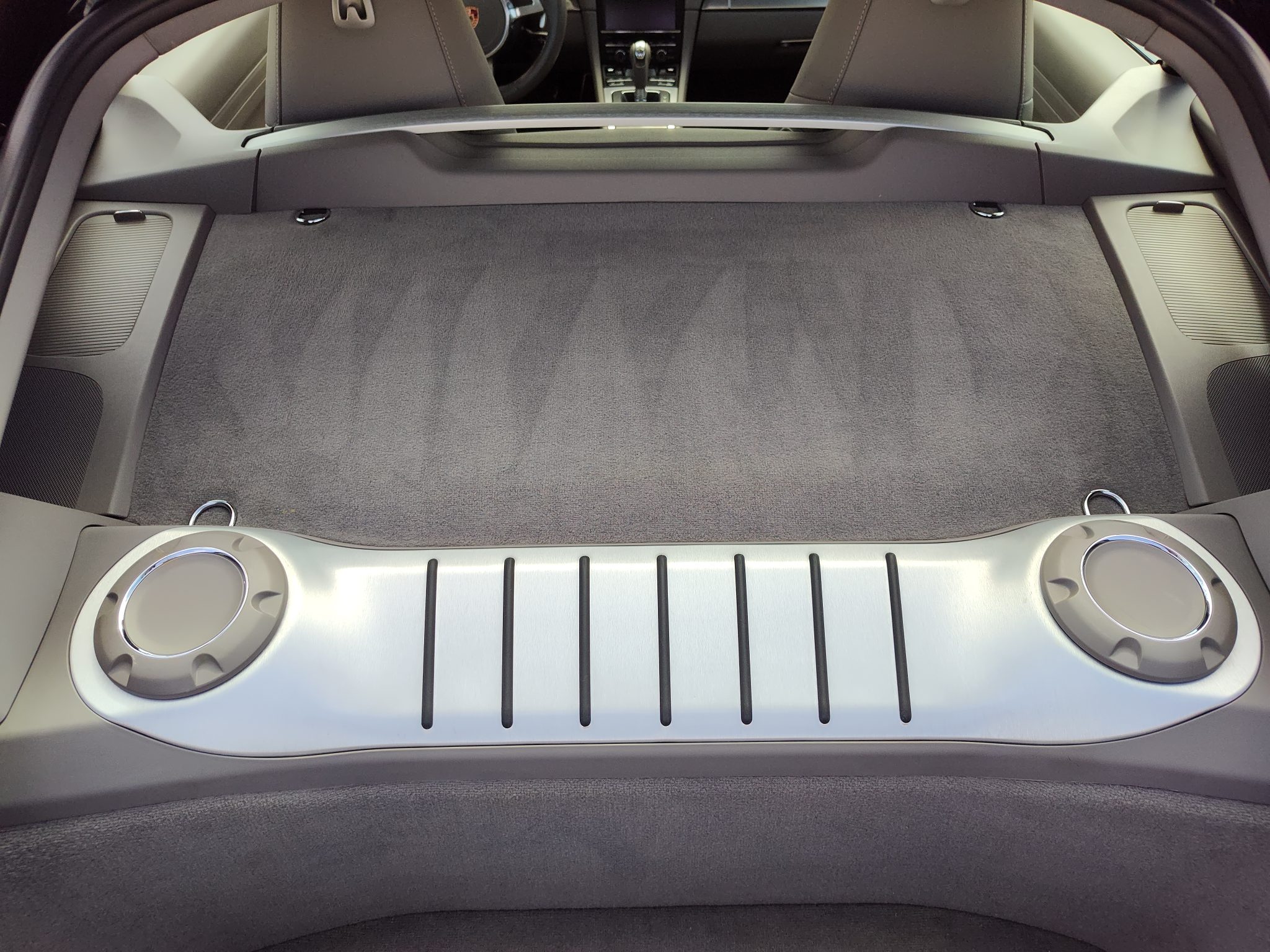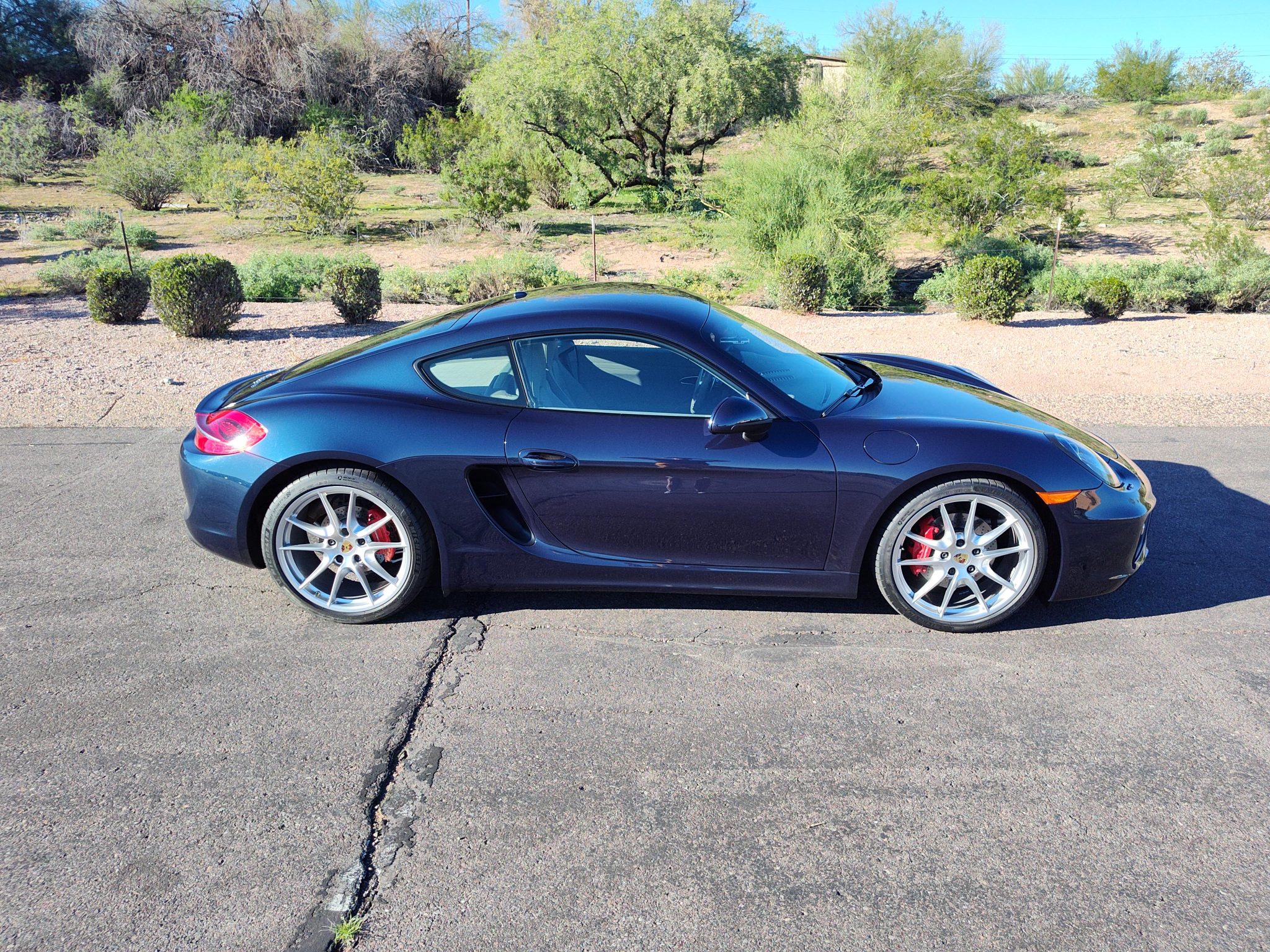 Finished in Dark Blue Metallic over Platinum Grey leather, the car is powered by a 3.4-liter flat-six paired with a seven-speed PDK transaxle. Equipment includes bi-xenon headlights with PDLS as well as the Sport Chrono Package, 20″ Carrera S wheels, front and rear ParkAssist, a rearview camera, Power Steering Plus, heated and ventilated power-adjustable seats, Bose audio, and PCM with navigation.