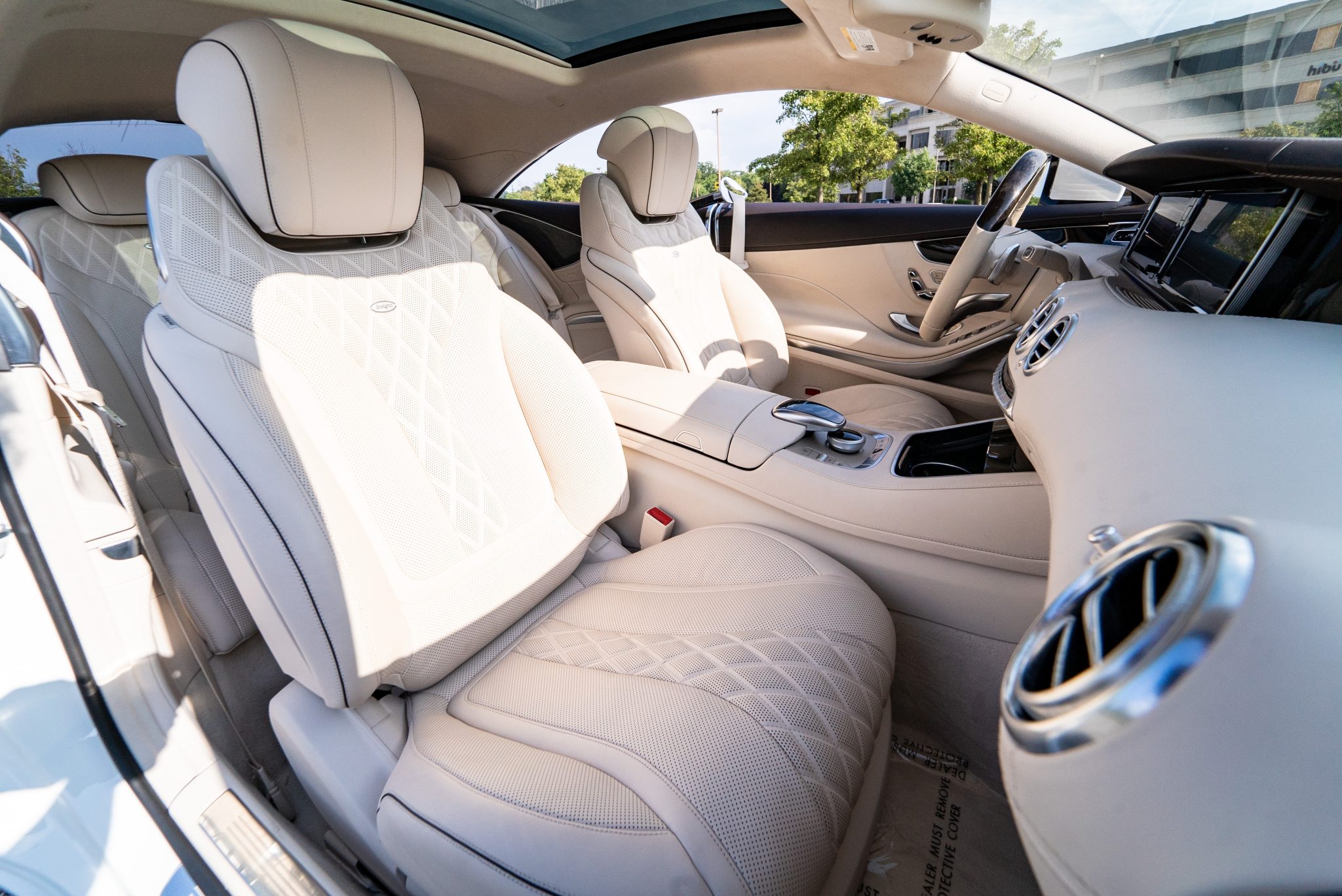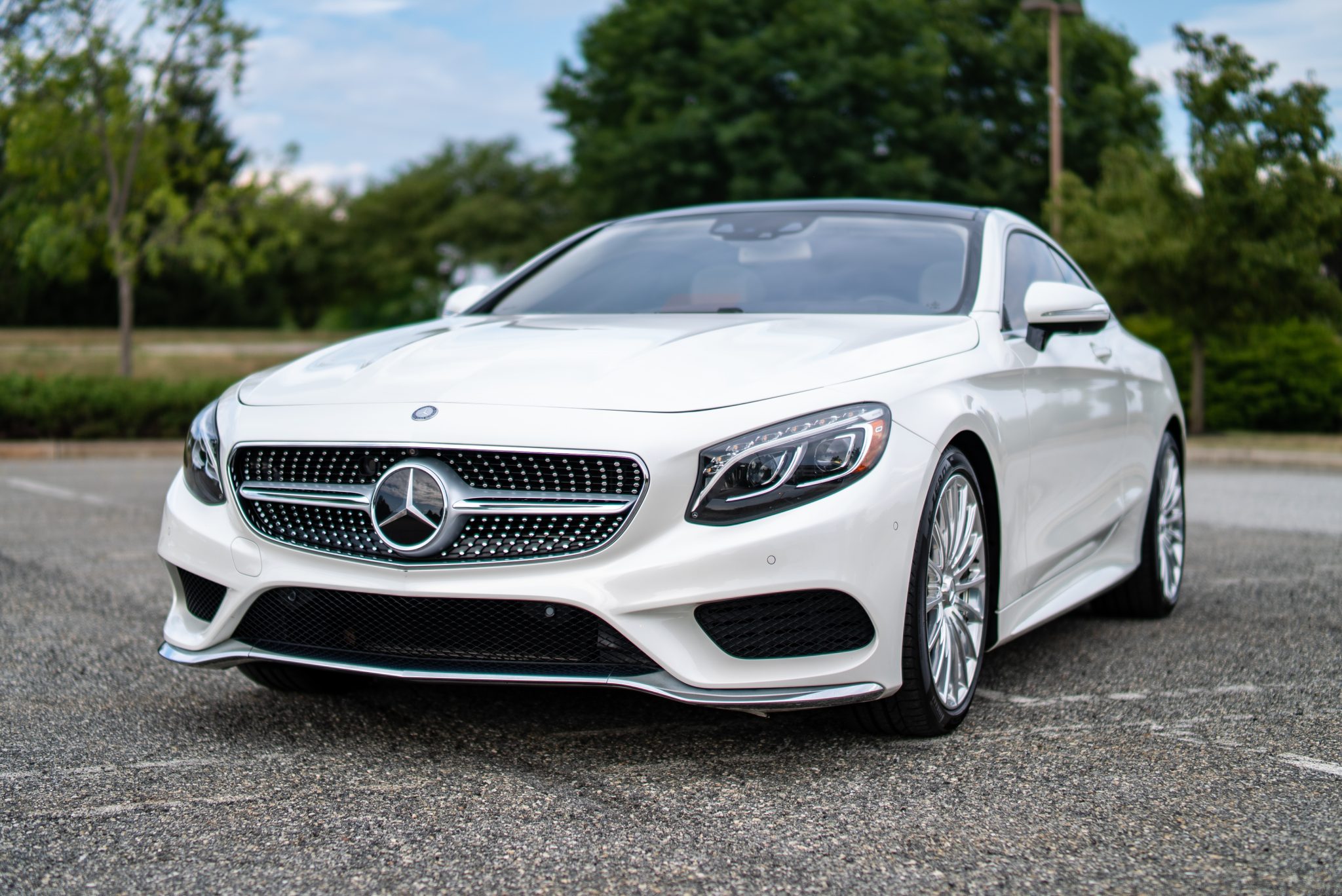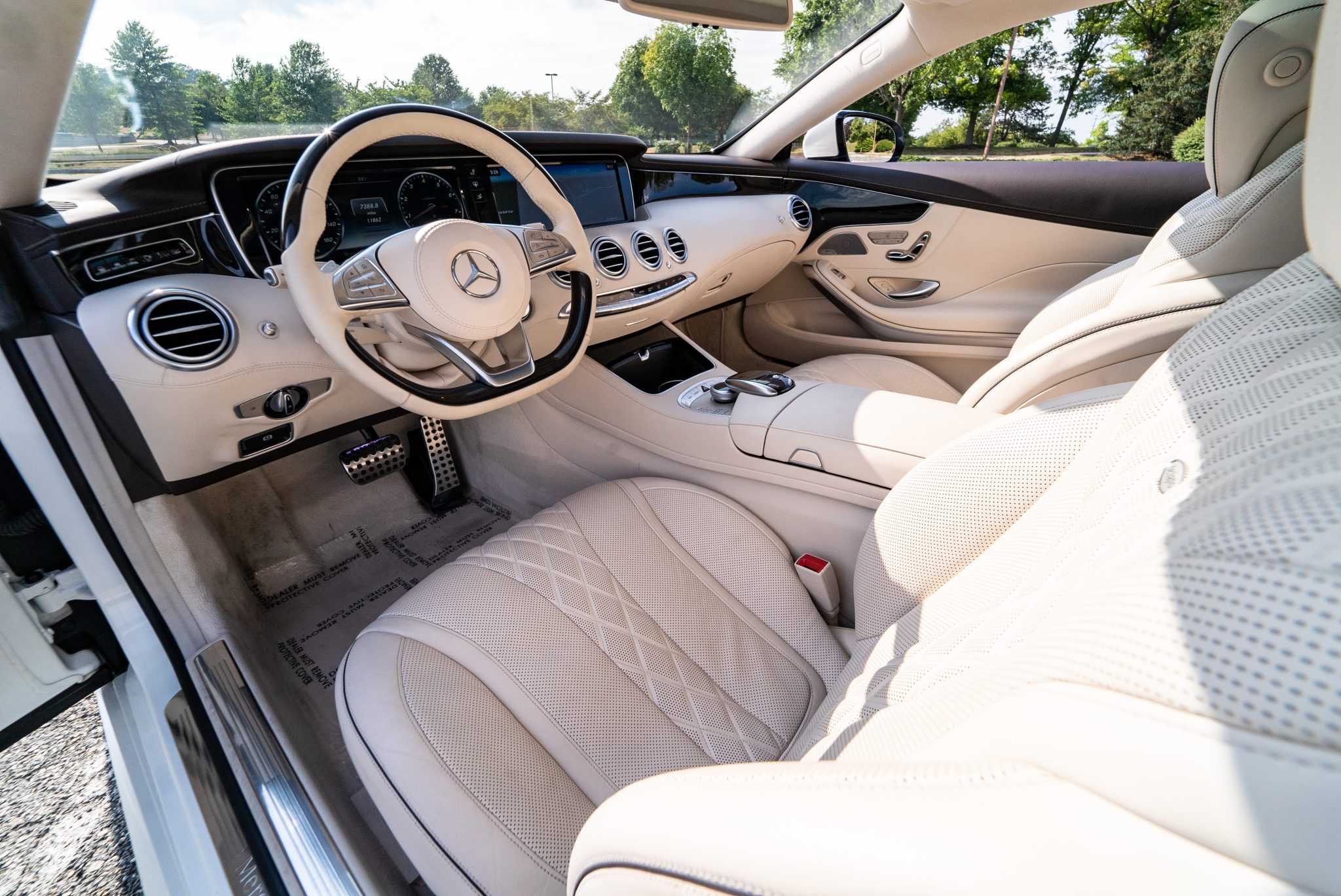 This 2016 Mercedes-Benz S550 4MATIC coupe is finished in Designo Diamond White Metallic over Designo Porcelain and Expresso Brown Exclusive Nappa leather upholstery, and power is provided by a twin-turbocharged 4.7-liter V8 paired with a seven-speed automatic transmission and a 4MATIC all-wheel-drive system. Equipment includes the Sport, Premium, Warmth and Comfort, and Driver Assistance packages along with 20″ AMG wheels, Night View Assist Plus, a panoramic glass roof, COMAND with navigation, Keyless-Go, LED headlights, and a Burmester sound system.