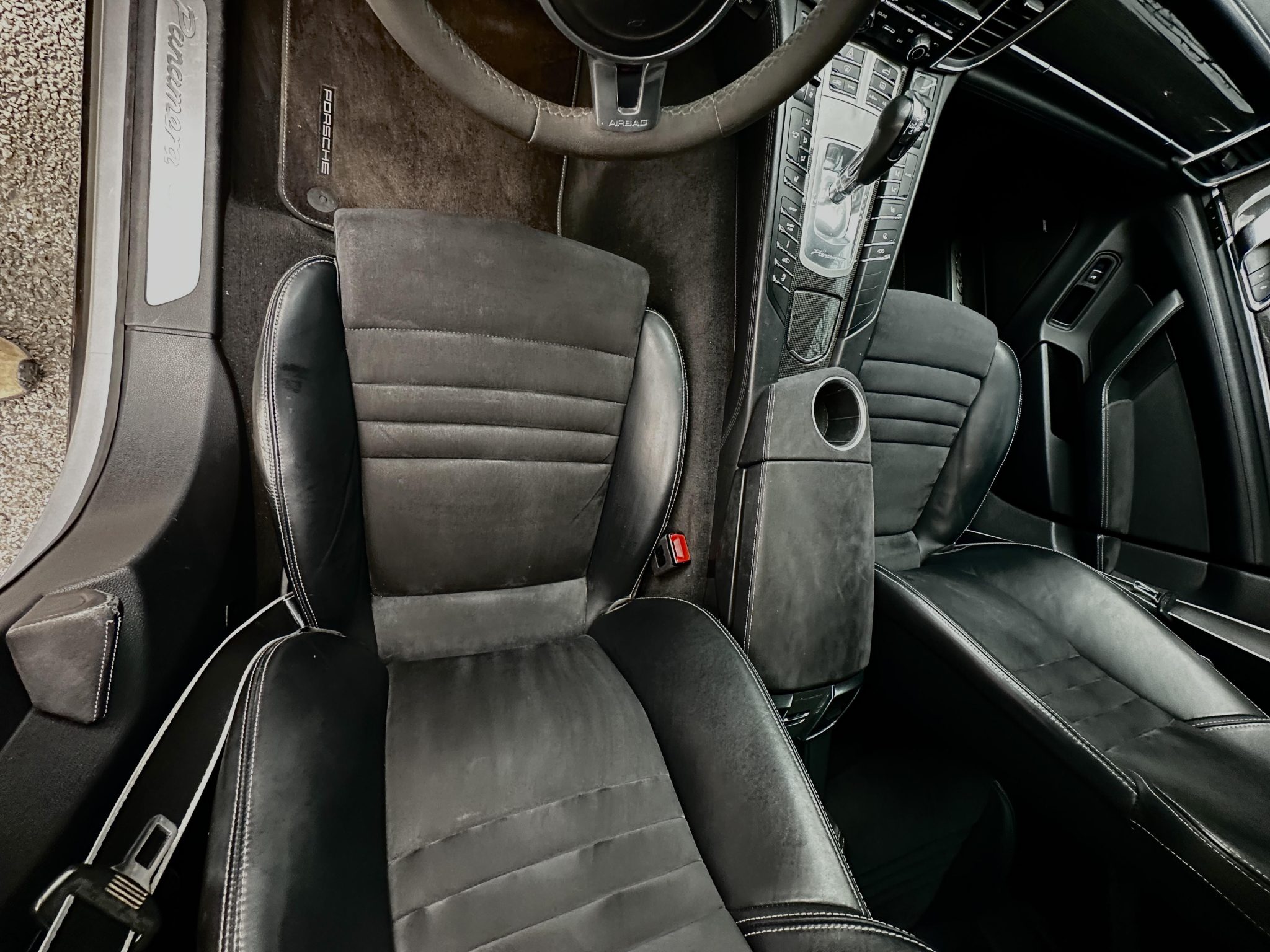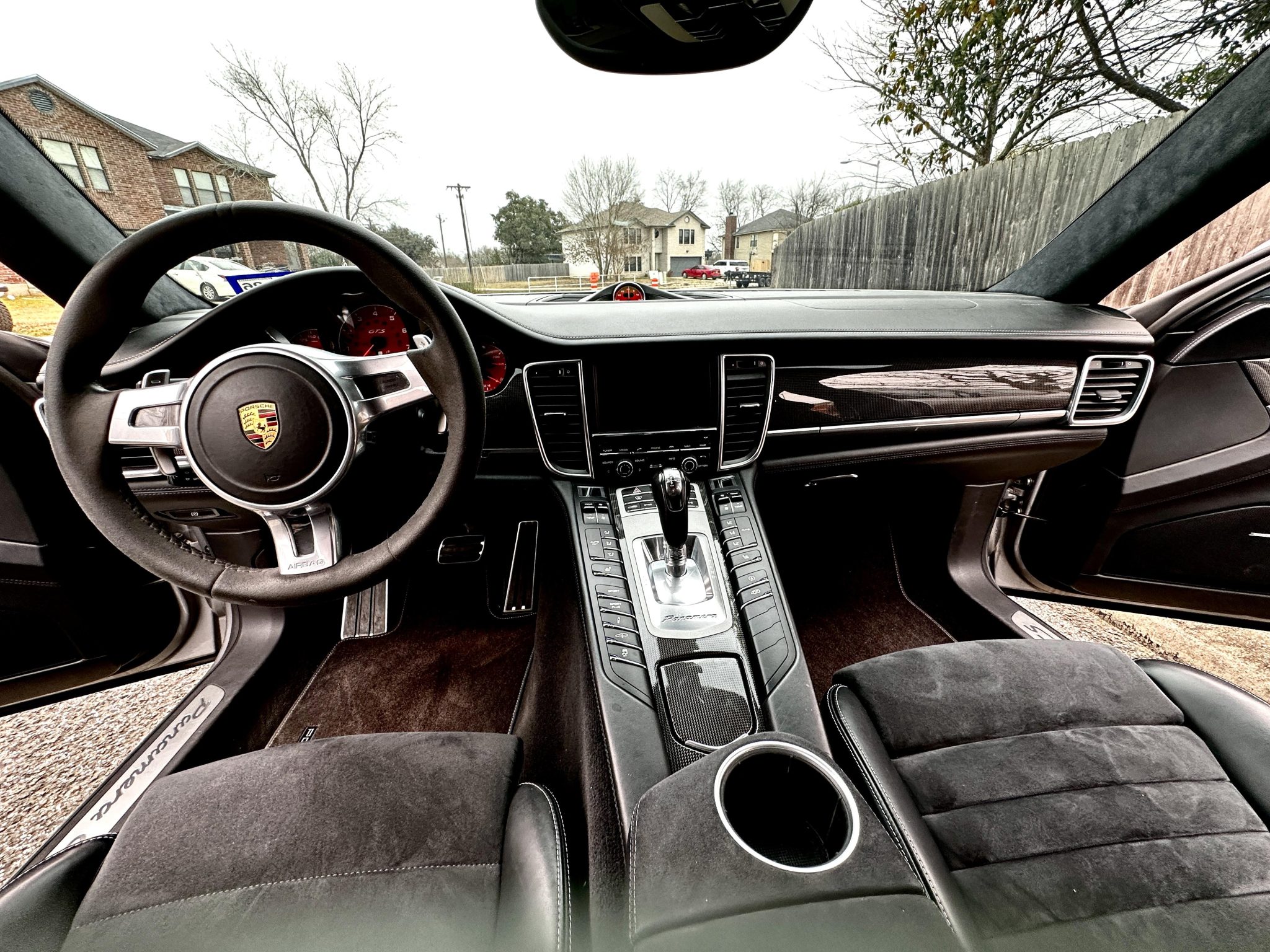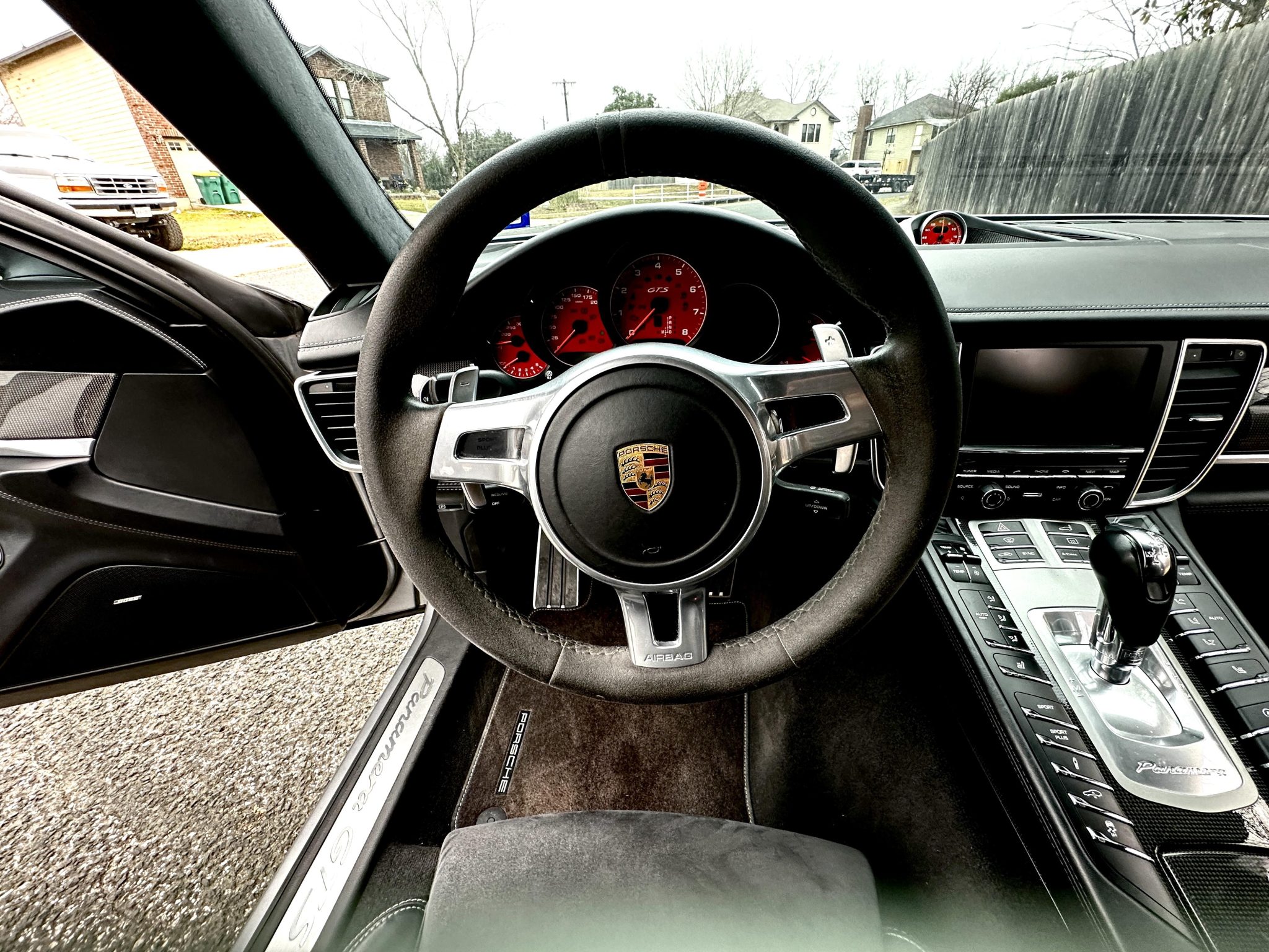 This 2016 Porsche Panamera GTS was specified new in GT Silver Metallic over black leather and Alcantara upholstery, and it features the Premium and Light Design packages as well as 20″ Turbo Design wheels, Porsche Ceramic-Composite Brakes (PCCB), Porsche Dynamic Chassis Control (PDCC), Lane Change Assist, Guards Red instrument dials, and a Bose Surround Sound system. Powered by a 4.8-liter V8 that drives all four wheels through a seven-speed PDK dual-clutch automatic transmission, the car also has dynamic LED headlight with PDLS Plus as well as a sunroof, ParkAssist, dual-zone automatic climate control, heated seating, and Porsche Communication Management (PCM) with navigation.