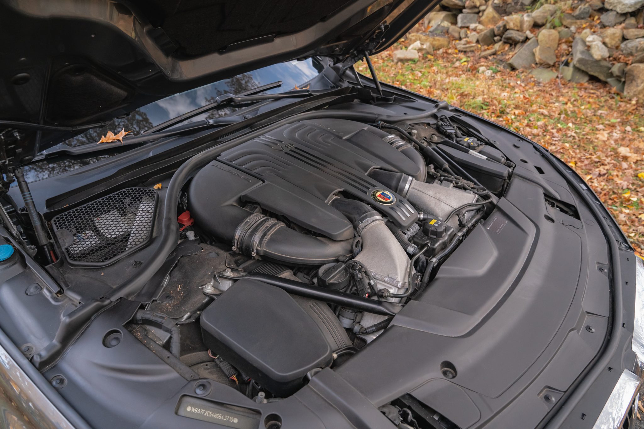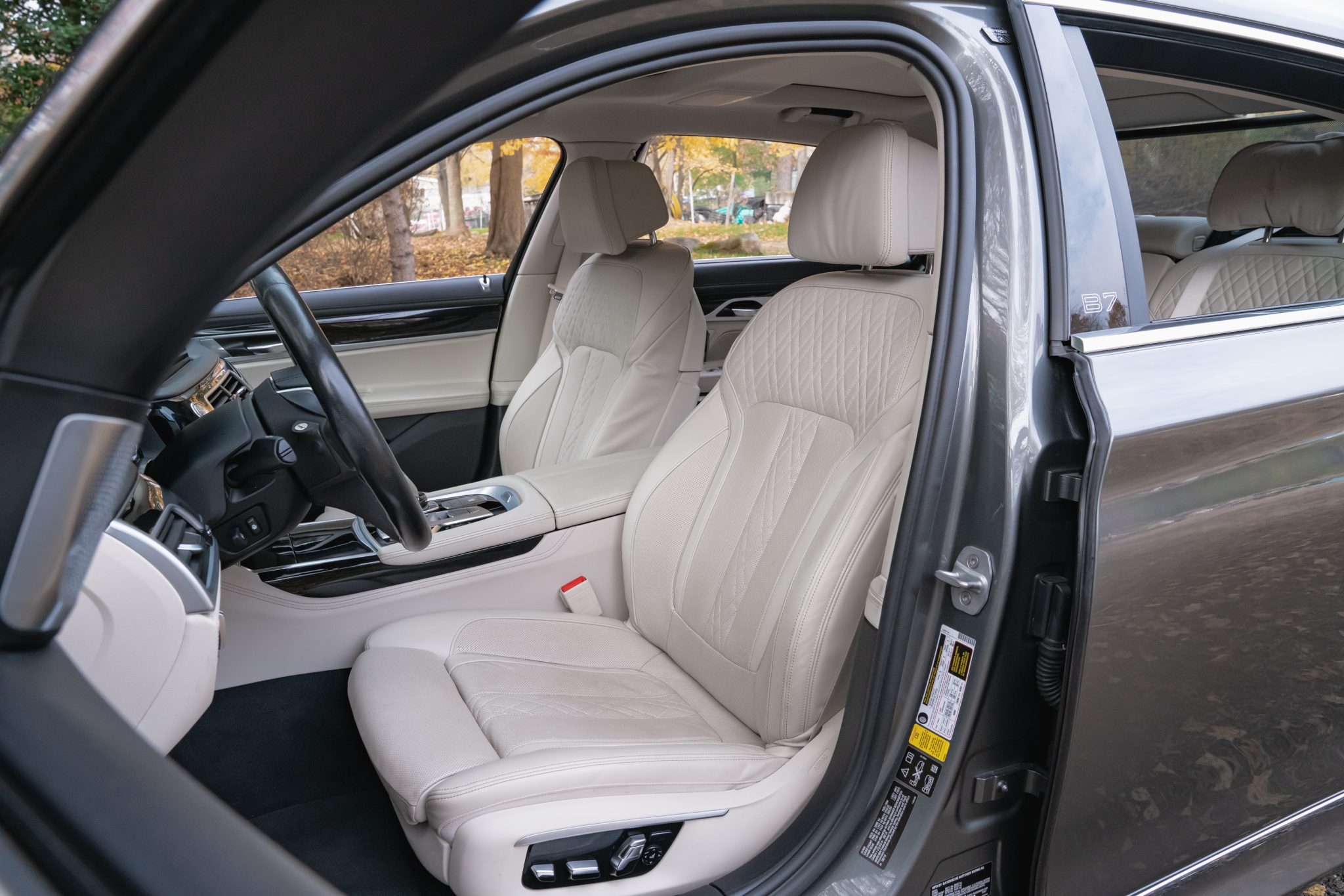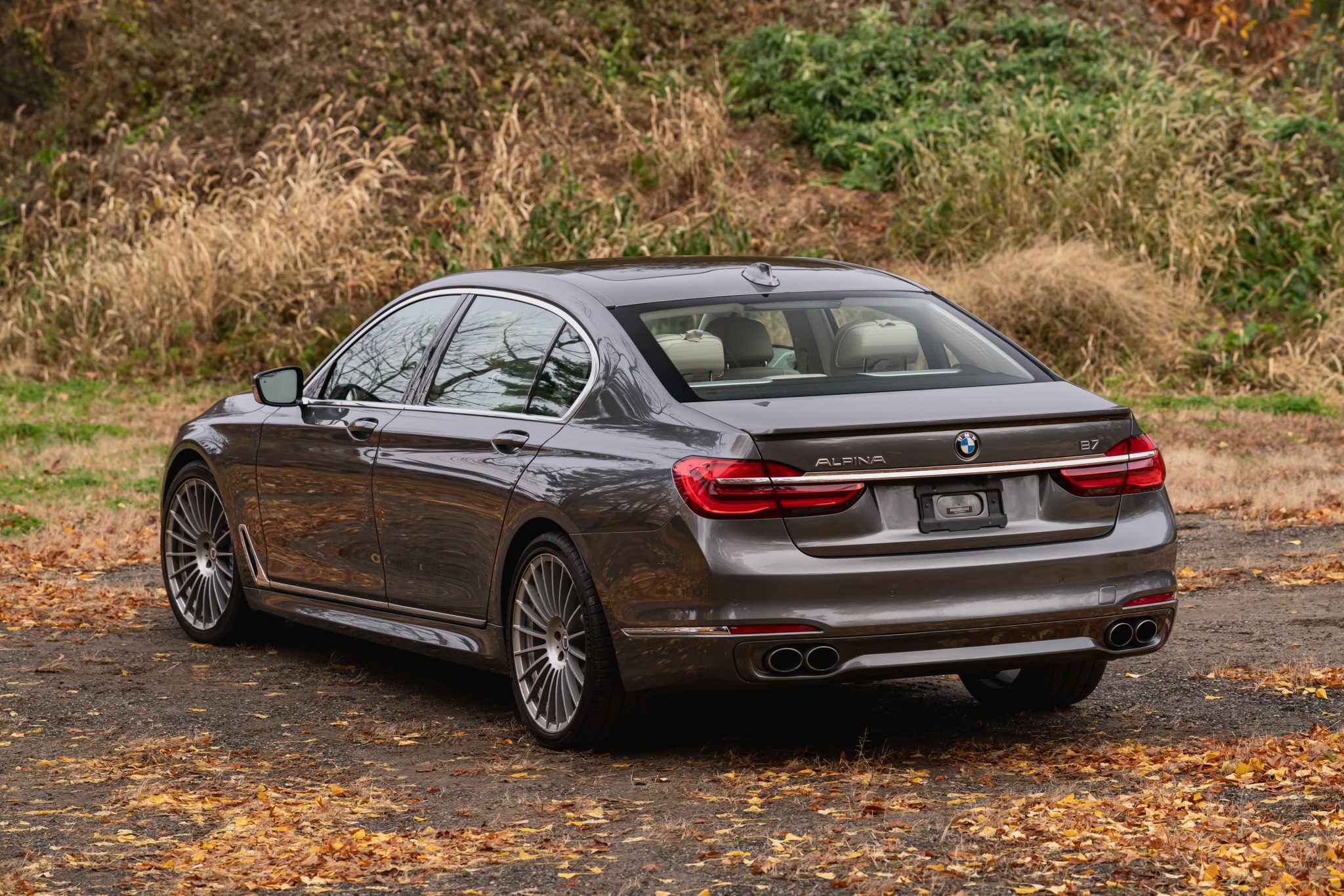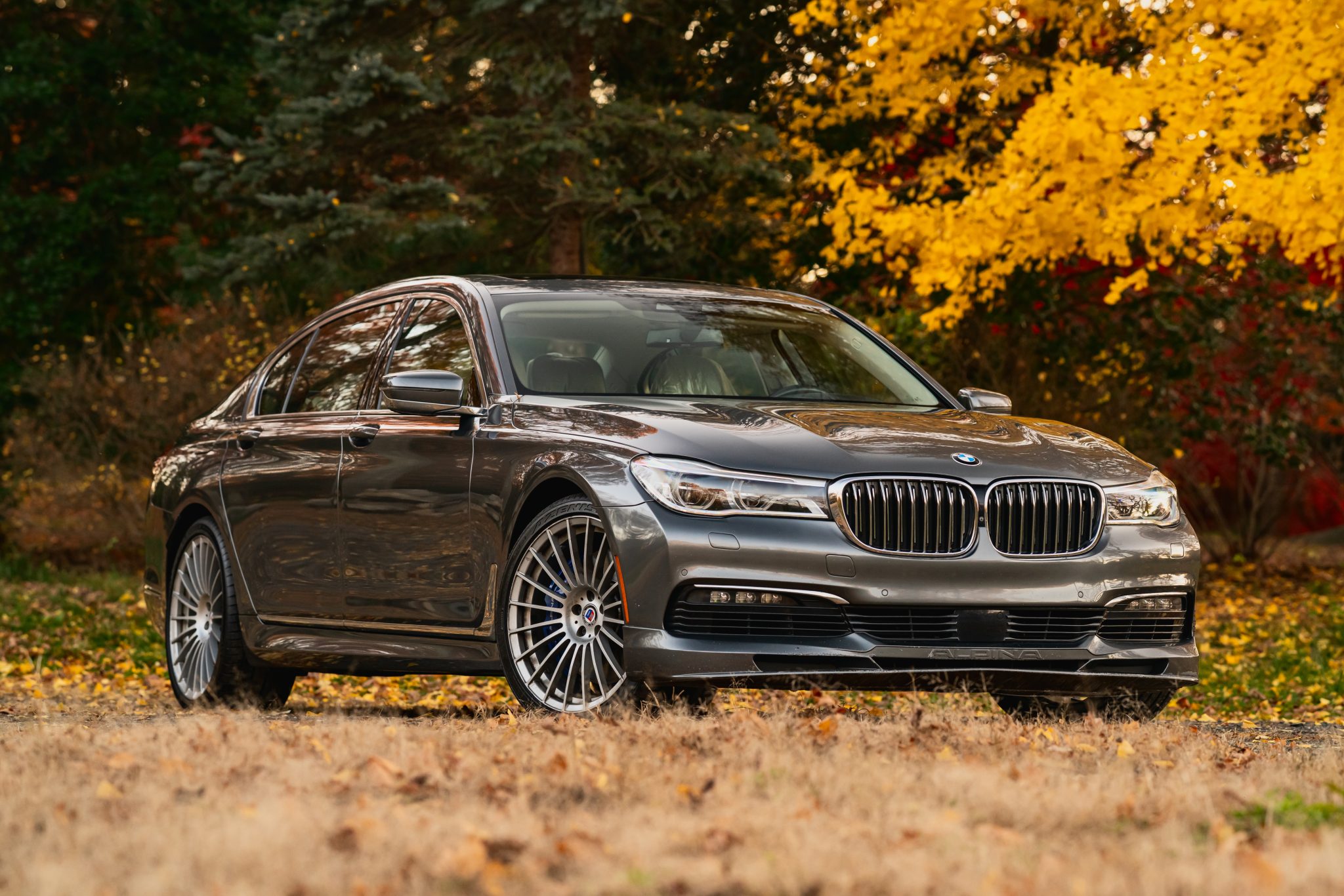 This 2017 BMW Alpina B7 xDrive is finished in Magellan Grey Metallic over Ivory White Nappa leather, and it was specified with the Executive and Cold Weather Packages as well as multi-spoke 21″ Alpina wheels, a panoramic Sky Lounge LED sunroof, and a Bowers and Wilkins sound system. Power is provided by a twin-turbocharged 4.4-liter V8 that drives all four wheels through an eight-speed automatic transmission and an xDrive all-wheel-drive system. Cabin features include heated and ventilated power-adjustable front and rear seats, seat massaging functions, and Piano Black trim, in addition to four-zone automatic climate control, a head-up display, Gesture Control, a surround view camera system, and iDrive infotainment.
