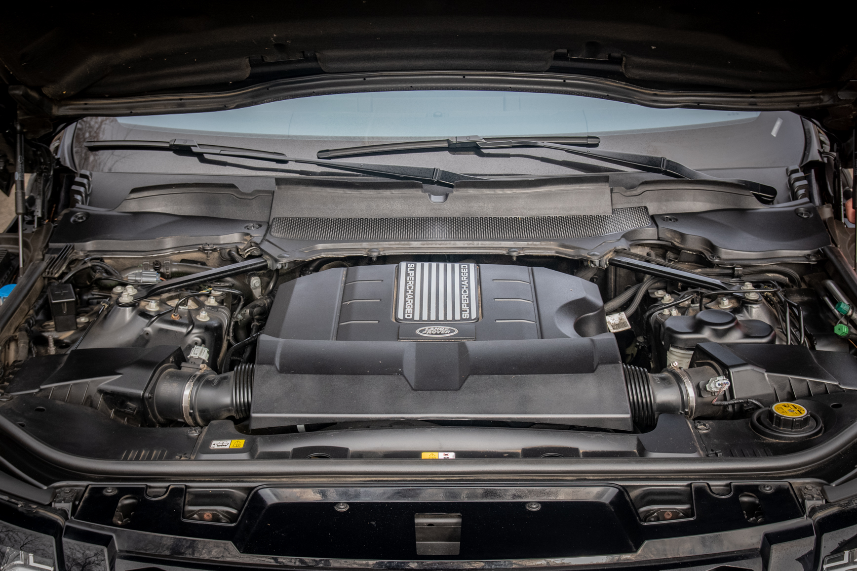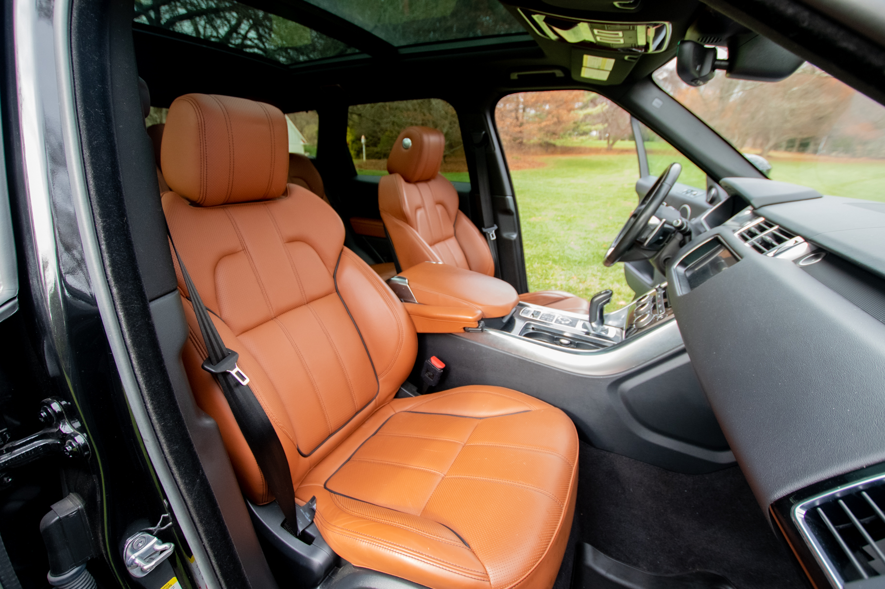 This 2017 Land Rover Range Rover Sport Supercharged Dynamic is powered by a supercharged 5.0-liter V8 that drives all four wheels through an eight-speed automatic transmission and a dual-range transfer case. The truck is finished in Santorini Black Metallic over tan leather upholstery and was initially delivered to Land Rover Cherry Hill in New Jersey. Additional equipment includes the Climate Comfort and Visibility Package, the Climate Comfort Package, the Drive Package, a panoramic sunroof, xenon headlights, parking sensors, 21″ Style 5007 wheels, heated and ventilated power-adjustable front seats, heated rear seats, a Meridian sound system, adaptive cruise control, and navigation.