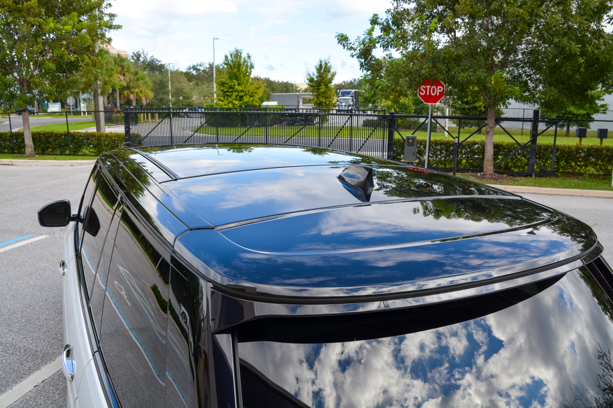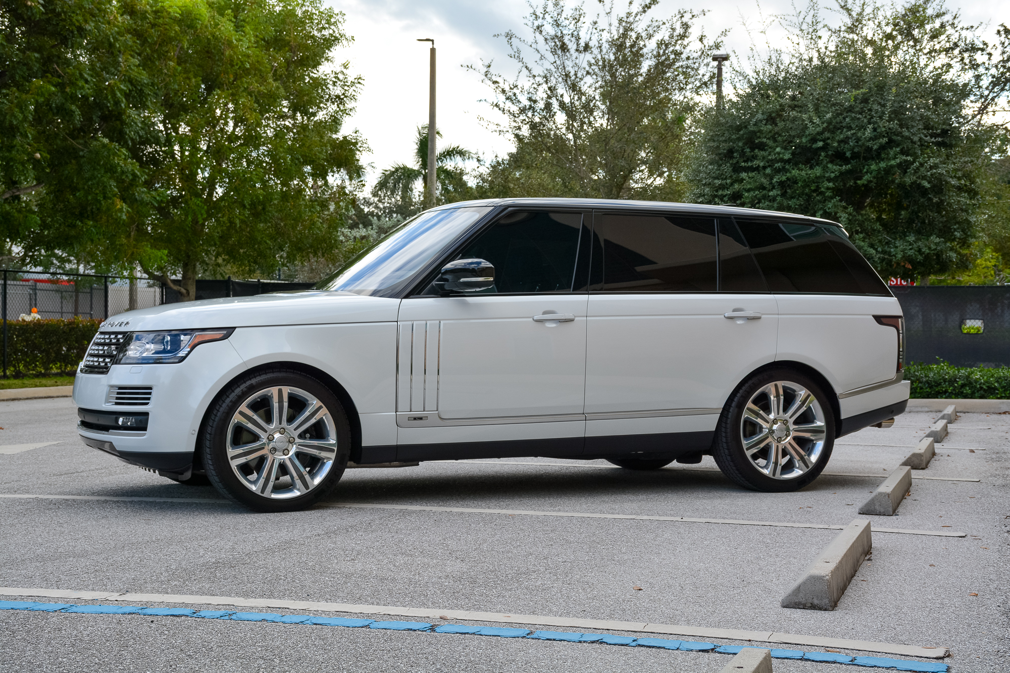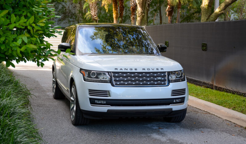 This 2017 Land Rover Range Rover SVAutobiography LWB  now has 47k miles. It is finished in Land Rover SVO Premium Palette Meribel White Pearl Pearlescent over Ebony and Lunar leather and is powered by a 550-horsepower supercharged 5.0-liter V8 linked with an eight-speed automatic transmission. Additional equipment includes the SVAutobiography package, heated and ventilated front and rear seats, a Santorini Black panoramic roof, 22″ high-gloss wheels, a head-up display, a Meridian sound system, adaptive cruise control, a rear-seat entertainment system, rear tray tables, and a rear beverage chiller compartment.