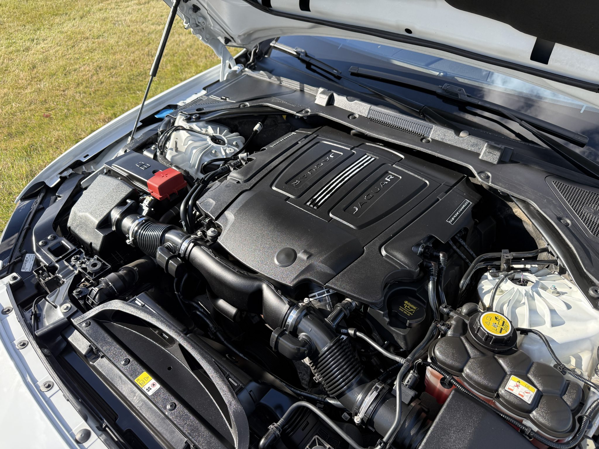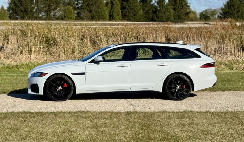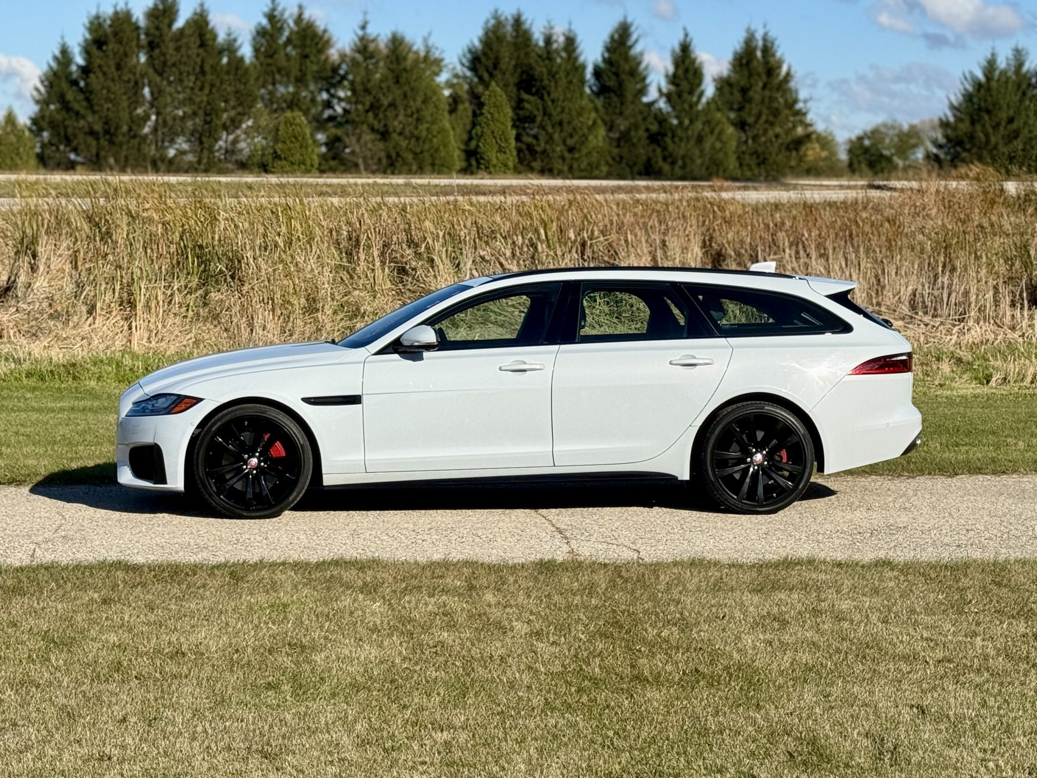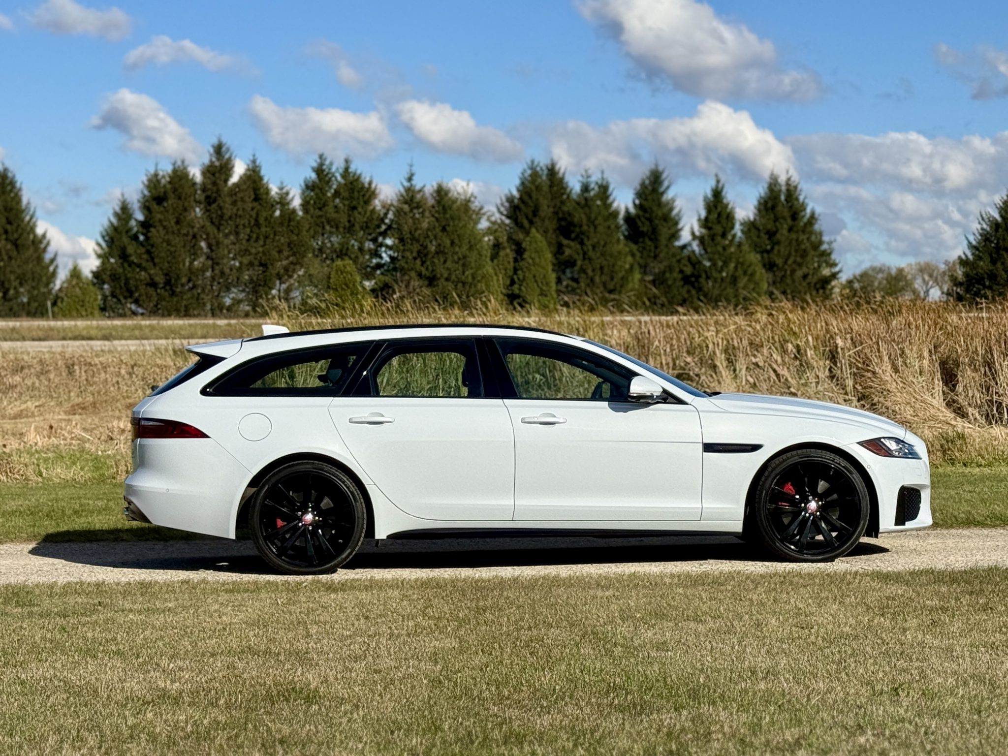 This 2018 Jaguar XF Sportbrake S is one of fewer than 250 examples produced for the US market over a three-year model run. The car is powered by a supercharged 3.0-liter V6 that drives all four wheels through an eight-speed automatic transmission and an all-wheel-drive system, and it is finished in Yulong White Metallic with Black Pack trim over Ebony leather. Equipment includes a panoramic fixed-glass roof, adaptive LED headlights, a rear spoiler, front and rear parking sensors, a sport-tuned suspension, 20″ Style 5031 alloy wheels, heated and ventilated power-adjustable front seats, heated rear seats, a heated steering wheel, a head-up display, wood-veneer interior trim, an InControl Touch Pro infotainment system, a Meridian Surround sound system, automatic climate control, and adaptive cruise control.