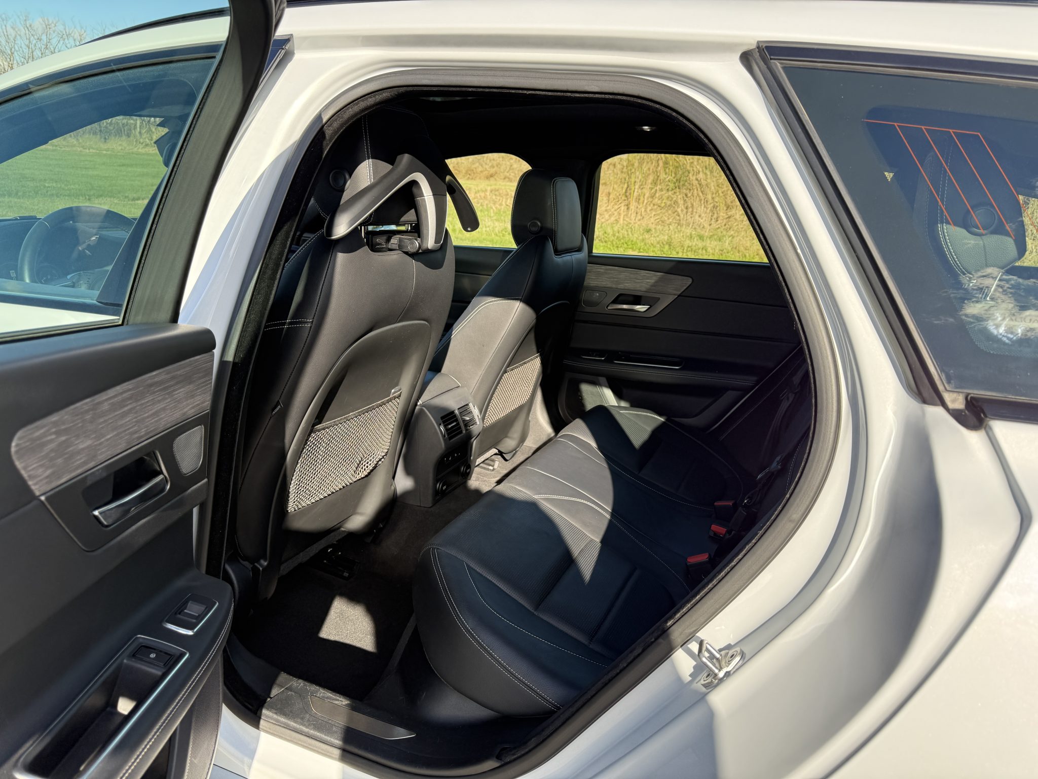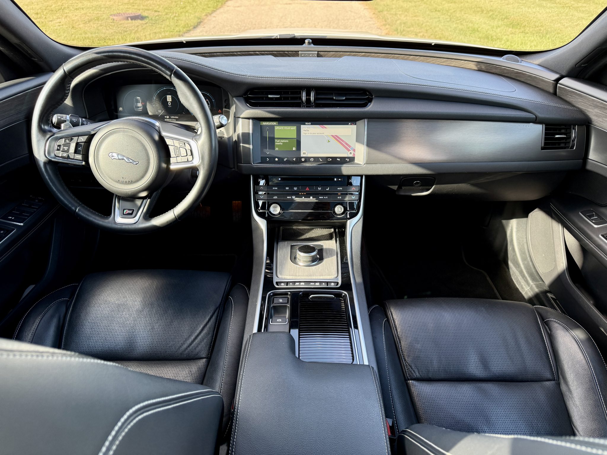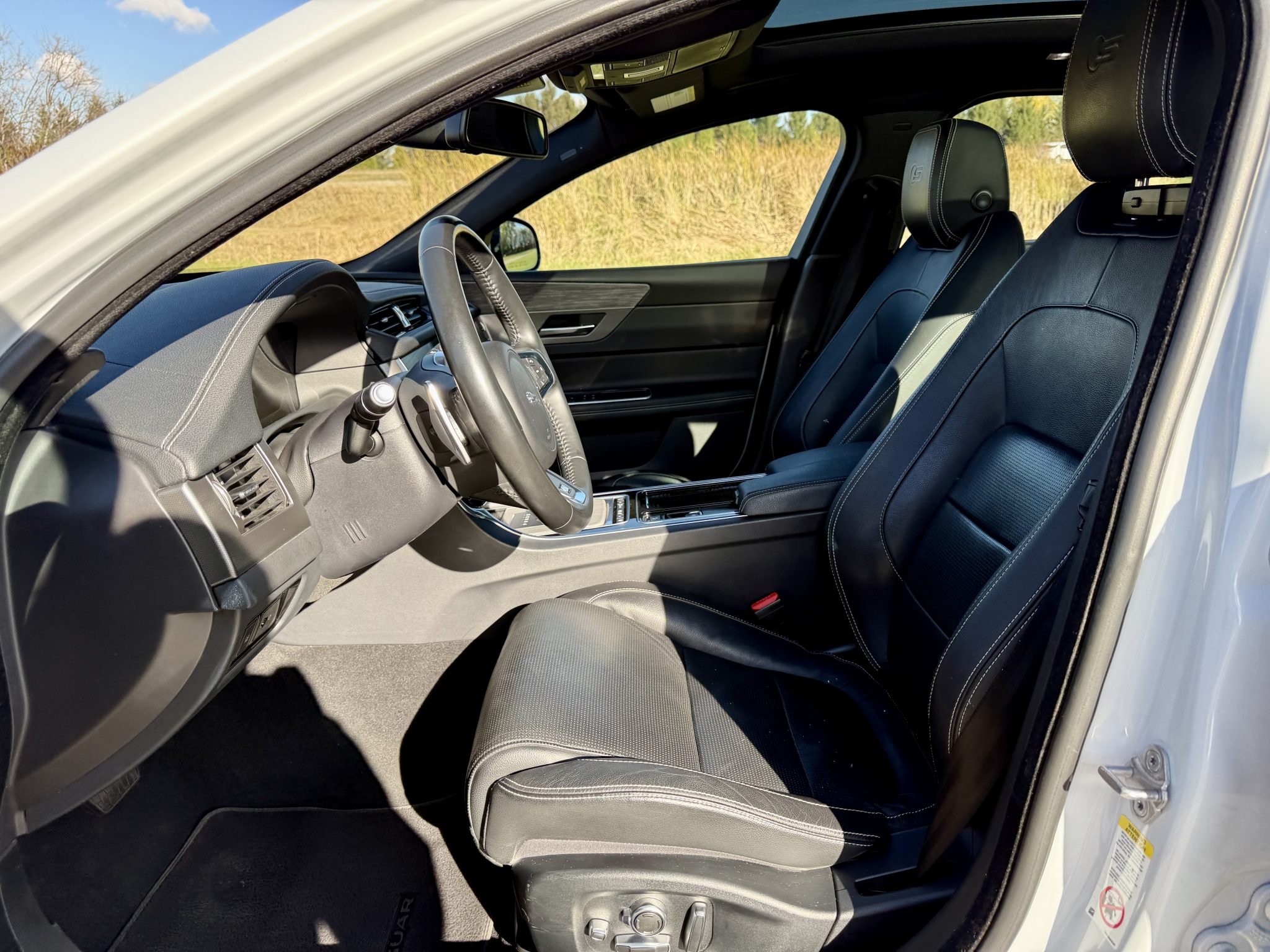 This 2018 Jaguar XF Sportbrake S is one of fewer than 250 examples produced for the US market over a three-year model run. The car is powered by a supercharged 3.0-liter V6 that drives all four wheels through an eight-speed automatic transmission and an all-wheel-drive system, and it is finished in Yulong White Metallic with Black Pack trim over Ebony leather. Equipment includes a panoramic fixed-glass roof, adaptive LED headlights, a rear spoiler, front and rear parking sensors, a sport-tuned suspension, 20″ Style 5031 alloy wheels, heated and ventilated power-adjustable front seats, heated rear seats, a heated steering wheel, a head-up display, wood-veneer interior trim, an InControl Touch Pro infotainment system, a Meridian Surround sound system, automatic climate control, and adaptive cruise control.