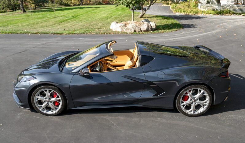 It was optioned from the factory with the Z51 Performance Package and the 3LT Premium Equipment Group, and it is powered by a mid-mounted 6.2-liter V8 linked with an eight-speed dual-clutch automatic transaxle and a limited-slip differential. Finished in Shadow Gray Metallic over Natural Dipped leather, the car has 14k miles and is further equipped with Sterling Silver-finished 19″ and 20″ five-spoke Trident wheels, a removable carbon-fiber roof panel, a Z51 suspension, a front suspension lift system, a performance exhaust system, a Z51 rear spoiler, LED headlights, the Engine Appearance Package, heated and ventilated power-adjustable GT2 bucket seats, front and rear cameras, navigation, carbon-fiber interior trim, and a Bose sound system.
