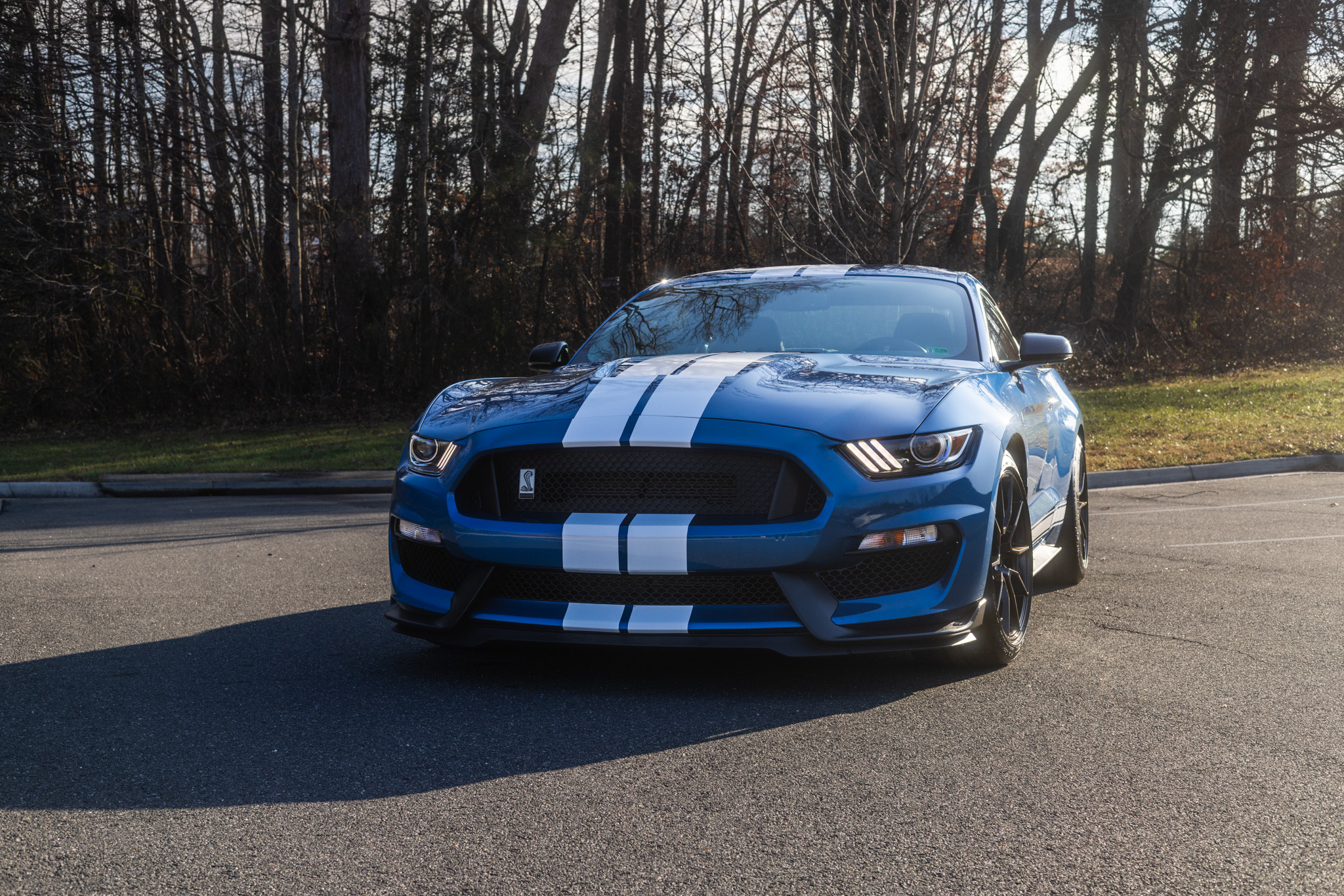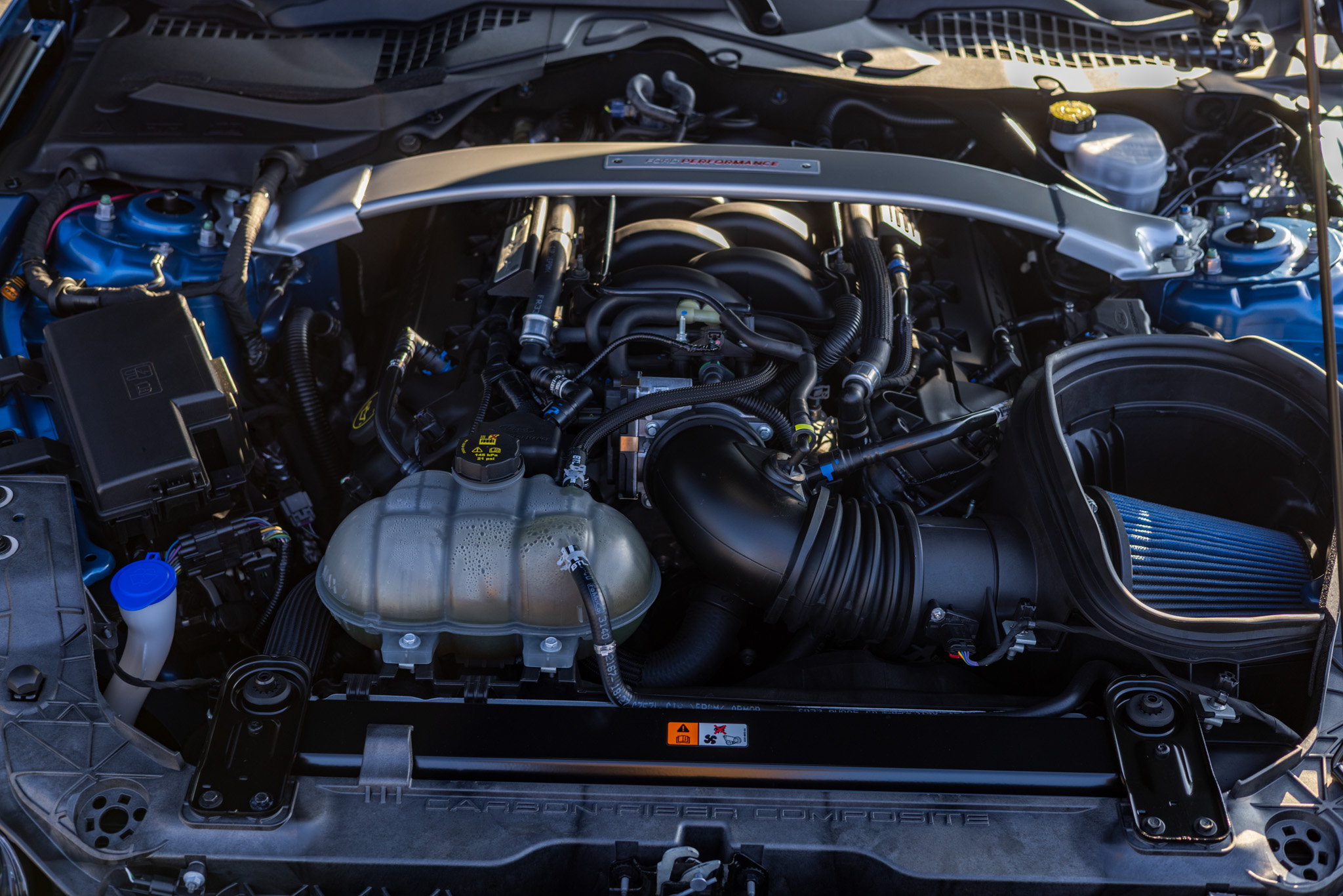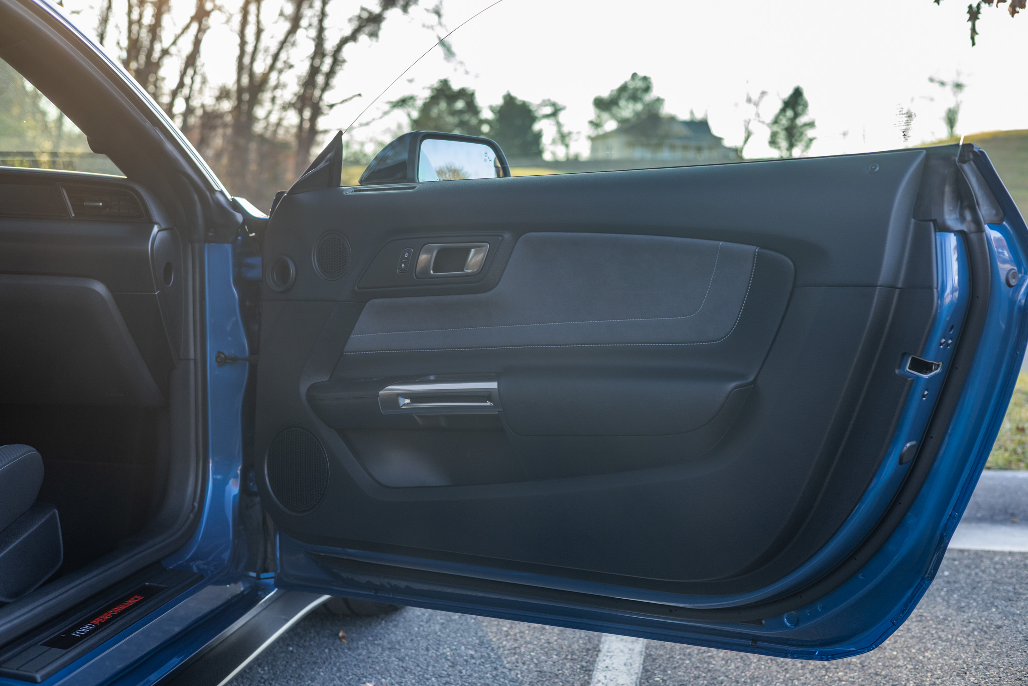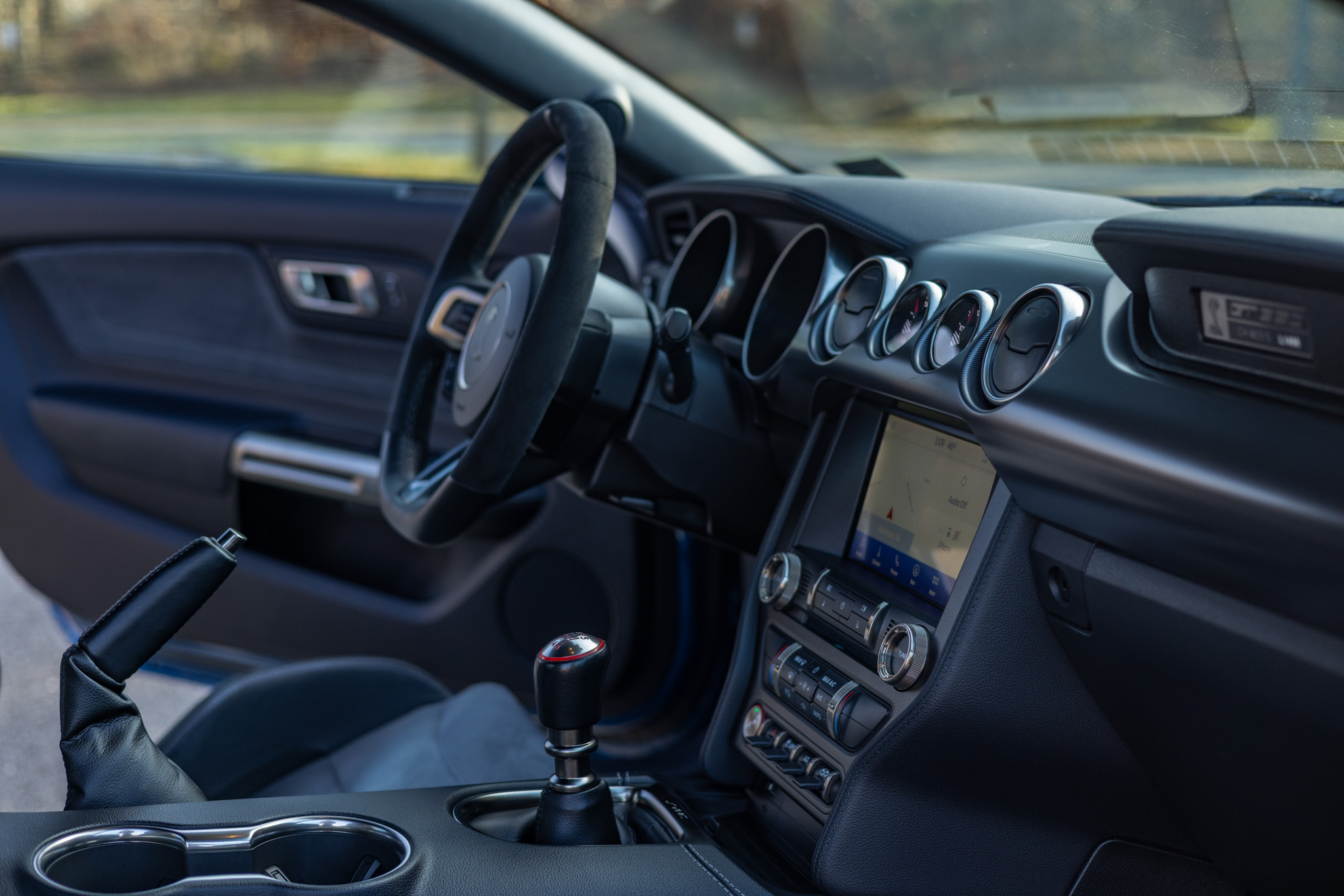 Finished in Ford Performance Blue over Ebony cloth and Miko suede, the car is powered by a 5.2-liter Voodoo V8 linked with a six-speed manual transmission and a Torsen limited-slip differential. Additional equipment includes the Technology Package, 19″ aluminum wheels, Brembo brake calipers, a rear spoiler, a Bang & Olufsen sound system, Recaro front seats, and a touchscreen infotainment system with voice-activated navigation.