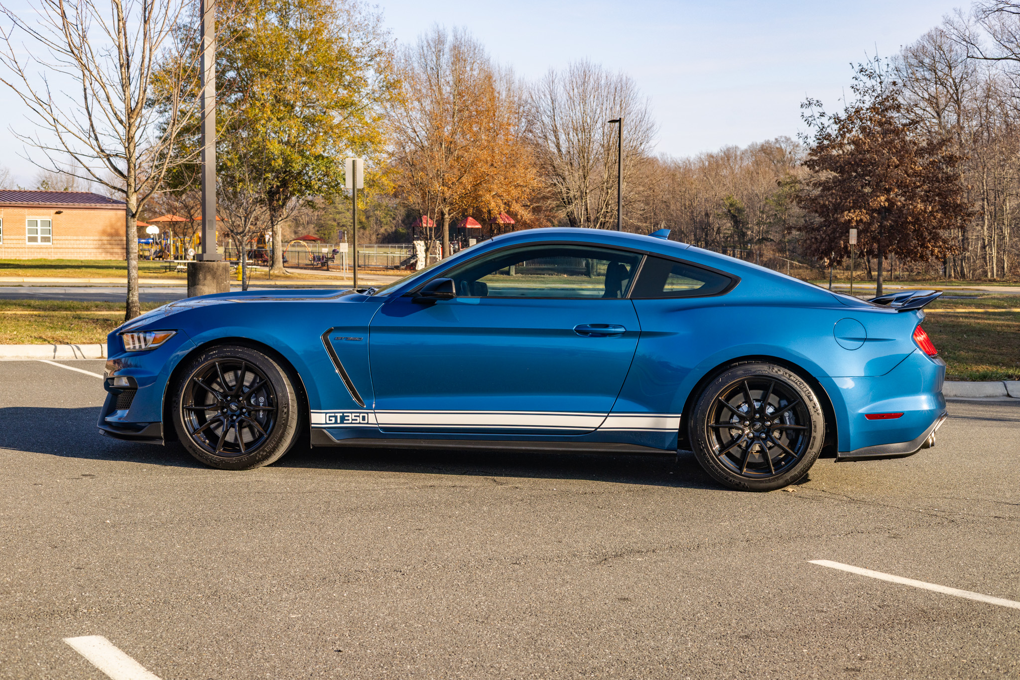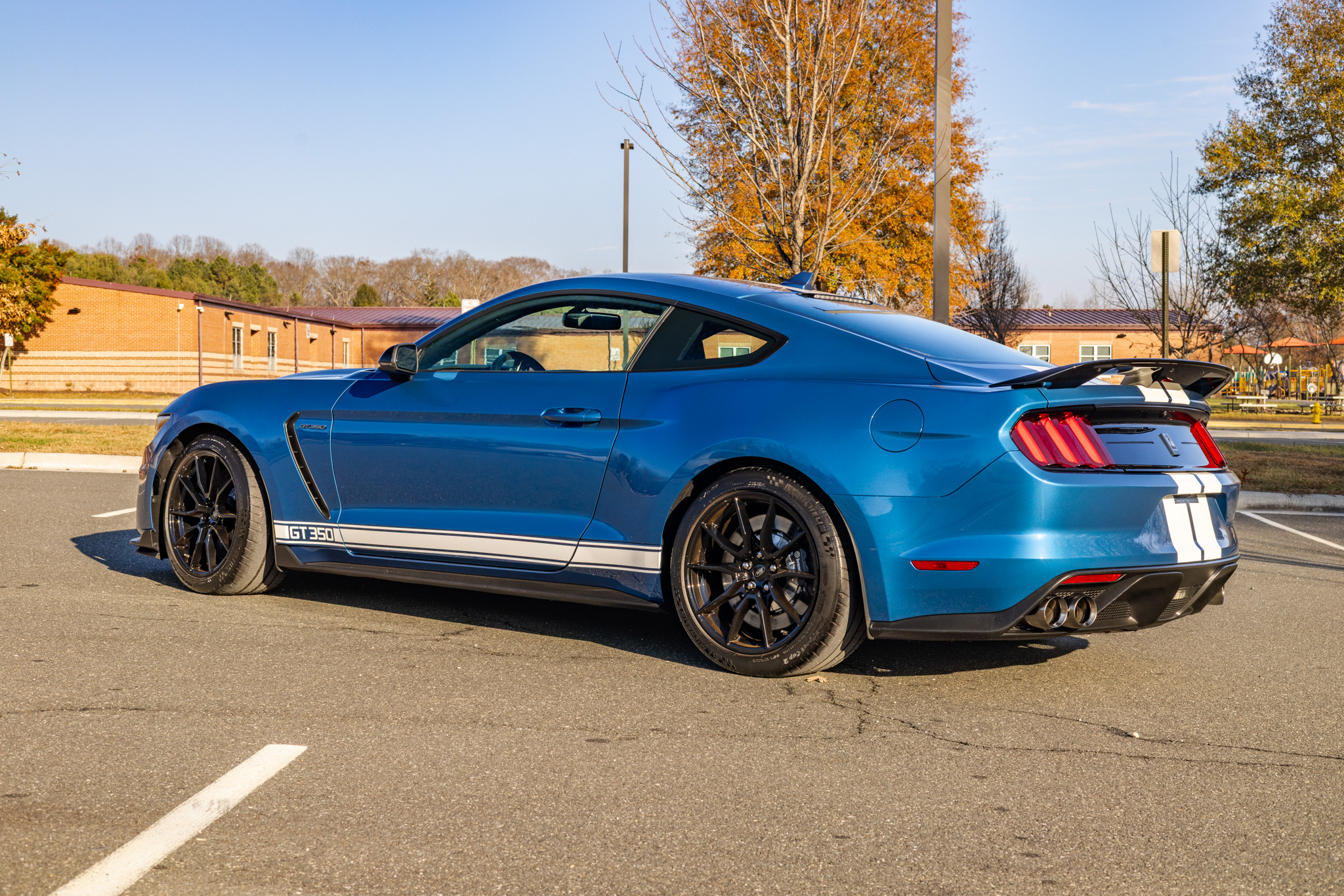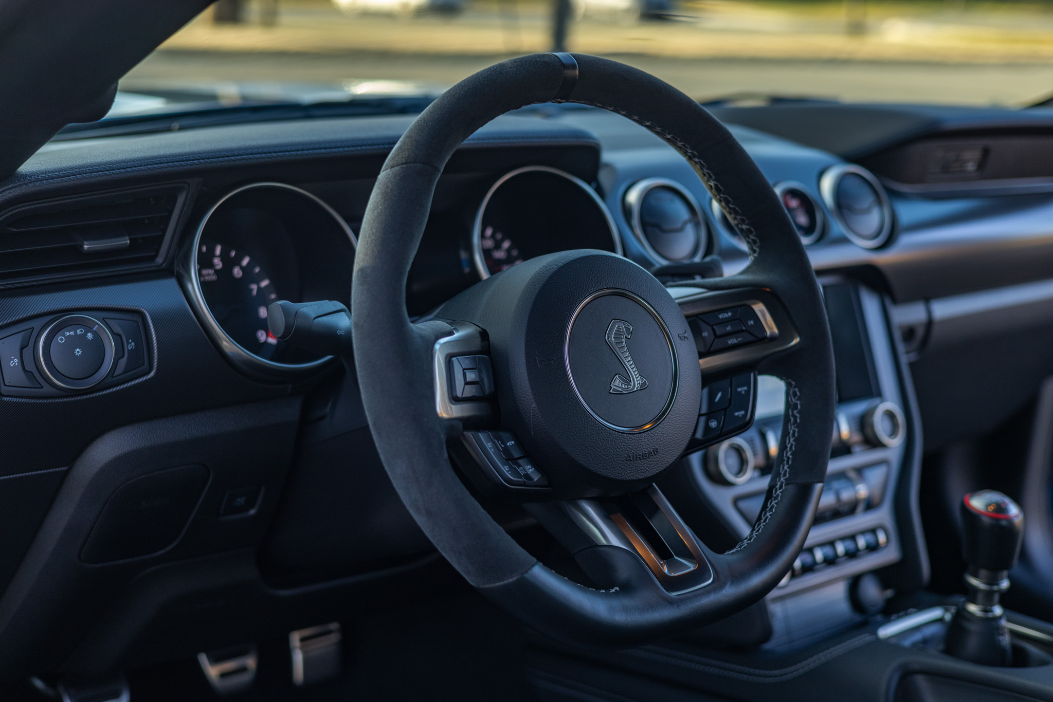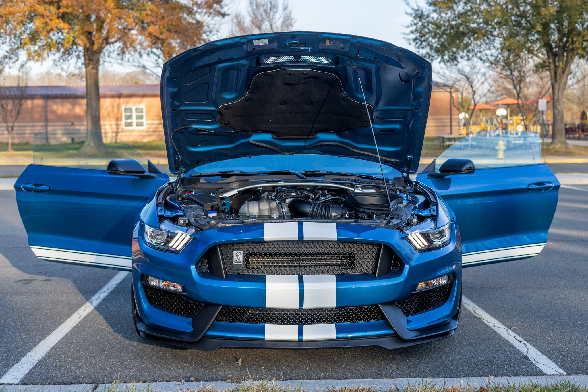 Finished in Ford Performance Blue over Ebony cloth and Miko suede, the car is powered by a 5.2-liter Voodoo V8 linked with a six-speed manual transmission and a Torsen limited-slip differential. Additional equipment includes the Technology Package, 19″ aluminum wheels, Brembo brake calipers, a rear spoiler, a Bang & Olufsen sound system, Recaro front seats, and a touchscreen infotainment system with voice-activated navigation.