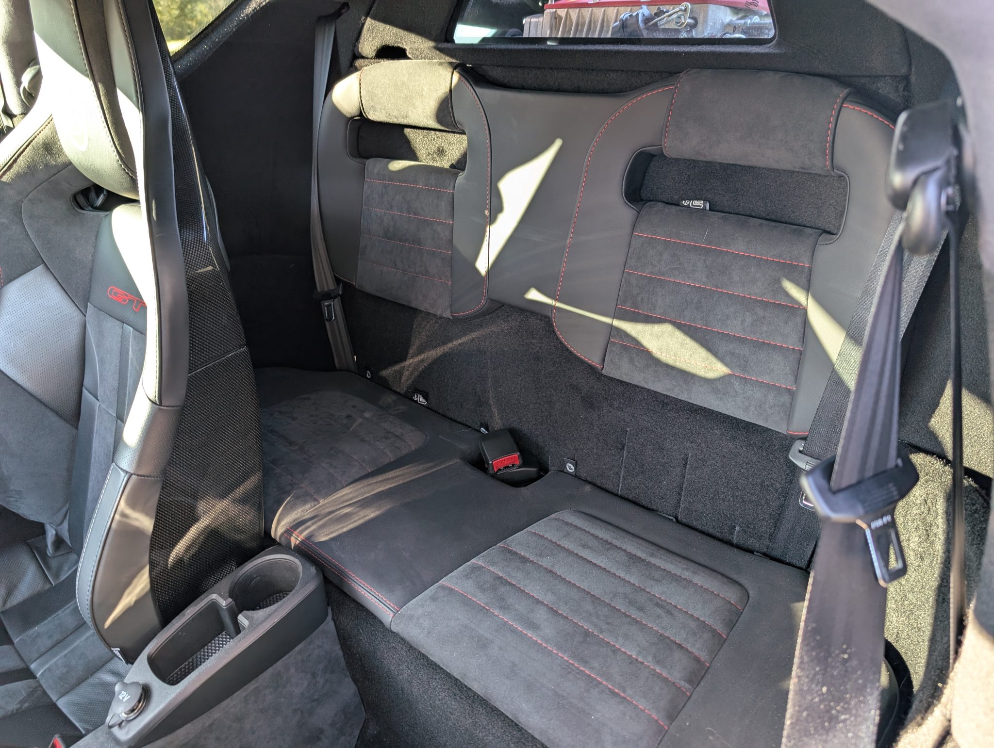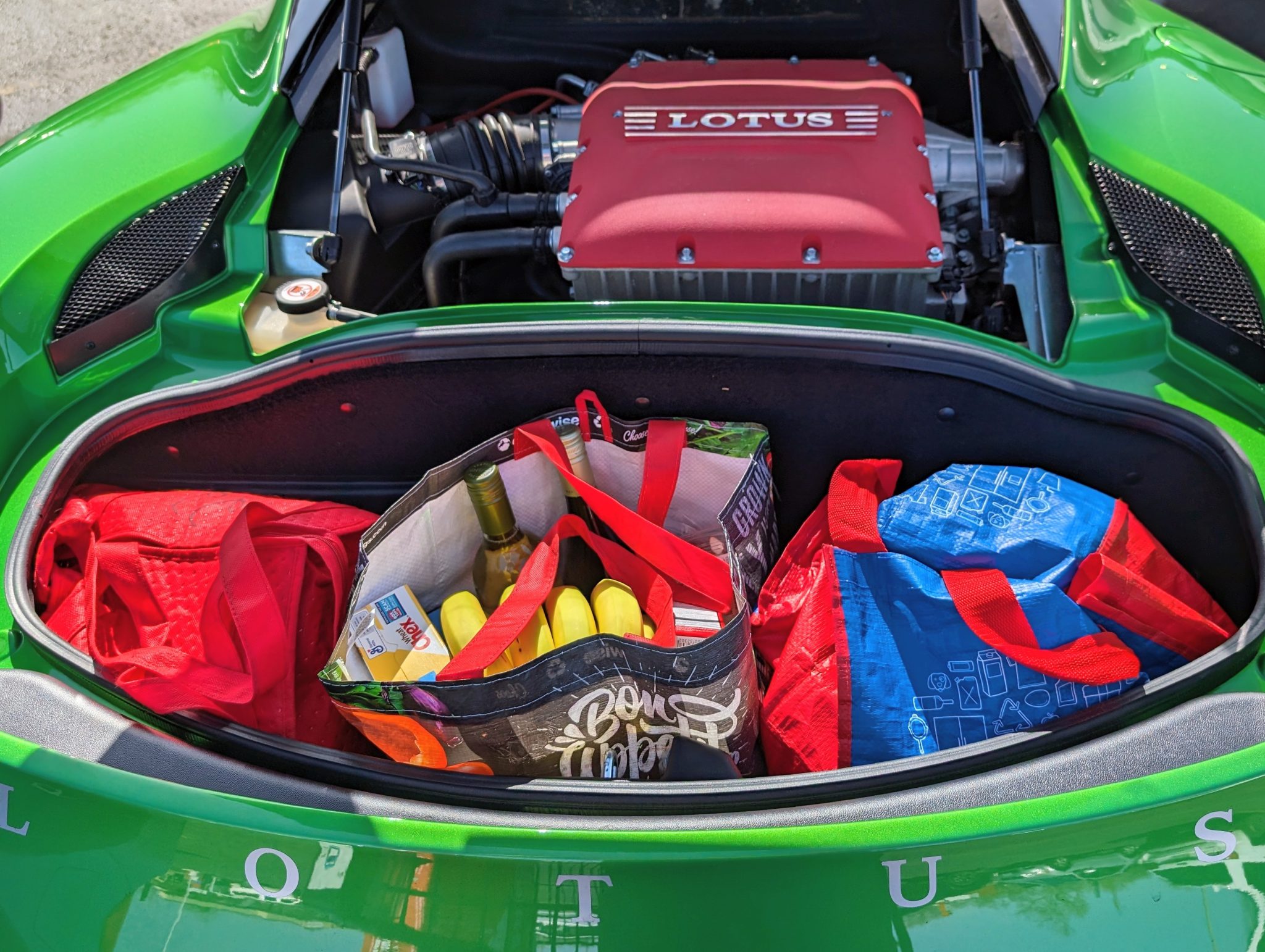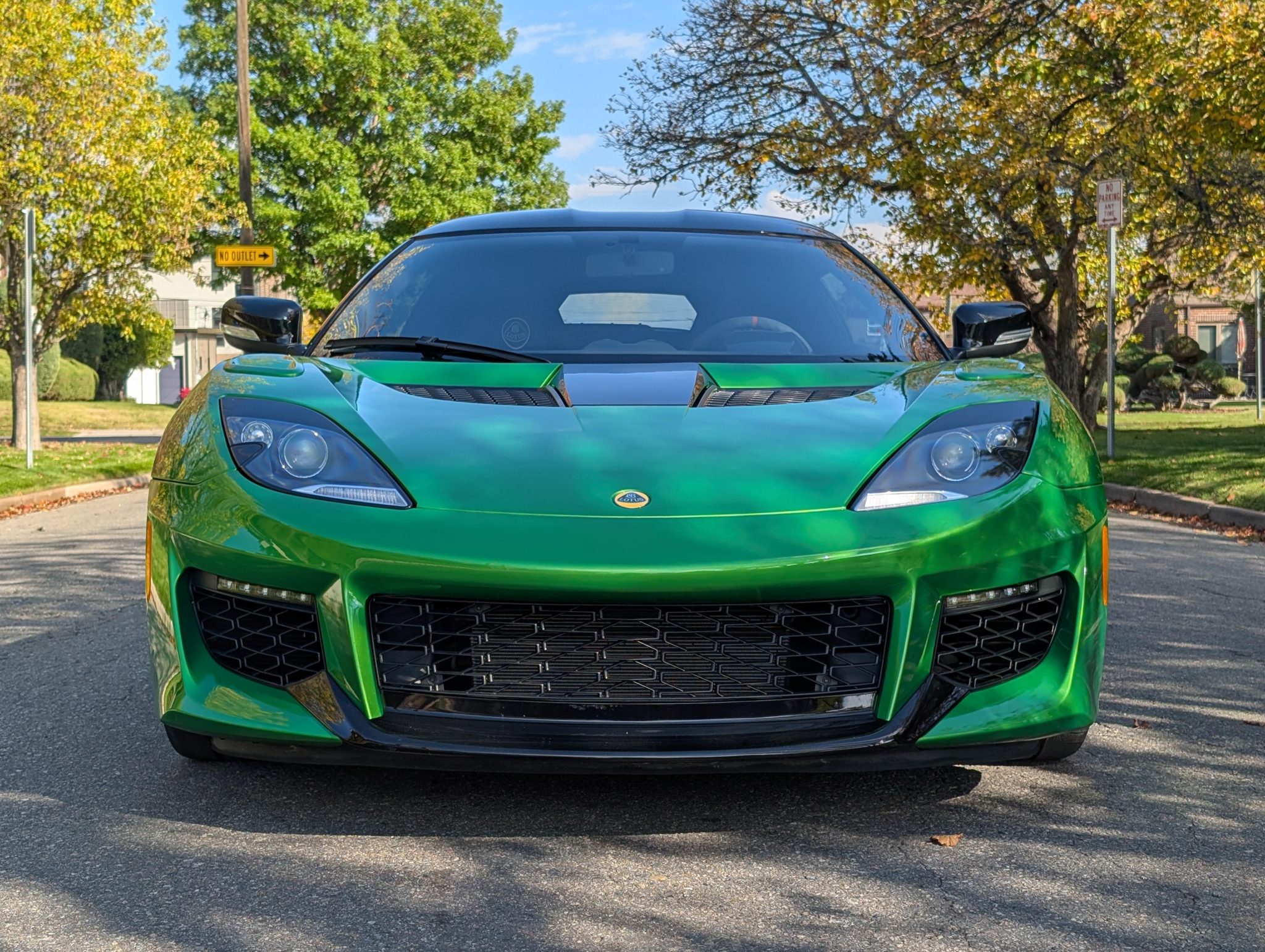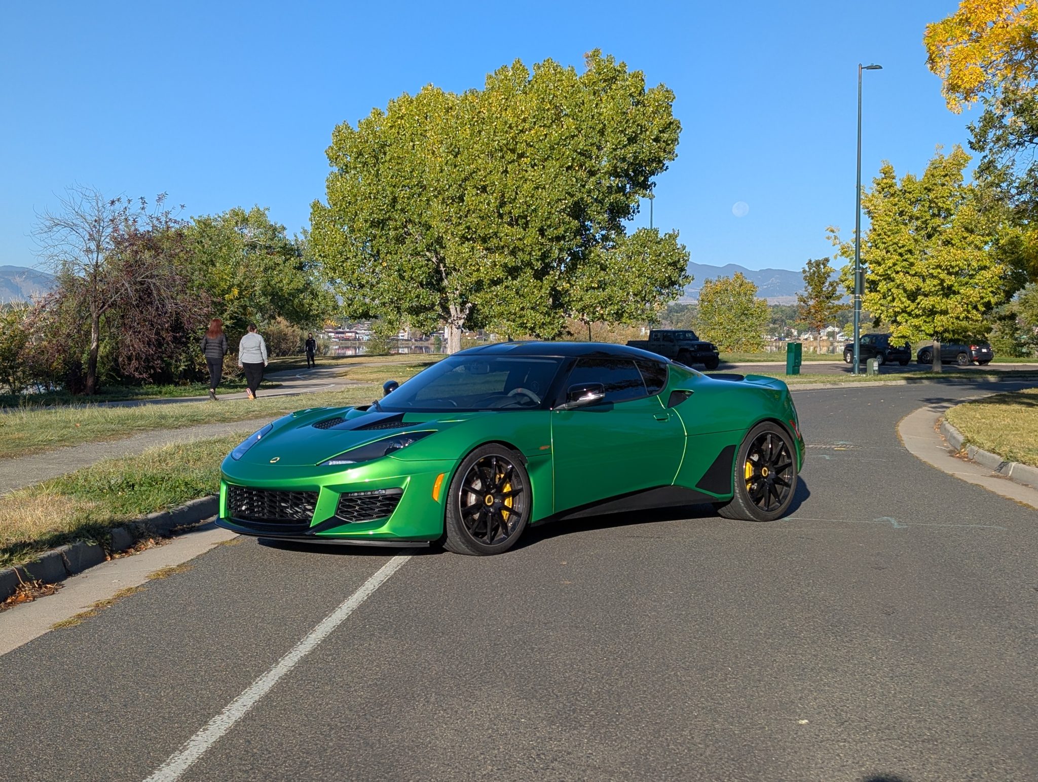 This 2020 Lotus Evora GT 2+2 has 4,700 miles Powered by a supercharged 3.5-liter V6 linked with a six-speed manual transaxle, the car is equipped with black leather and Alcantara, a limited-slip differential, the Vivid Green Interior Color Pack, bi-xenon headlights, LED taillights, rear parking sensors, 19″ and 20″ diamond-cut forged wheels, heated carbon-fiber bucket seats, a subwoofer, an amplifier, a rear-view camera, an Alpine head unit, cruise control, two rear seats, and air conditioning.