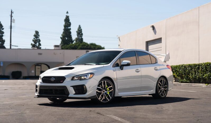 This 2021 Subaru WRX STi Limited is finished in Crystal White Pearl over Carbon Black upholstery and is powered by a turbocharged 2.5-liter flat-four mated to a six-speed manual transaxle, a Driver-Controlled Center Differential, and front and rear limited-slip differentials. Standard on the Limited was a Brembo high-performance brake system, 19″ alloy wheels, a rear wing, adaptive LED headlights, heated Recaro front seats, dual-zone automatic climate control, a 440-watt, nine-speaker audio system, and keyless entry. This example was also specified with the Sport Performance 1B package, which added a short-throw shifter and shift knob, along with a center armrest, a mirror compass with Homelink, LED dome and map lights, all-weather mats, and a trunk liner.