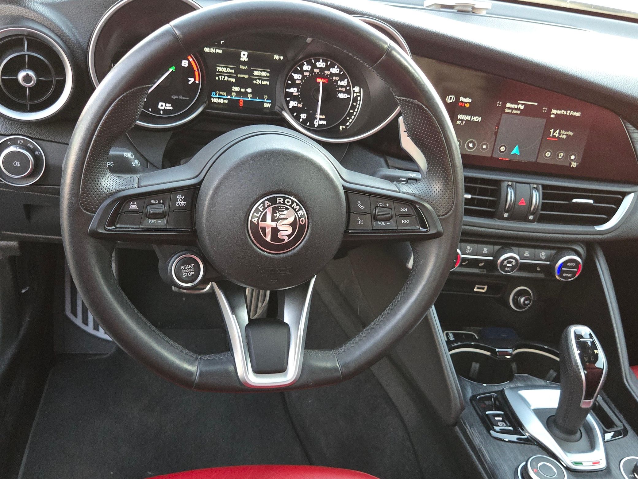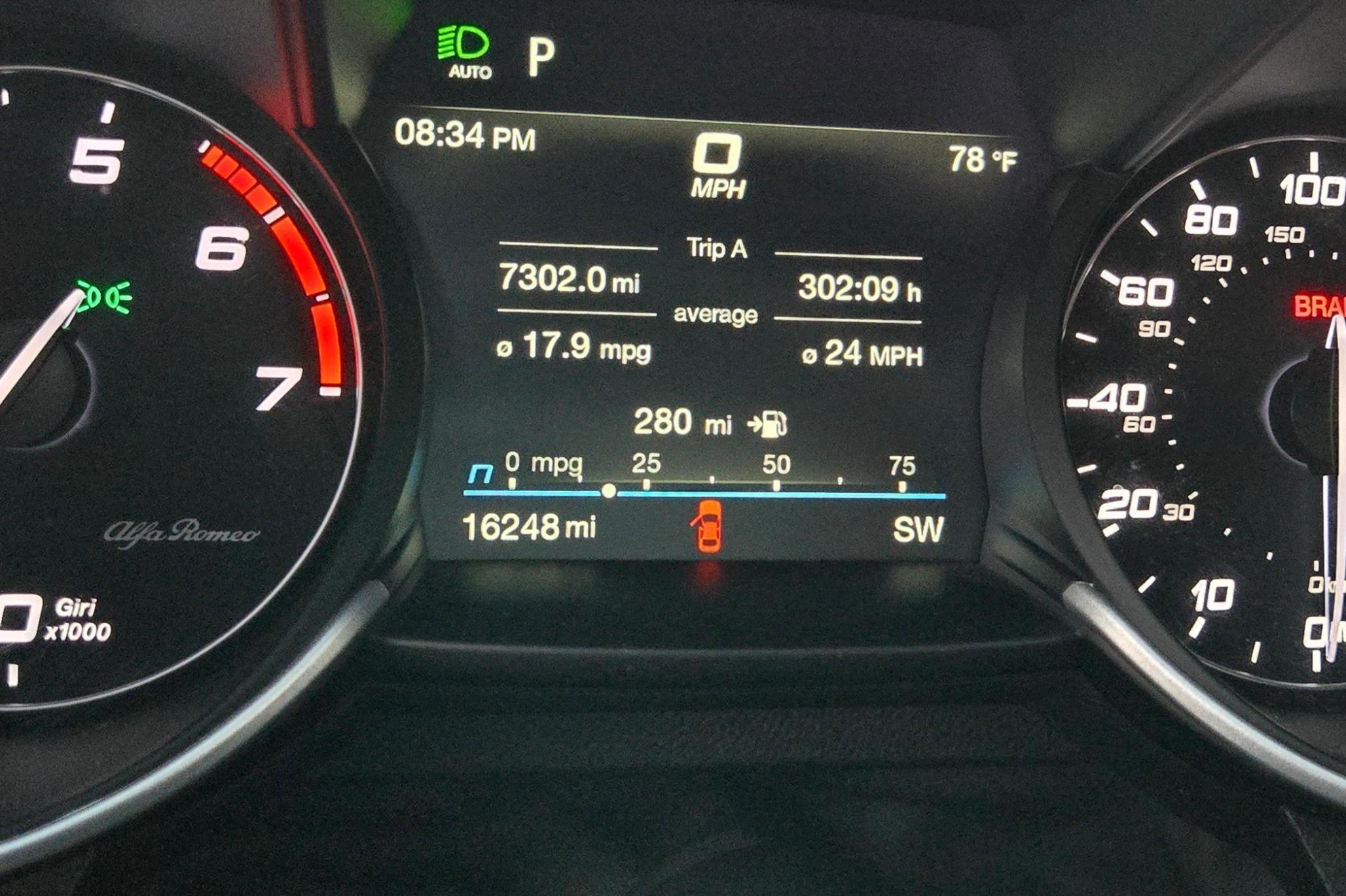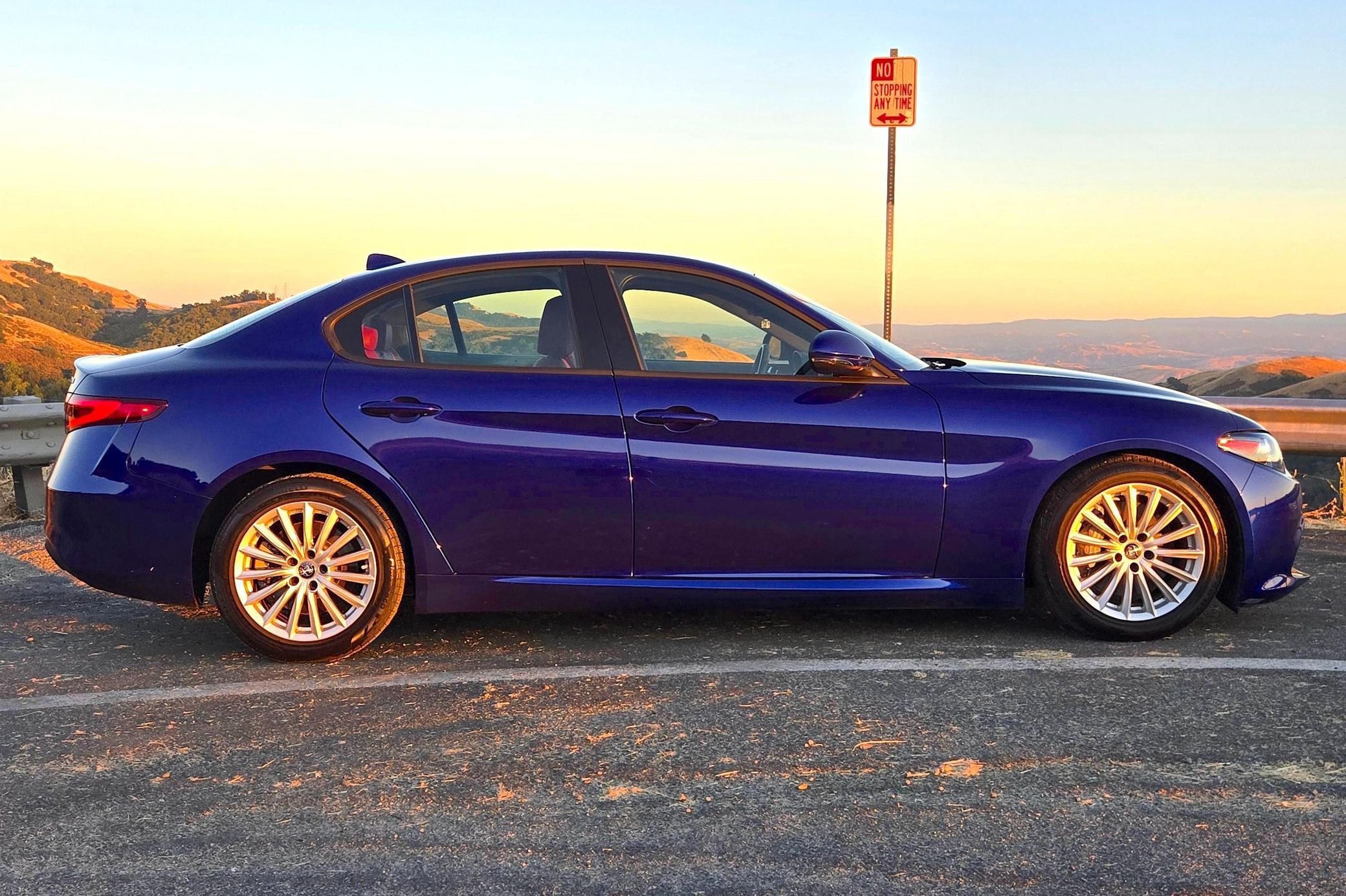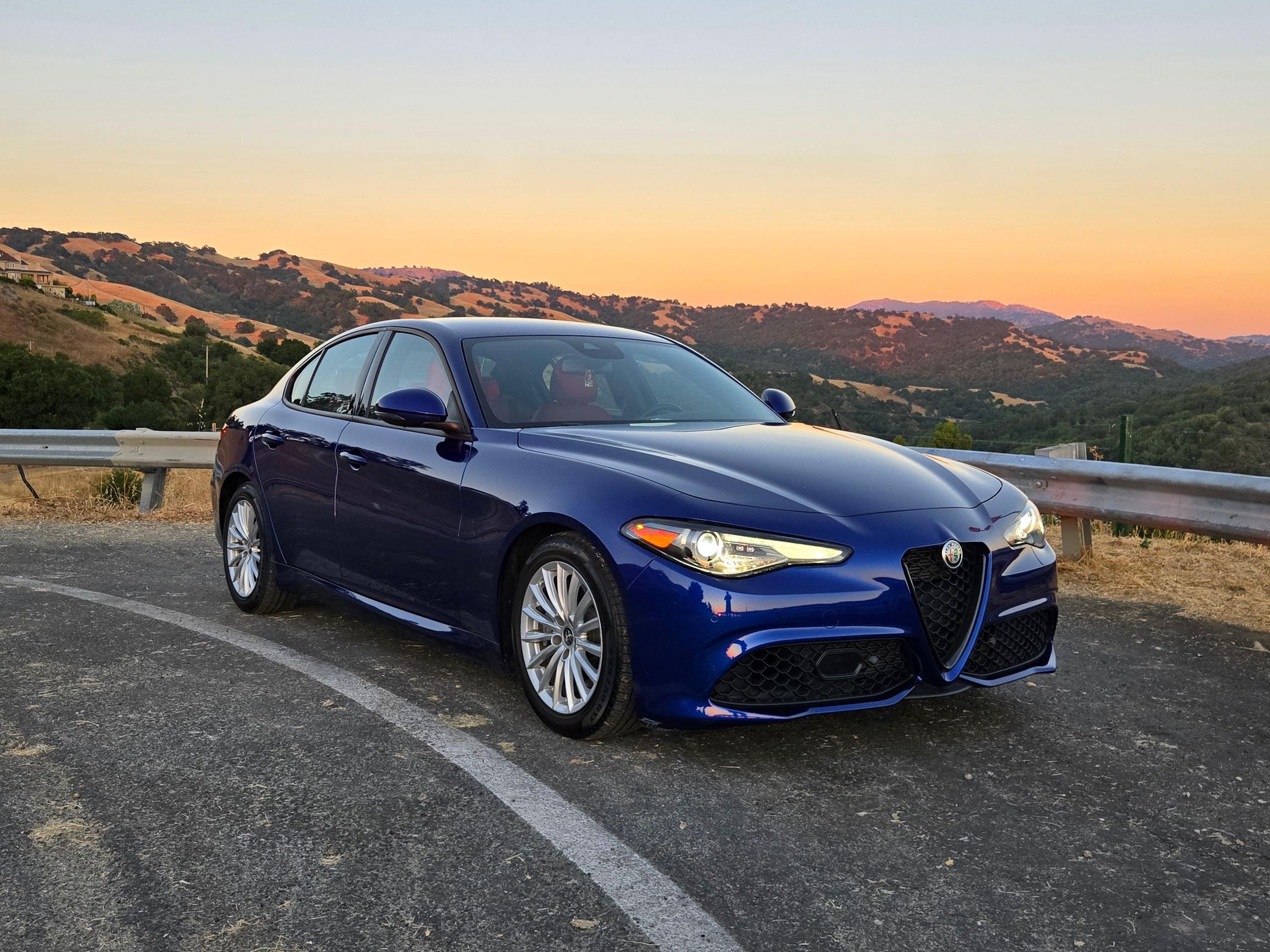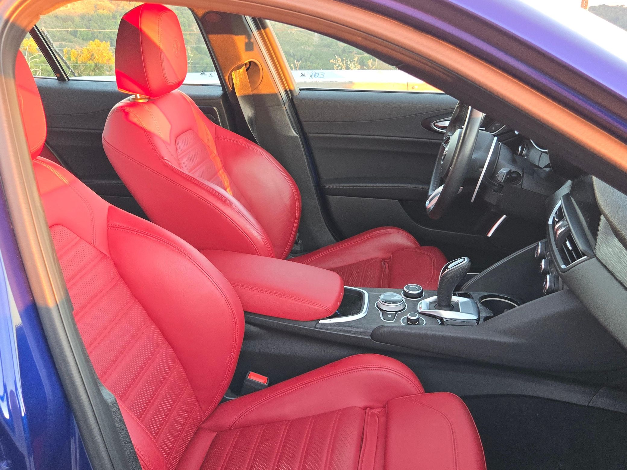 The Alfa Romeo Giulia Sport is a thrilling sports sedan that boasts 280 horsepower from its turbocharged 4-cylinder engine – and it touts a raucous exhaust note that sets it apart from its competitors in the segment. This particular Giulia Sprint features an attractive color combination – Anodized Blue Metallic over a red interior – and it includes some great factory equipment, including the Sprint RWD Package, sport suspension, and heated front and rear seats. Power comes from a 2.0-liter turbocharged 4-cylinder rated at 280 horsepower and 306 lb-ft of torque. Output is sent to the rear wheels via an 8-speed automatic transmission.