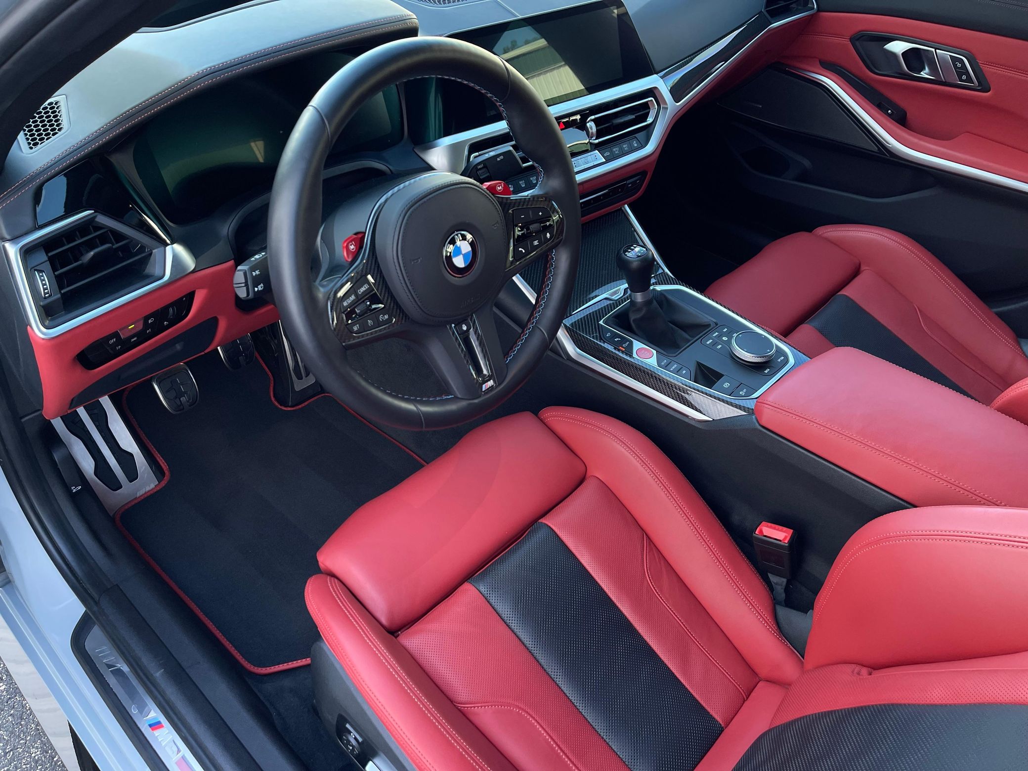 This particular M3 touts the desirable 6-speed manual transmission and a beautiful color combination. It also features some nice factory equipment like the Executive and Parking Assistance packages, heated and ventilated front seats, and carbon fiber interior trim – along with only minimal modifications. Power comes from a twin-turbocharged 3.0-liter inline-6, rated at 473 horsepower and 406 lb-ft of torque. Output is sent to the rear wheels via a 6-speed manual transmission.