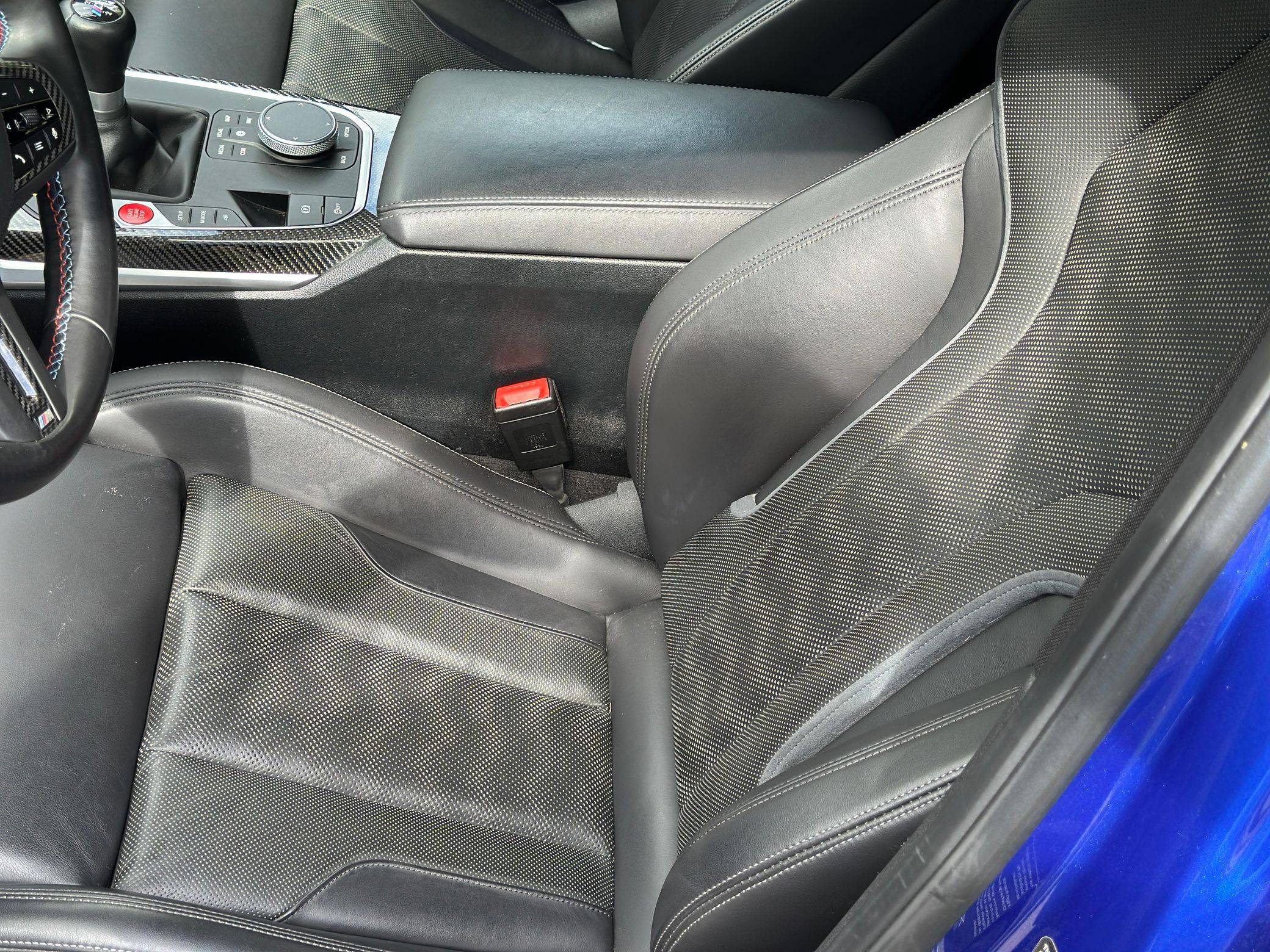 M3 boasts a 6-speed manual transmission and a gorgeous Portimao Blue Metallic exterior finish. This M3 also features some nice modifications like M Performance adjustable springs and Vorshlag adjustable camber plates Power comes from a 3.0-liter twin-turbocharged inline-6, rated 473 horsepower and 406 lb-ft of torque. Output is sent to the rear wheels via a 6-speed manual transmission.