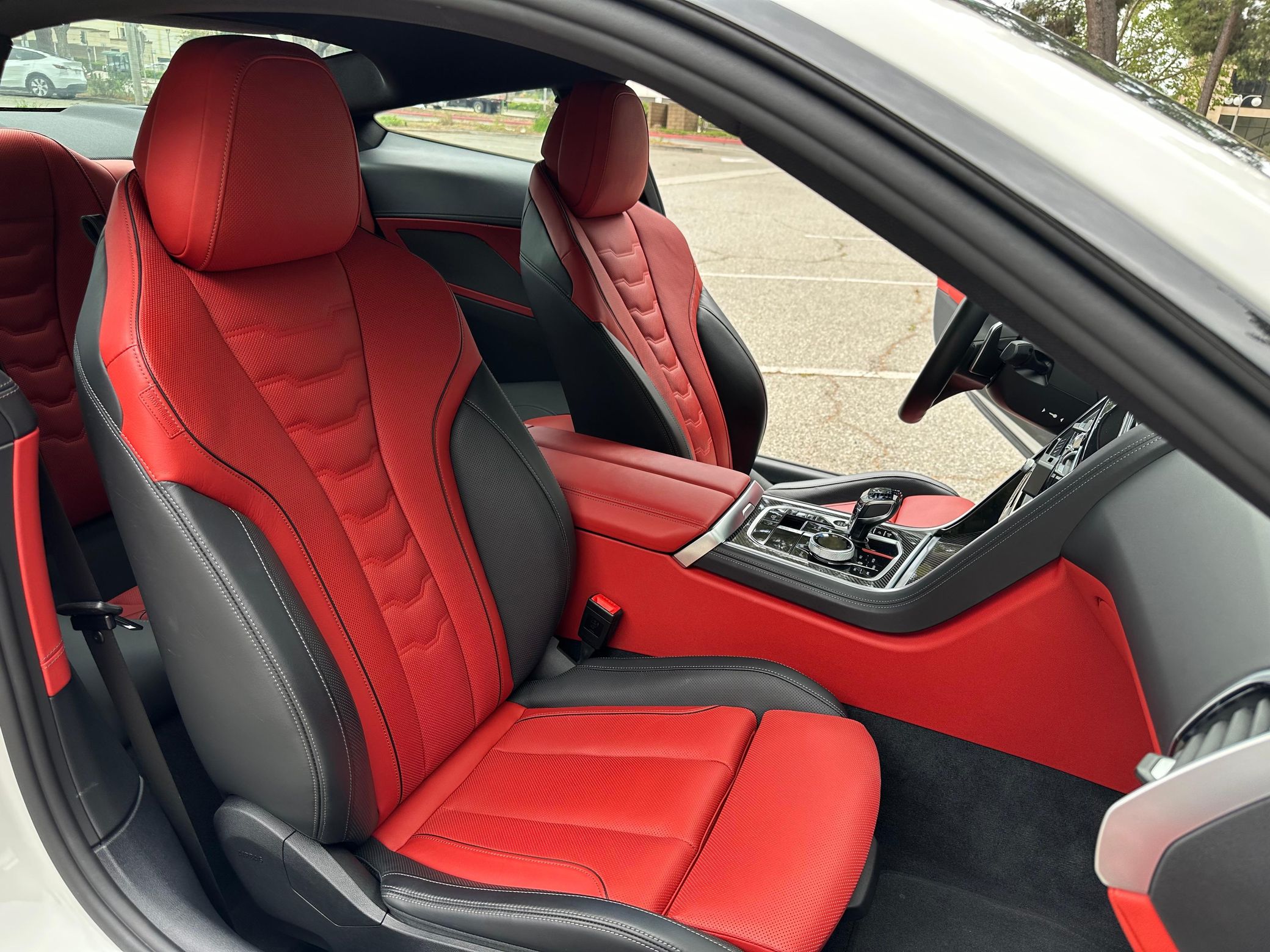 The BMW M850i is a thrilling coupe, boasting gorgeous styling and truly exceptional performance, thanks to a twin-turbocharged V8 with 523 horsepower combined with BMW's xDrive all-wheel drive system. This particular M850i features a gorgeous Individual Fiona Red and black extended leather interior – and it's well-equipped with the Heat Comfort and Connected packages, 20-inch Style 728M wheels, and a Harman/Kardon surround sound system.