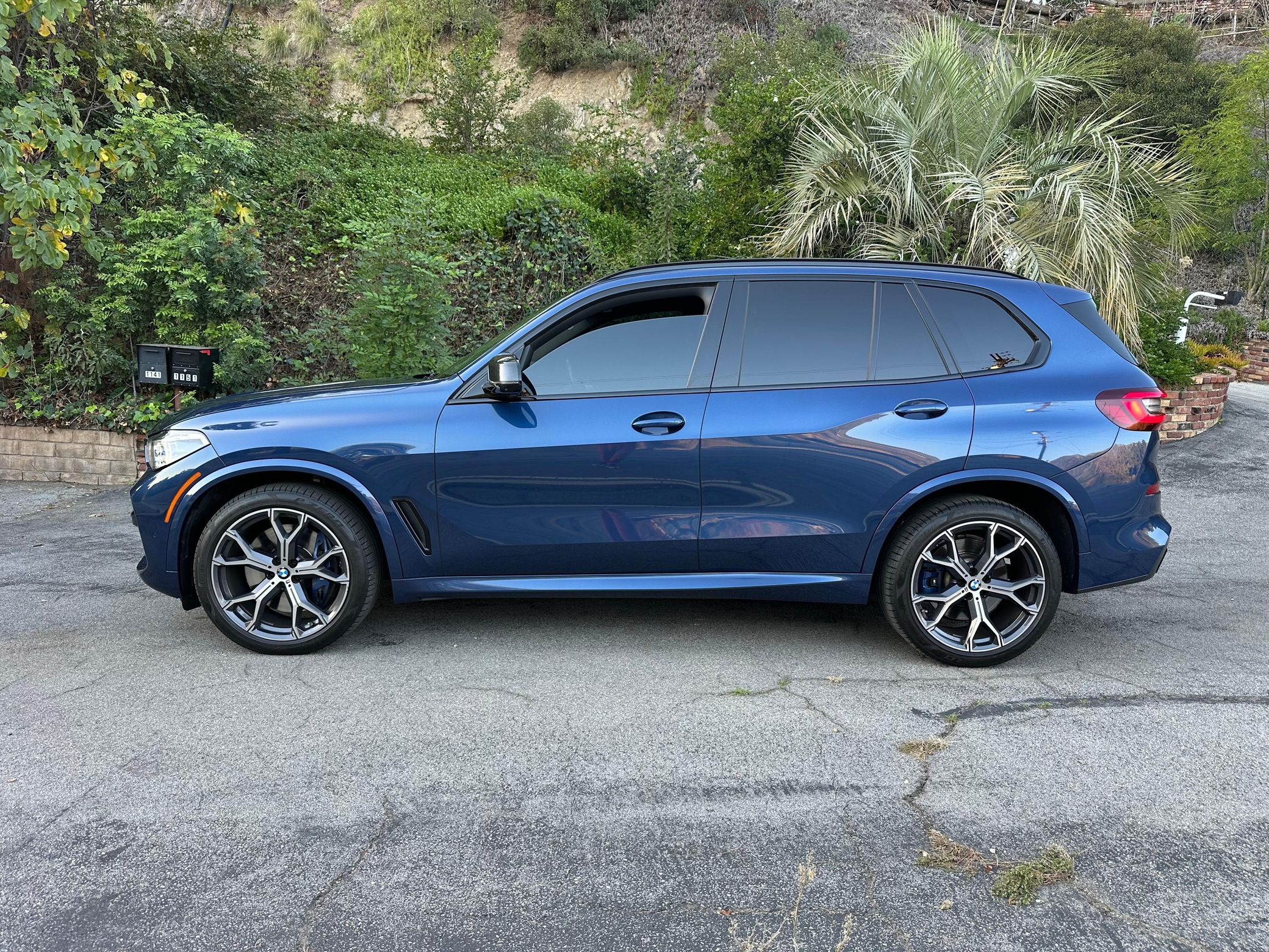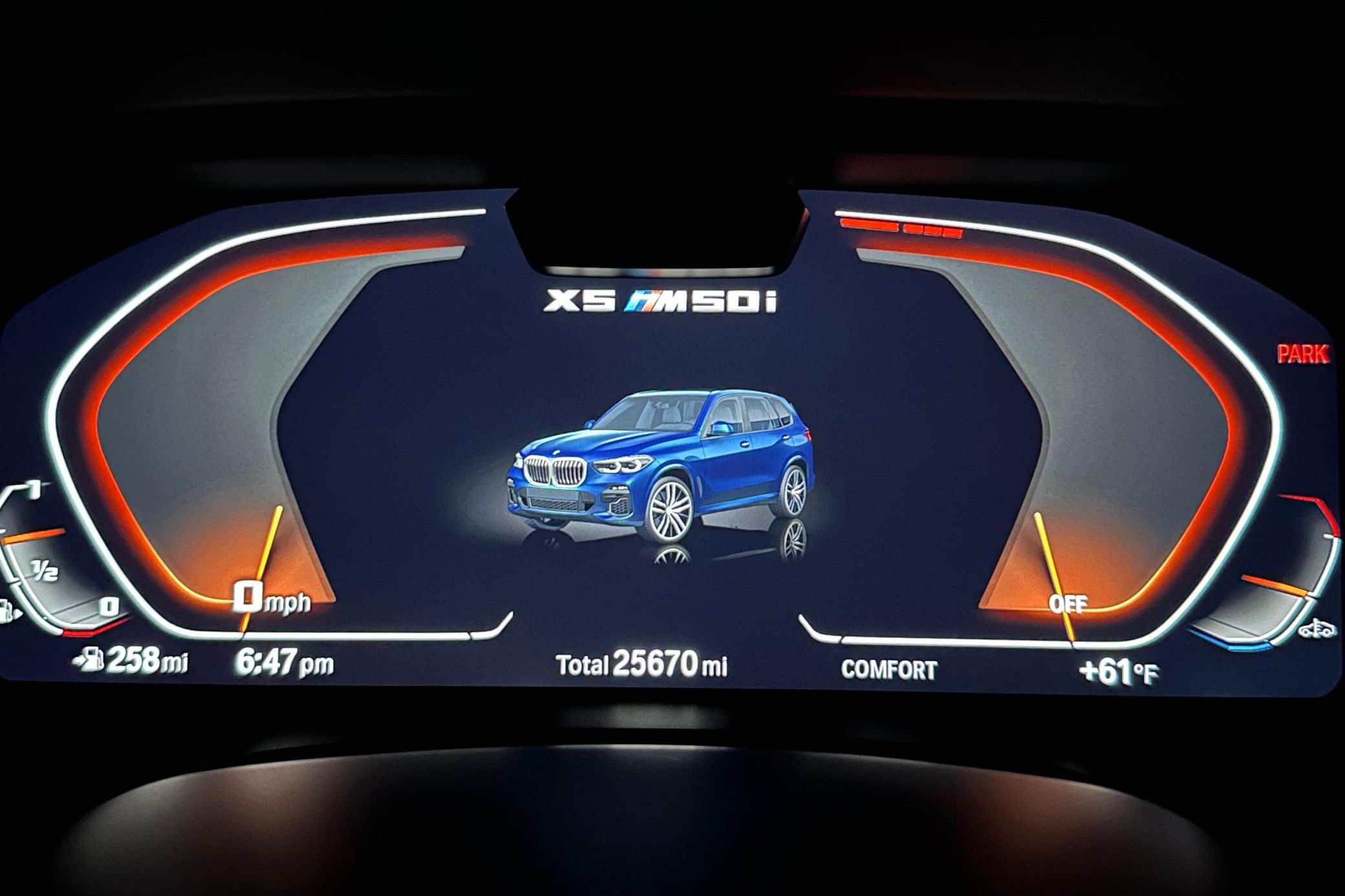 The G05 BMW X5 is an excellent luxury SUV that boasts a well-appointed interior and a sporty driving character. This particular X5 M50i touts over 500 horsepower from its twin-turbocharged V8 and a handsome Phytonic Blue Metallic over Coffee color combination. It also features some great factory equipment, including the Executive, Driver's Assistance Pro, and Parking Assistance packages – along with no major modifications. Power comes from a 4.4-liter twin-turbocharged V8, rated at 523 horsepower and 553 lb-ft of torque. Called N63 internally, it spins all four wheels via an 8-speed automatic transmission.
