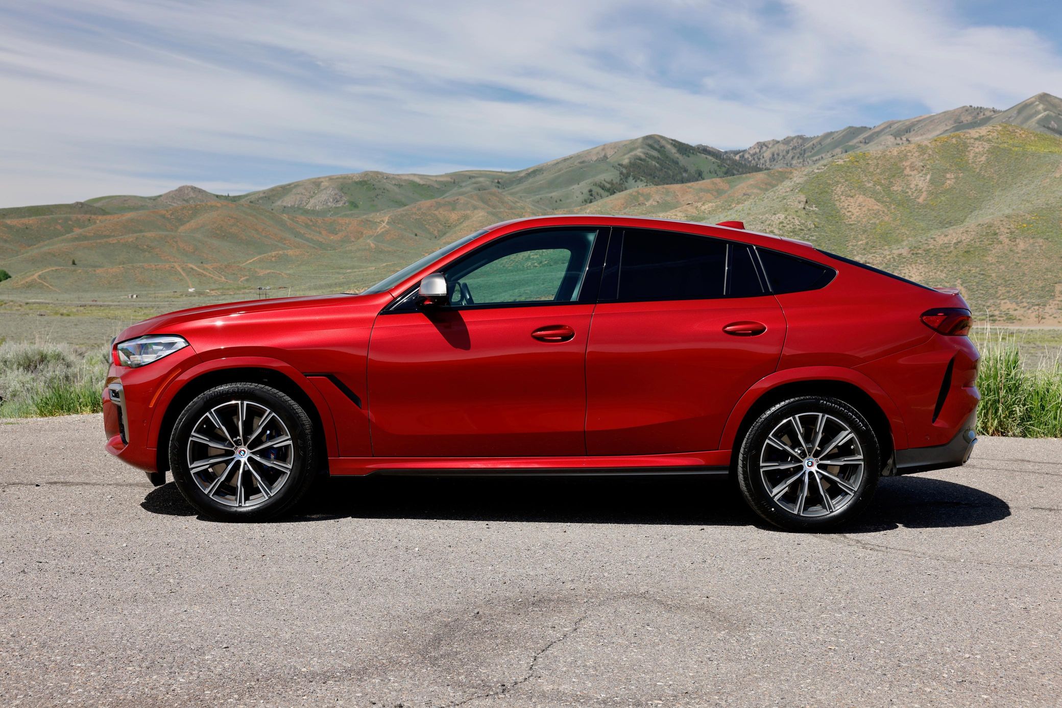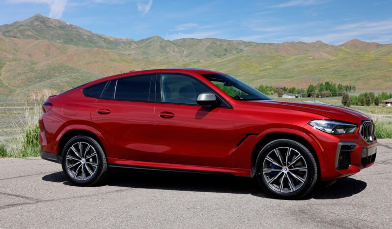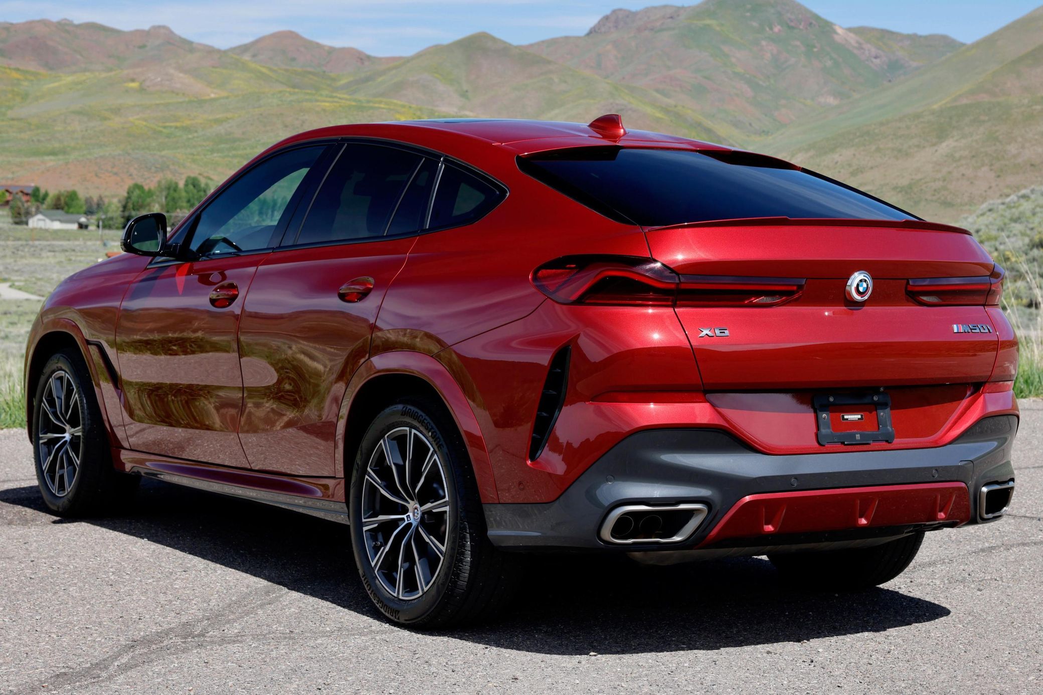 he BMW X6 is a nice sporty SUV that boasts coupe-like styling and luxurious amenities. This M50i xDrive is powered by a burly 523-horsepower twin-turbo V8 – and it's finished in eye-catching Flamenco Red Metallic. It's also well-equipped with the Parking Assistance and Driver's Assistance Pro packages, massaging front seats, a Harman Kardon sound system, and more. Power comes from a 4.4-liter twin-turbocharged V8, rated at 523 horsepower and 553 lb-ft of torque. Output is sent to all four wheels via an 8-speed automatic transmission.
