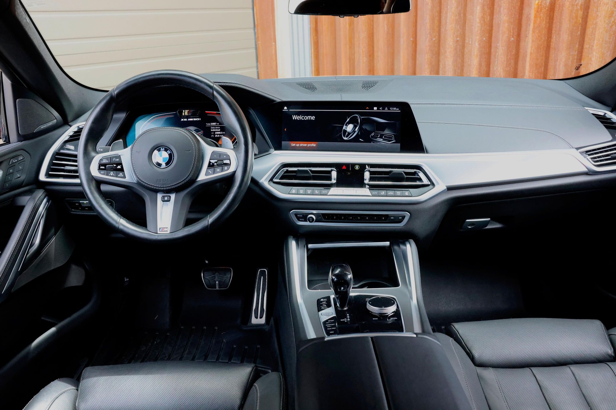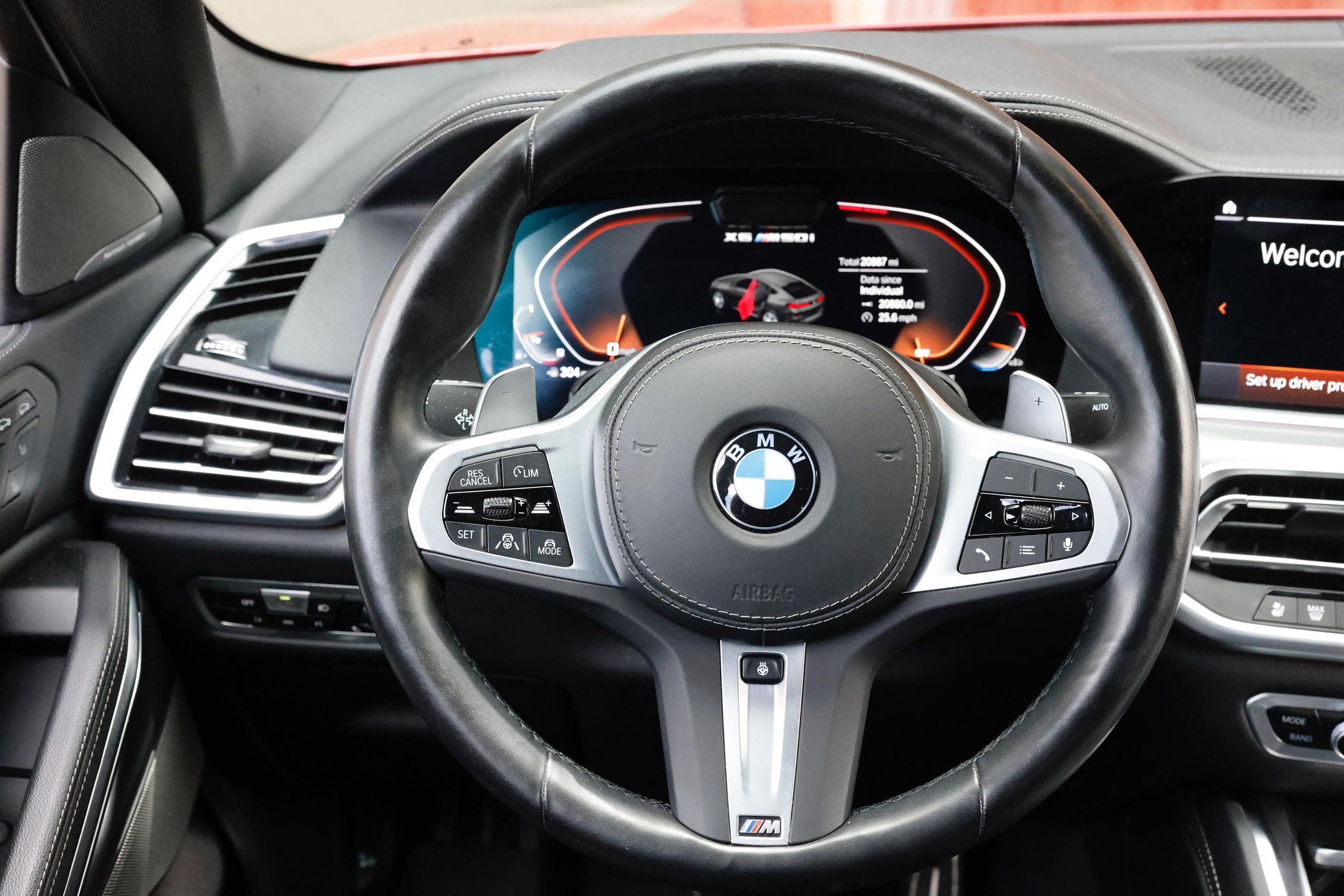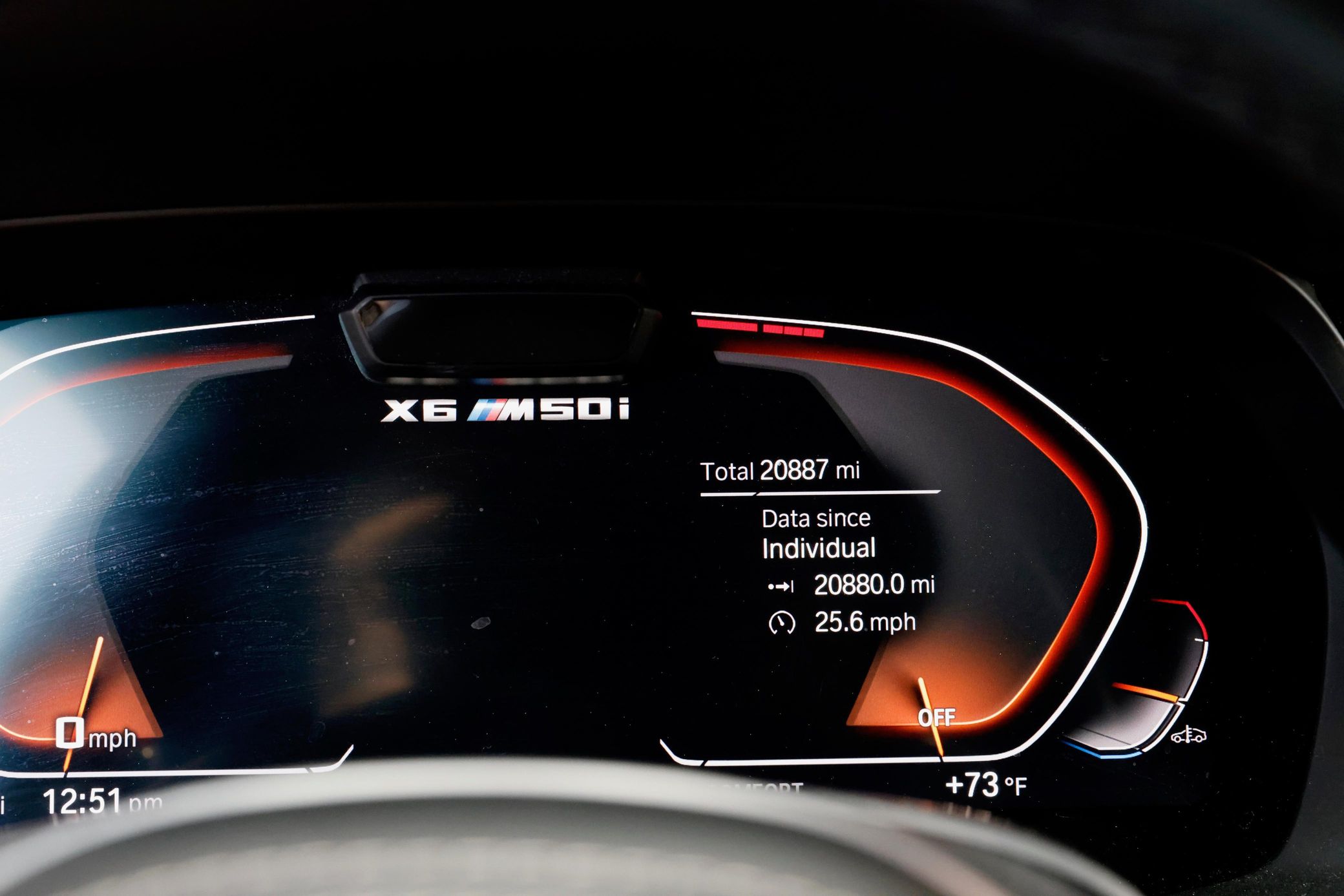 he BMW X6 is a nice sporty SUV that boasts coupe-like styling and luxurious amenities. This M50i xDrive is powered by a burly 523-horsepower twin-turbo V8 – and it's finished in eye-catching Flamenco Red Metallic. It's also well-equipped with the Parking Assistance and Driver's Assistance Pro packages, massaging front seats, a Harman Kardon sound system, and more. Power comes from a 4.4-liter twin-turbocharged V8, rated at 523 horsepower and 553 lb-ft of torque. Output is sent to all four wheels via an 8-speed automatic transmission.