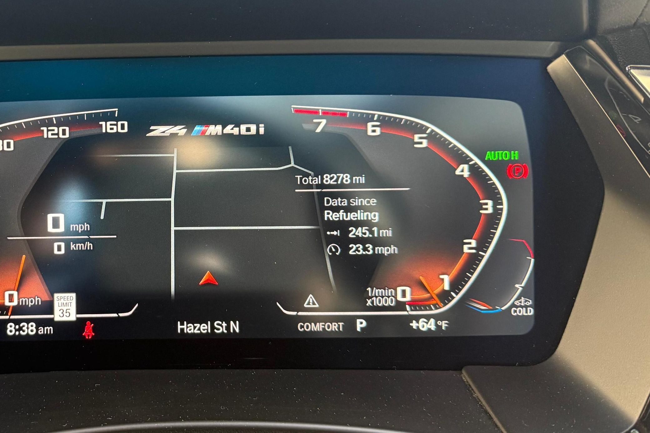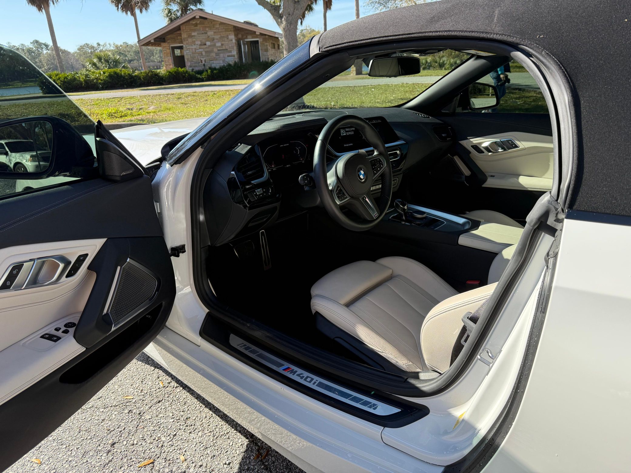 M40i version is particularly potent, thanks to its 3.0-liter turbocharged 6-cylinder engine with a muscular 382 horsepower. This particular Z4 is finished in an attractive color combination, and it's well-equipped with the Connected Package Pro, 19-inch Style 799M wheels, a power soft top, and heated M Sport seats