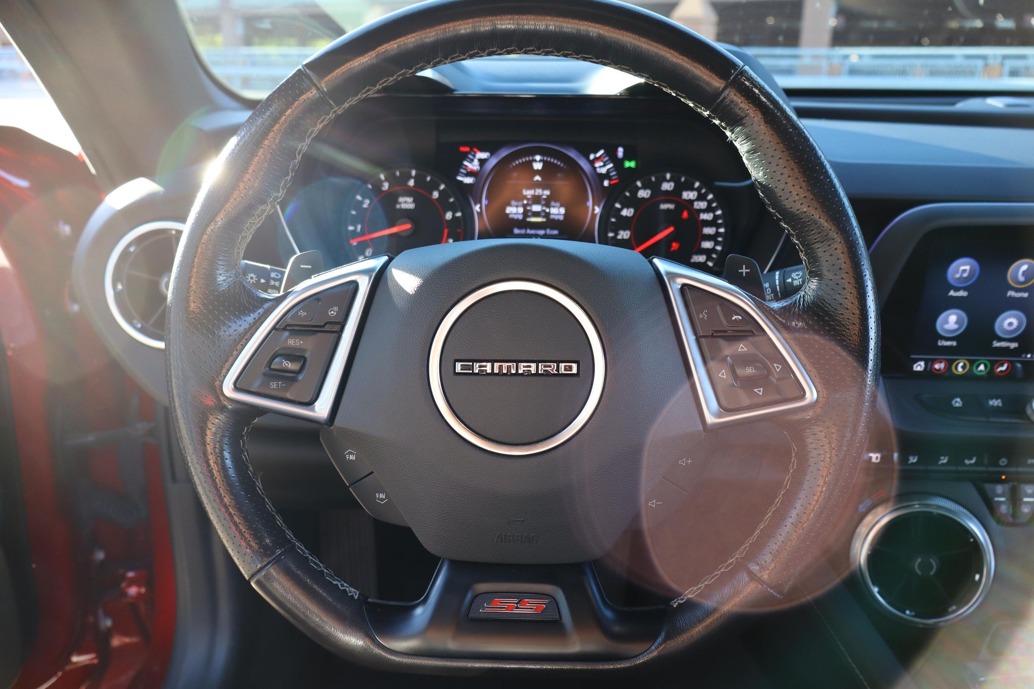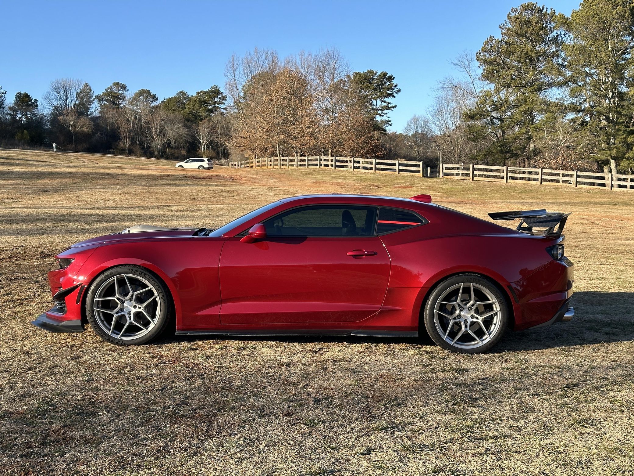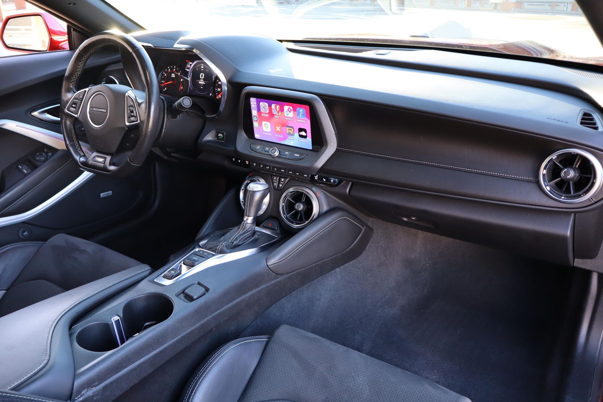 This particular example is a 2SS Coupe finished in head-turning Wild Cherry Tintcoat, and it features several cool upgrades including 20-inch Rohana wheels, a Holley Hi-Ram intake manifold, Texas Speed long-tube headers, ZL1 canards, splitter, side skirts, and rear spoiler, and Recaro front seats. Power comes from a 6.2-liter LT1 V8, which produces 455 horsepower and 455 lb-ft of torque in stock form; due to its modifications, this example likely produces higher figures, though a dyno sheet has not been provided for verification. Output is sent to the rear wheels via a 10-speed automatic transmission.