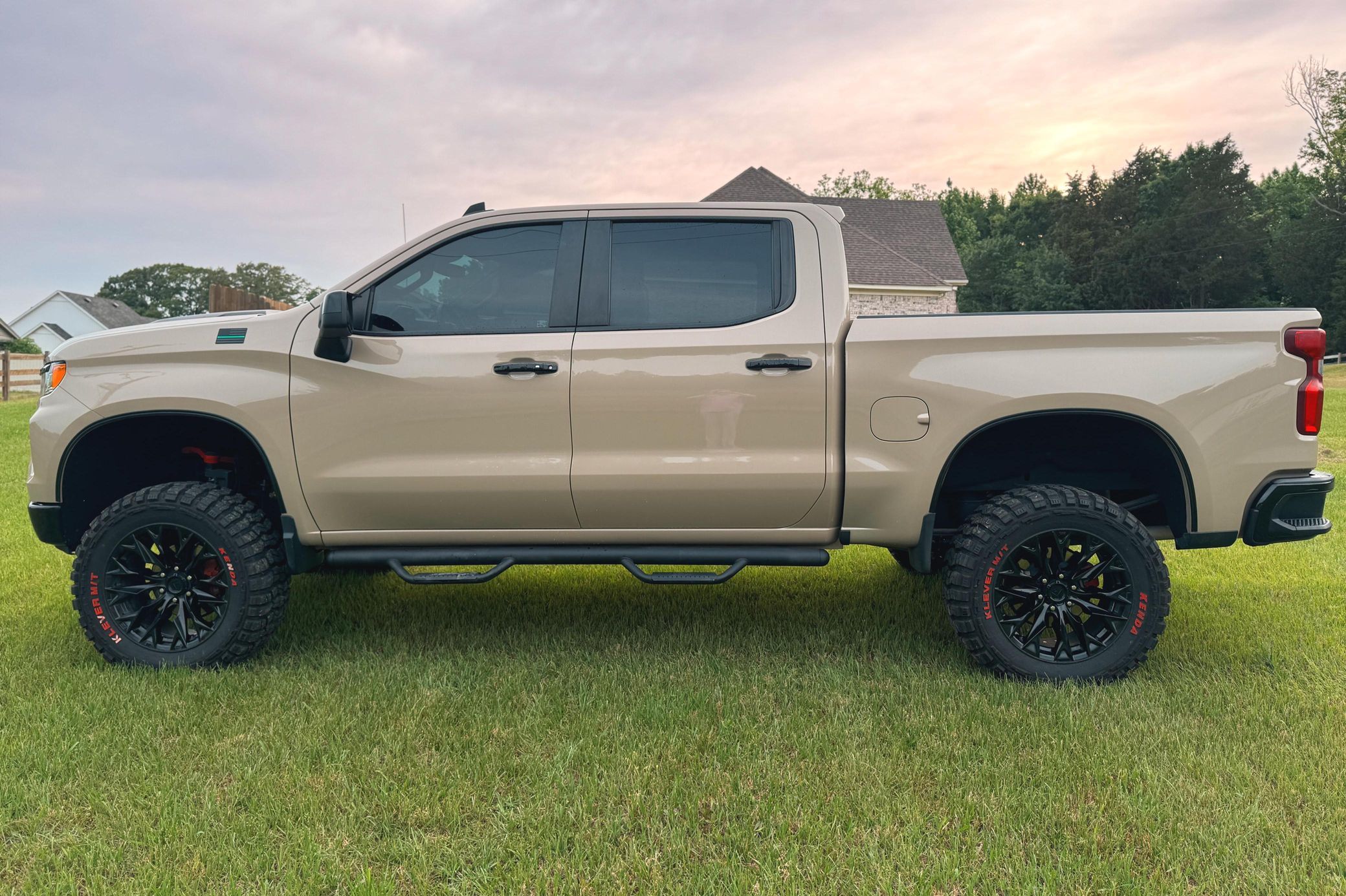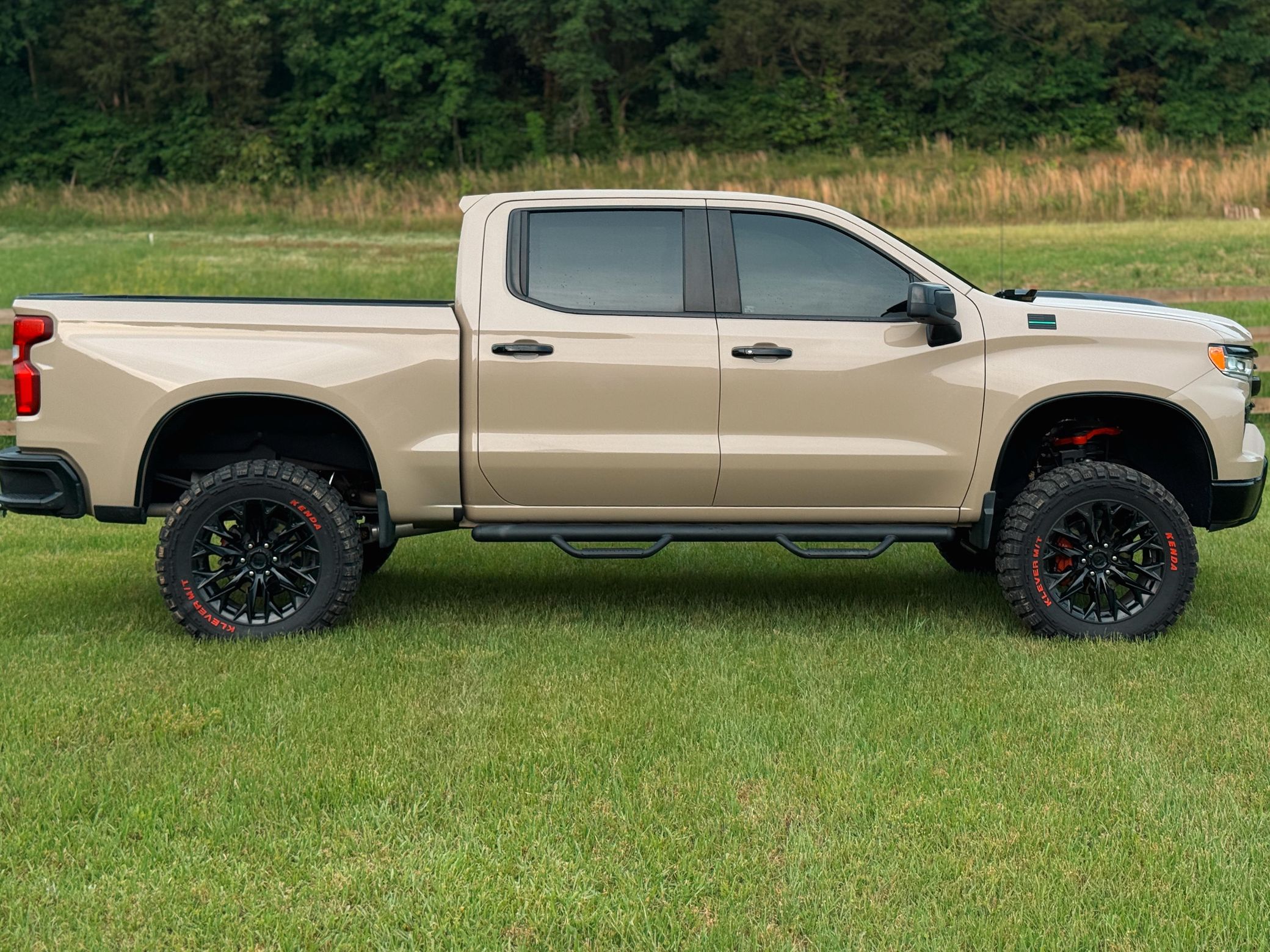 This particular Silverado 1500 Trail Boss is powered by a 5.3-liter V8 paired with 4-wheel drive, and it features some nice factory equipment – including an auto-locking rear differential, a trailer brake controller, and a heated steering wheel. It also benefits from a few tasteful modifications, like 20-inch Fuel Off-Road wheels, a Rough Country suspension lift kit, and Rough Country side steps.