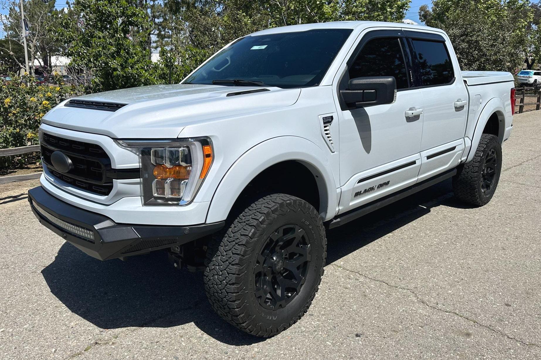 The Ford F-150 is an American truck icon, boasting fantastic capabilities, robust powertrains, and great durability. This particular F-150 XLT 4x4 touts a potent 5.0-liter V8 paired with 4-wheel drive, and it's been modified with the Tuscany Motor Company's Black Ops Package, which gives it an aggressive appearance and improved off-road capability compared to a stock truck. This F-150 also boasts some nice factory equipment including the FX4 Off-Road Package, Equipment Group 302A, and a Bang & Olufsen sound system. Plus, this F-150 shows relatively low mileage for its age Power comes from a 5.0-liter V8 engine, rated at 400 horsepower and 410 lb-ft of torque. Output is sent to the rear or all four wheels via a 10-speed automatic transmission and a 2-speed transfer case.