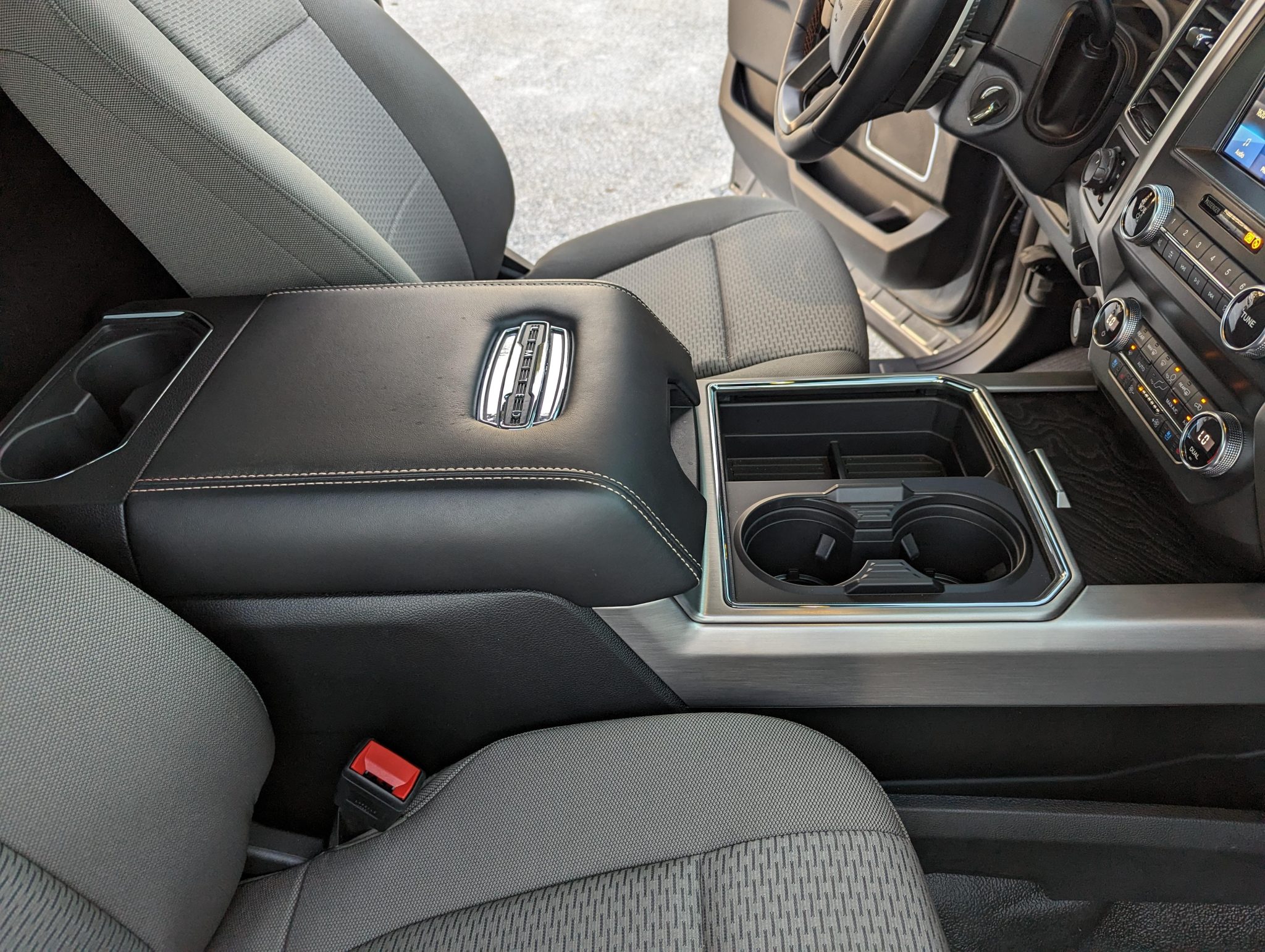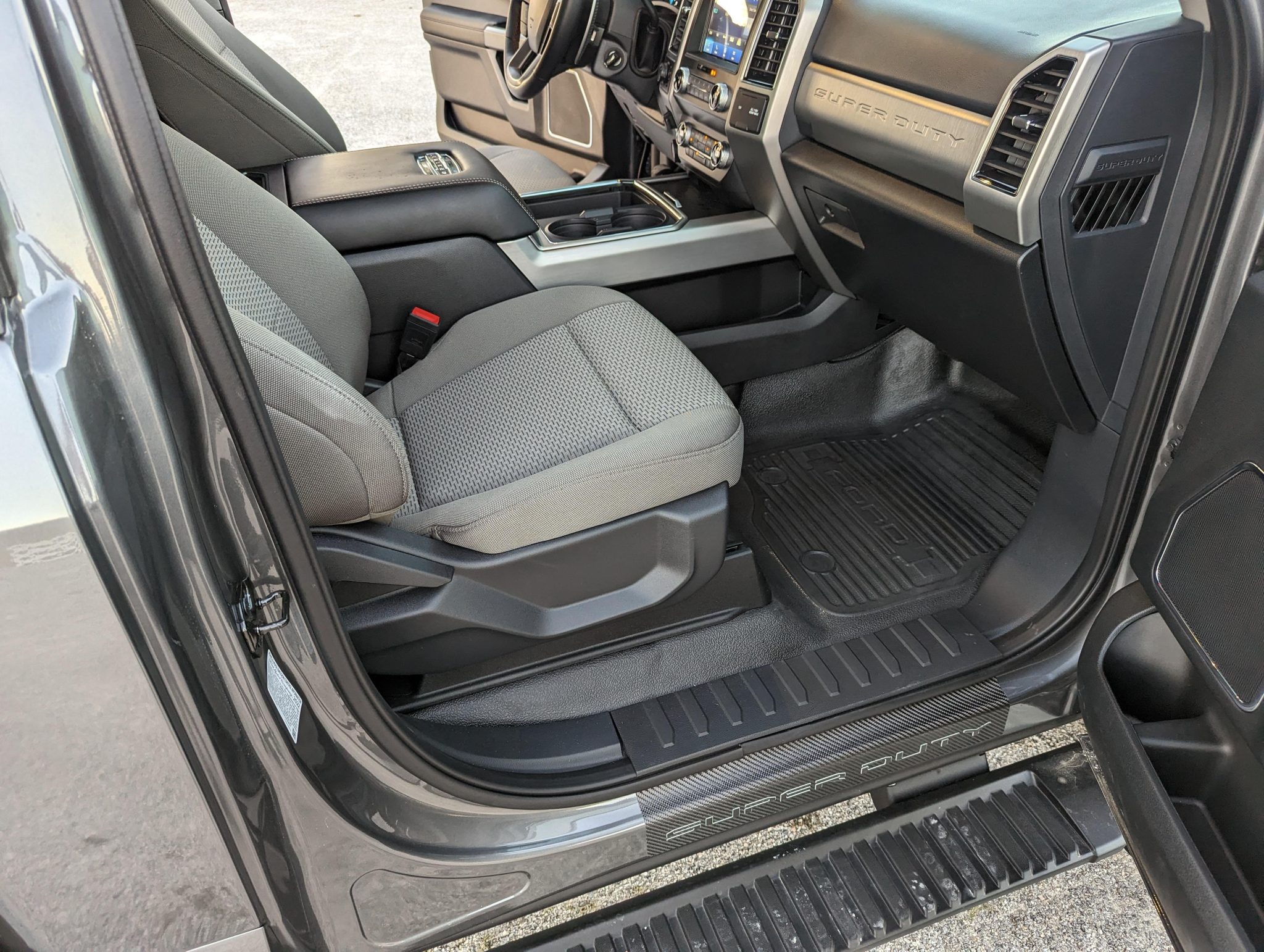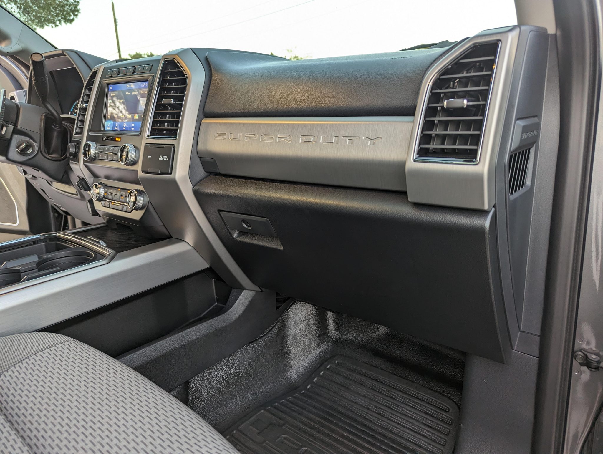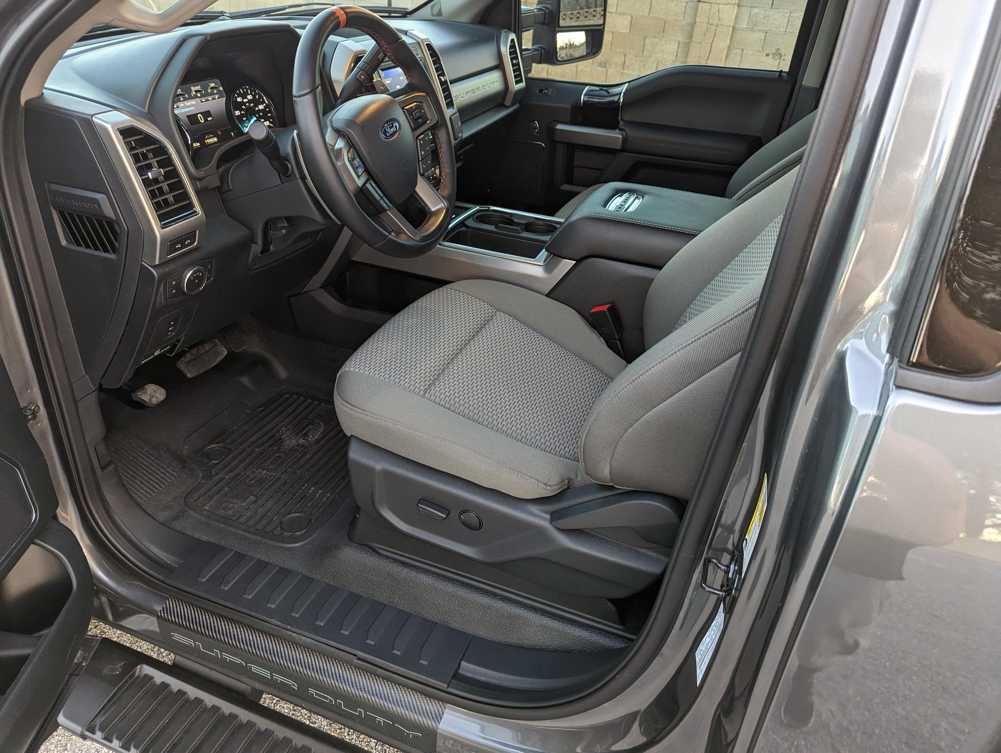 This 2022 Ford F-450 Super Duty is a 4×4 regular-cab dually pickup truck that was reportedly been modified with a 2.5″ Fox suspension lift, a Carli front torsion sway bar, a high-flow grille, Morimoto LED headlights, LED taillights, Rokblokz mudflaps, a Super Duty Platinum-sourced instrument cluster and interior components, and color-keyed bumpers, mirror caps, and door handles. Powered by a 6.7-liter turbodiesel V8 mated to a 10-speed automatic transmission and a dual-range transfer case, the truck is finished in Carbonized Gray over Medium Earth Gray cloth upholstery. Additional equipment includes a receiver hitch, a 360-degree camera system, rear parking sensors, running boards, polished 19.5″ wheels, and power-telescoping towing mirrors in addition to a power-adjustable driver seat, dual-zone automatic climate control, blind-spot monitoring, and SYNC3 infotainment with navigation.