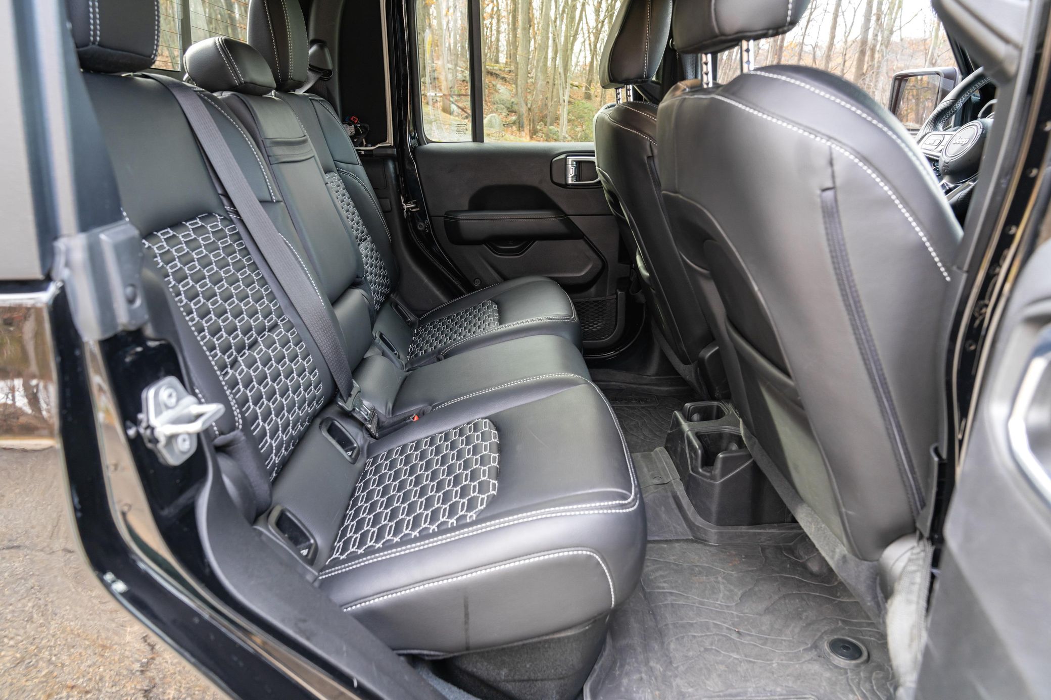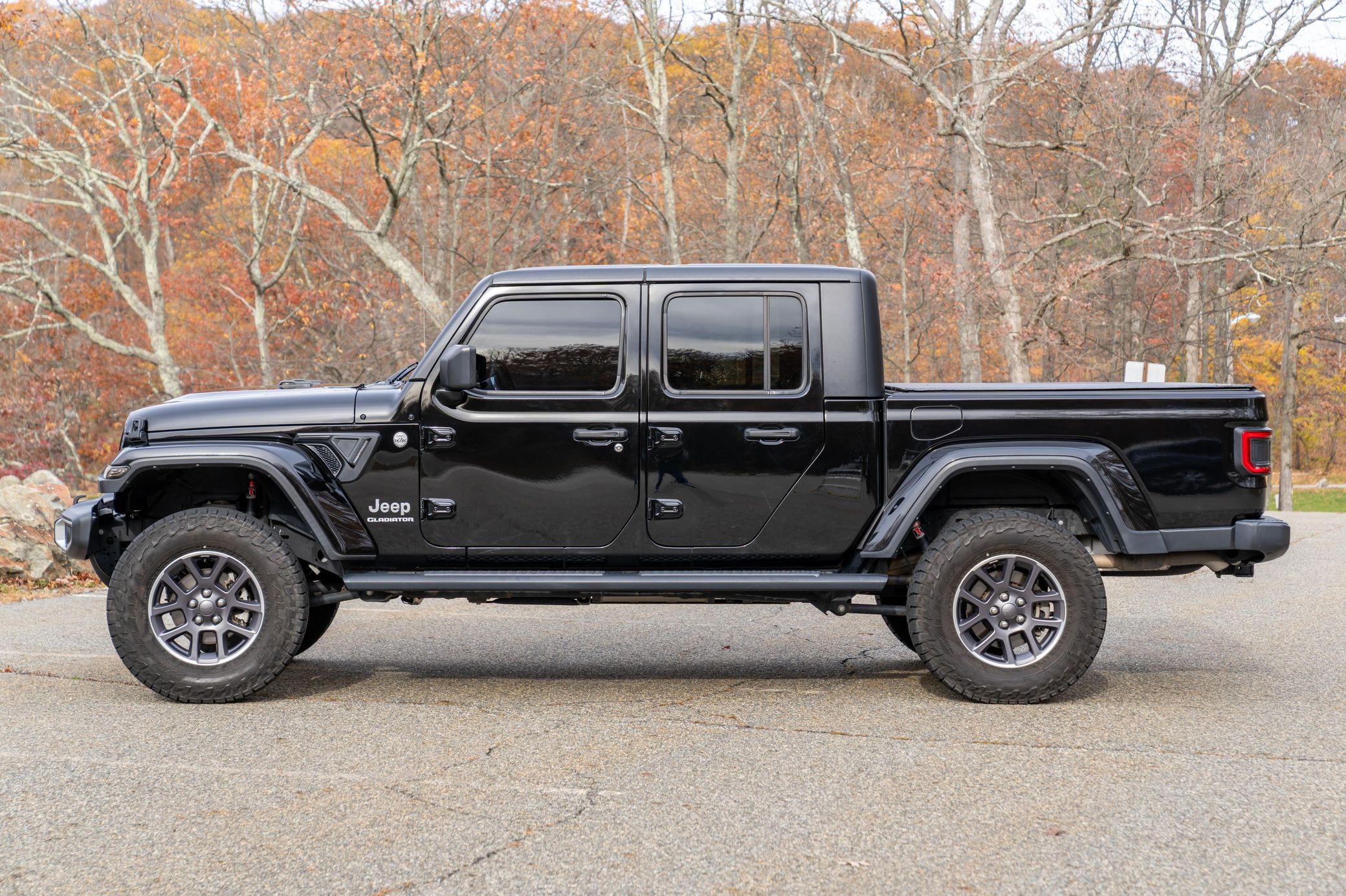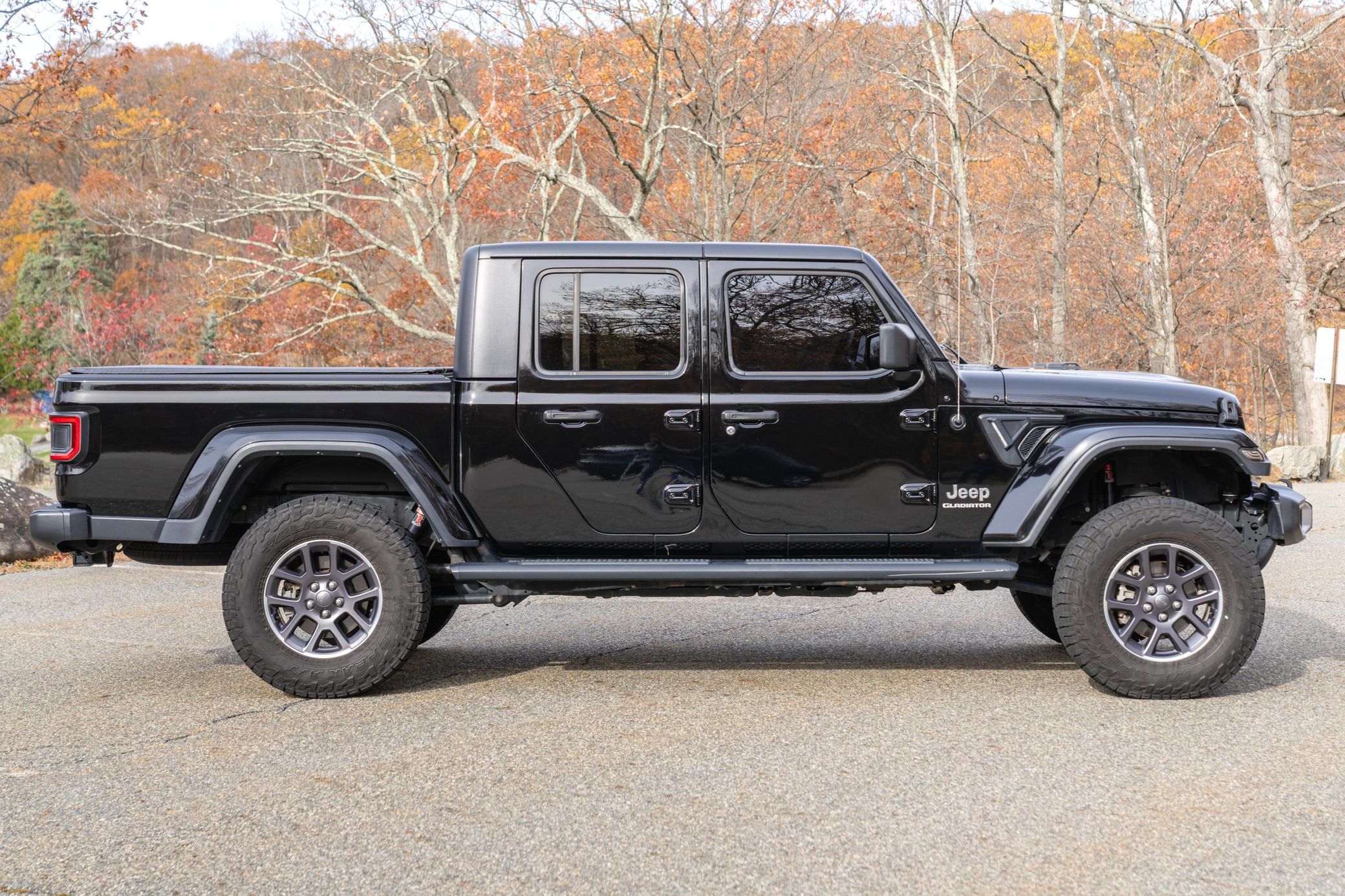 This particular Gladiator Overland model features some nice factory equipment including the Cold Weather Group, 18-inch wheels, and Dana front and rear axles. It also touts a number of cool upgrades like an AccuAir 4-inch dynamic lift kit, an aftermarket tonneau cover, and Katzkin leather upholstery. Power comes from a Pentastar 3.6-liter V6 engine, rated at 285 horsepower and 260 lb-ft of torque. Output is sent to the rear or all four wheels via an 8-speed automatic transmission. Popular Equipment Package (black Freedom Top 3-piece hard top, Trailer Tow Package, class IV receiver hitch, trailer-hitch zoom, and more)