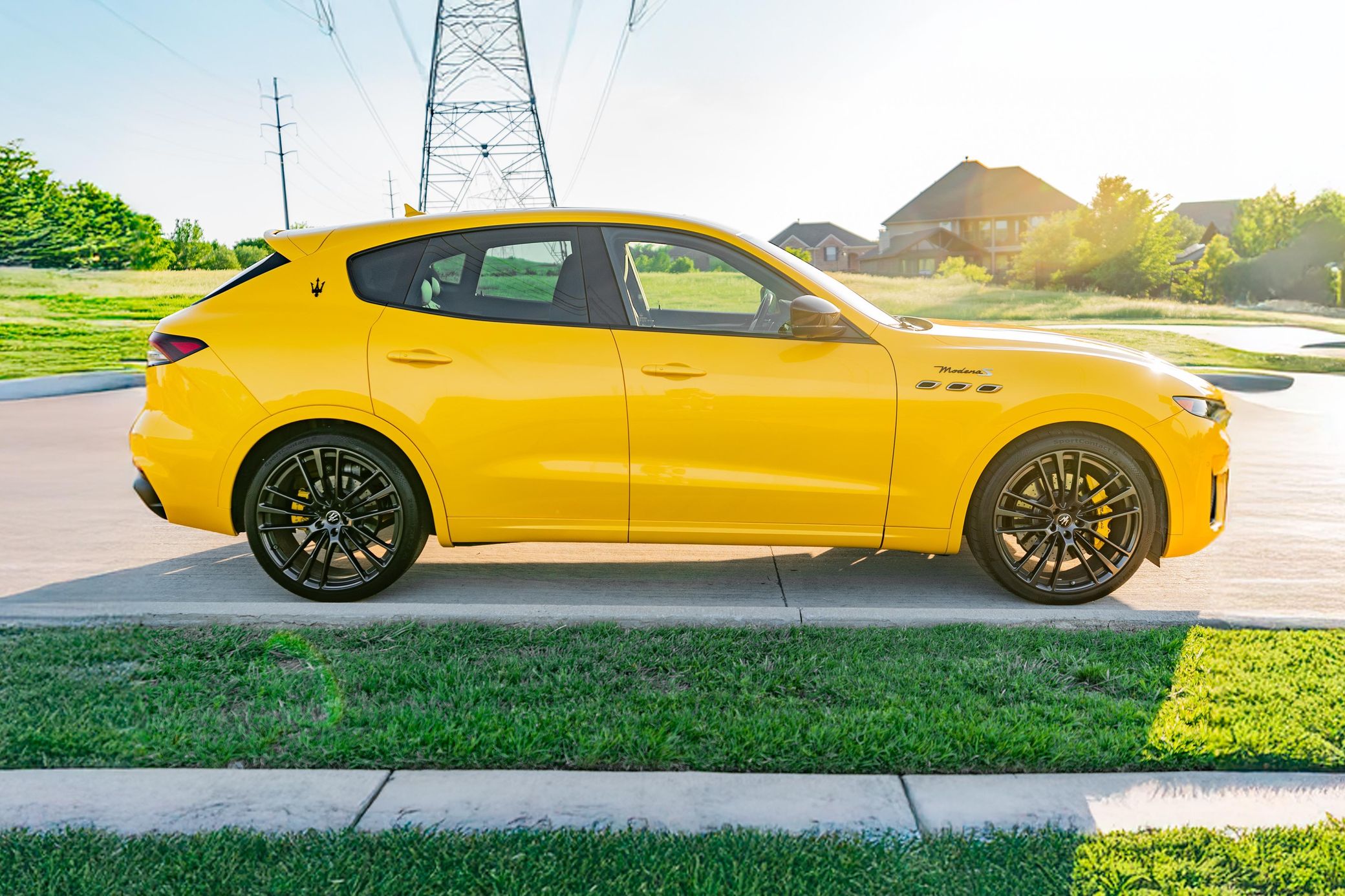 This particular Levante boasts a stunning Giallo Modenese exterior finish and some nice factory equipment – including the Comfort and Convenience Package, 22-inch Orione wheels, and carbon fiber interior trim. Power comes from a 3.8-liter twin-turbocharged V8, rated at 550 horsepower and 538 lb-ft of torque. It spins all four wheels via an 8-speed automatic transmission.