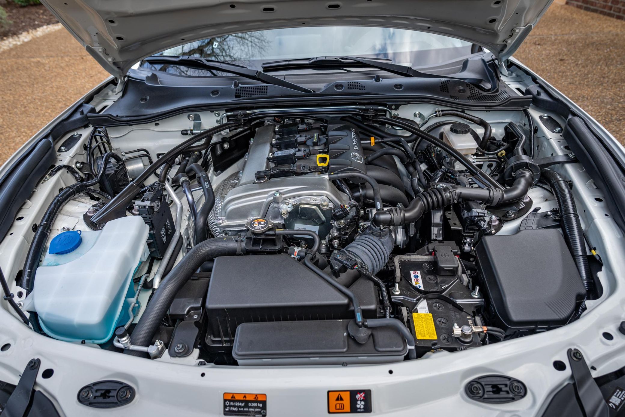 This Miata RF Club features a slick retractable hardtop and a 6-speed manual transmission – and it's finished in striking Snowflake White Pearl. It also boasts some desirable factory equipment including the Brembo/BBS/Recaro and Appearance packages, Bilstein shocks, a limited-slip differential, and a Bose sound system. Power comes from a 2.0-liter inline-4, rated at 181 horsepower and 151 lb-ft of torque. Output is sent to the rear wheels via a 6-speed manual transmission.