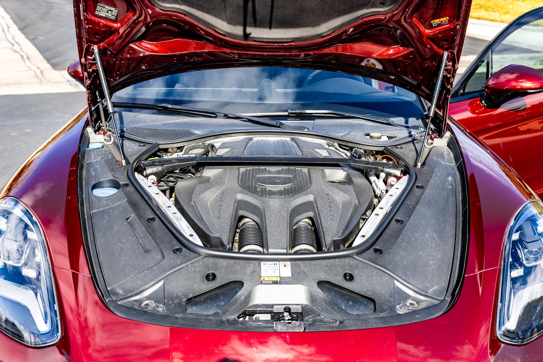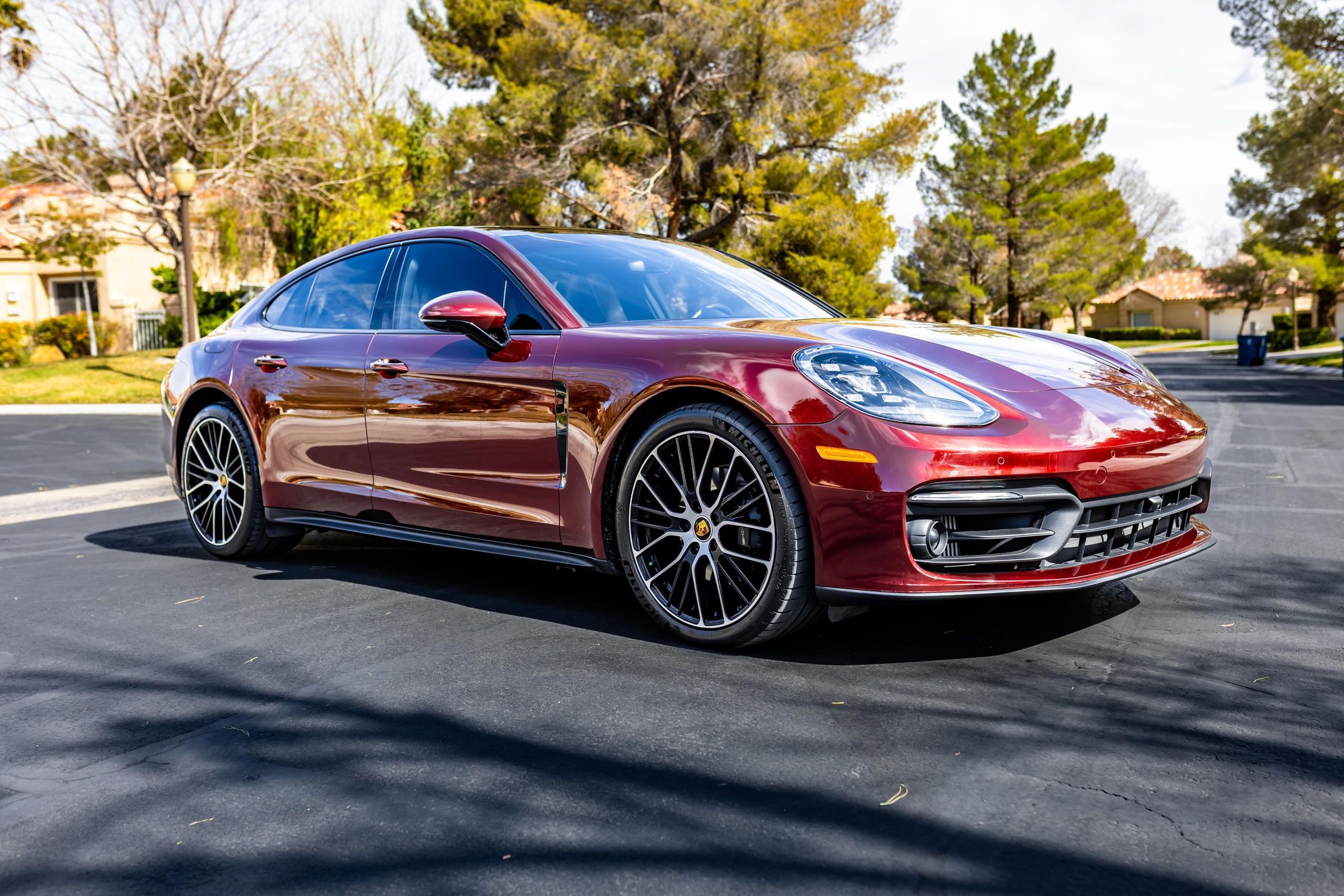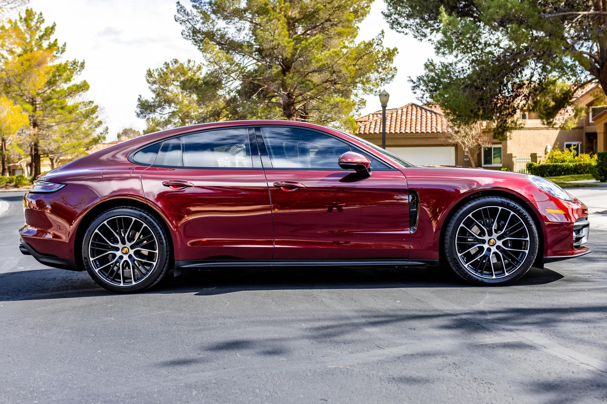 This particular Panamera is finished in stunning Cherry Metallic – and it's well-equipped with the Premium Package, 21-inch Exclusive Design Sport wheels, Power Steering Plus, Exclusive Design taillights, and adaptive cruise control. Power comes from a 2.9-liter twin-turbocharged V6, which produces 325 horsepower and 331 lb-ft of torque. Output is sent to the rear wheels via an 8-speed automatic transmission.