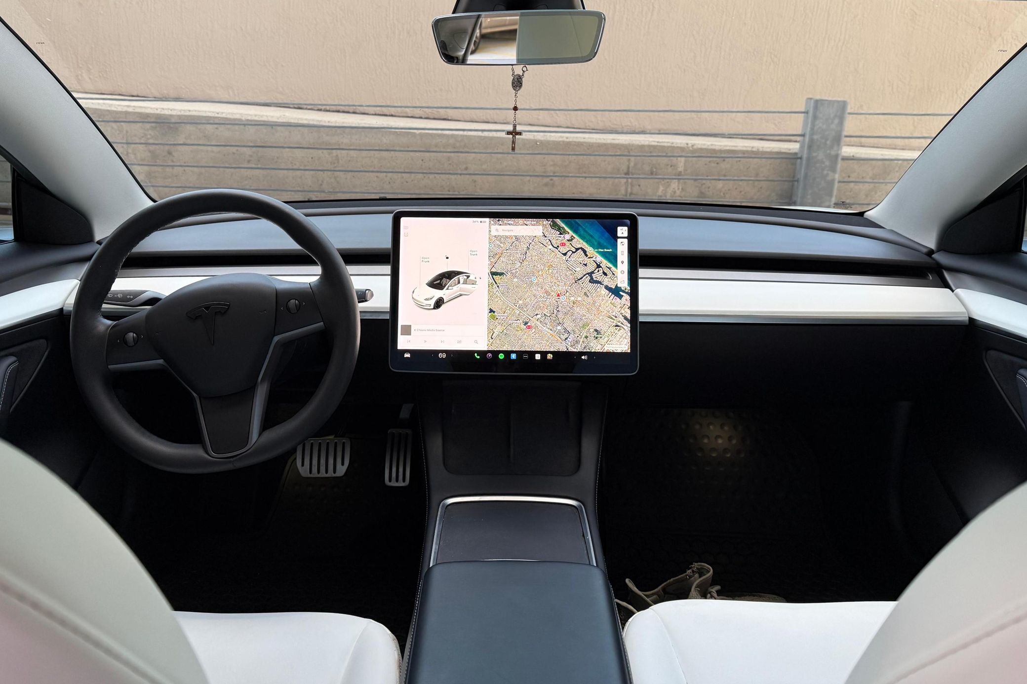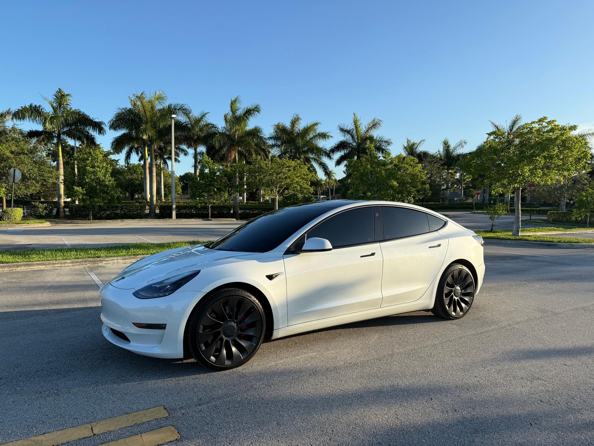 The Tesla Model 3 Performance boasts a very usable driving range, predictably thrilling EV acceleration, and a surprising amount of handling finesse. This particular example is finished in attractive Pearl White Multi-Coat, and it's well-equipped with the Premium Interior Package, the Cold Weather Feature, 20-inch Überturbine Wheels, and Tesla's Full Self-Driving. Power comes from a pair of electric motors that draw electricity from an 82-kilowatt-hour lithium-ion battery pack to drive the four wheels with approximately 470 horsepower, according to third-party estimates. This Model 3's maximum driving range was rated at 315 miles in 2021 by the EPA.
