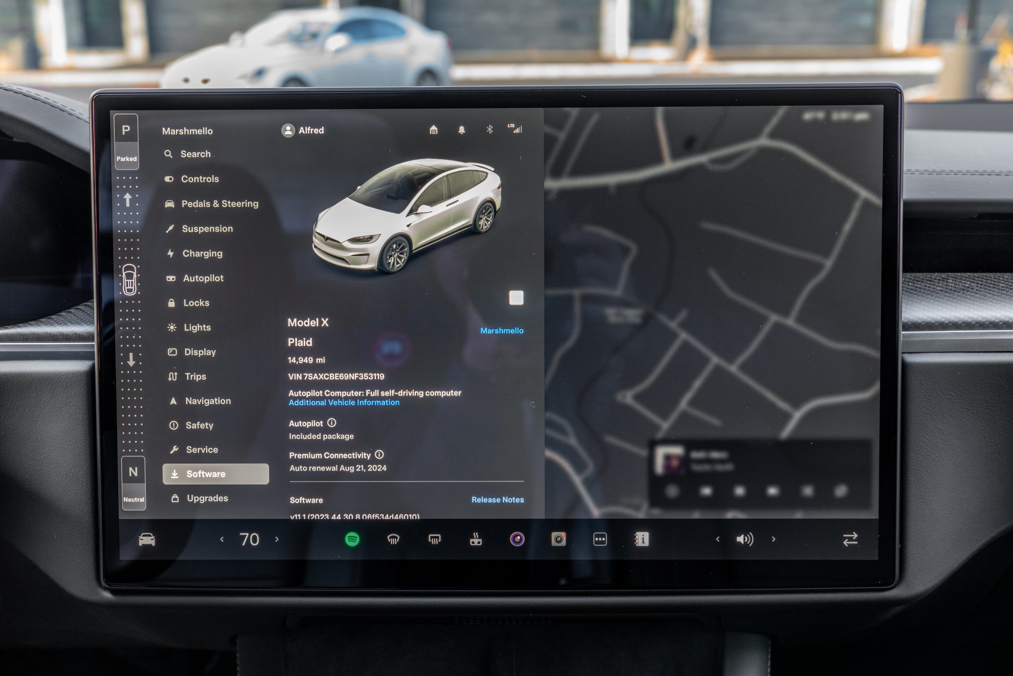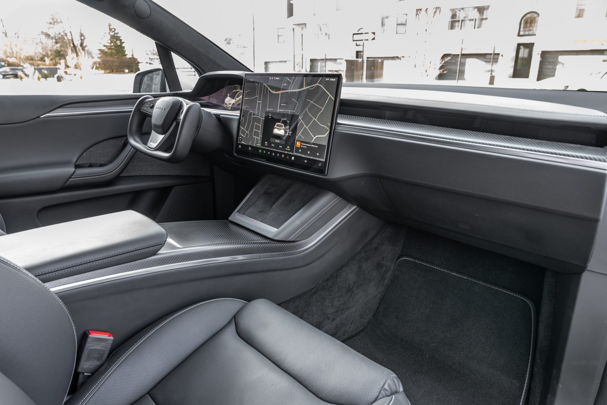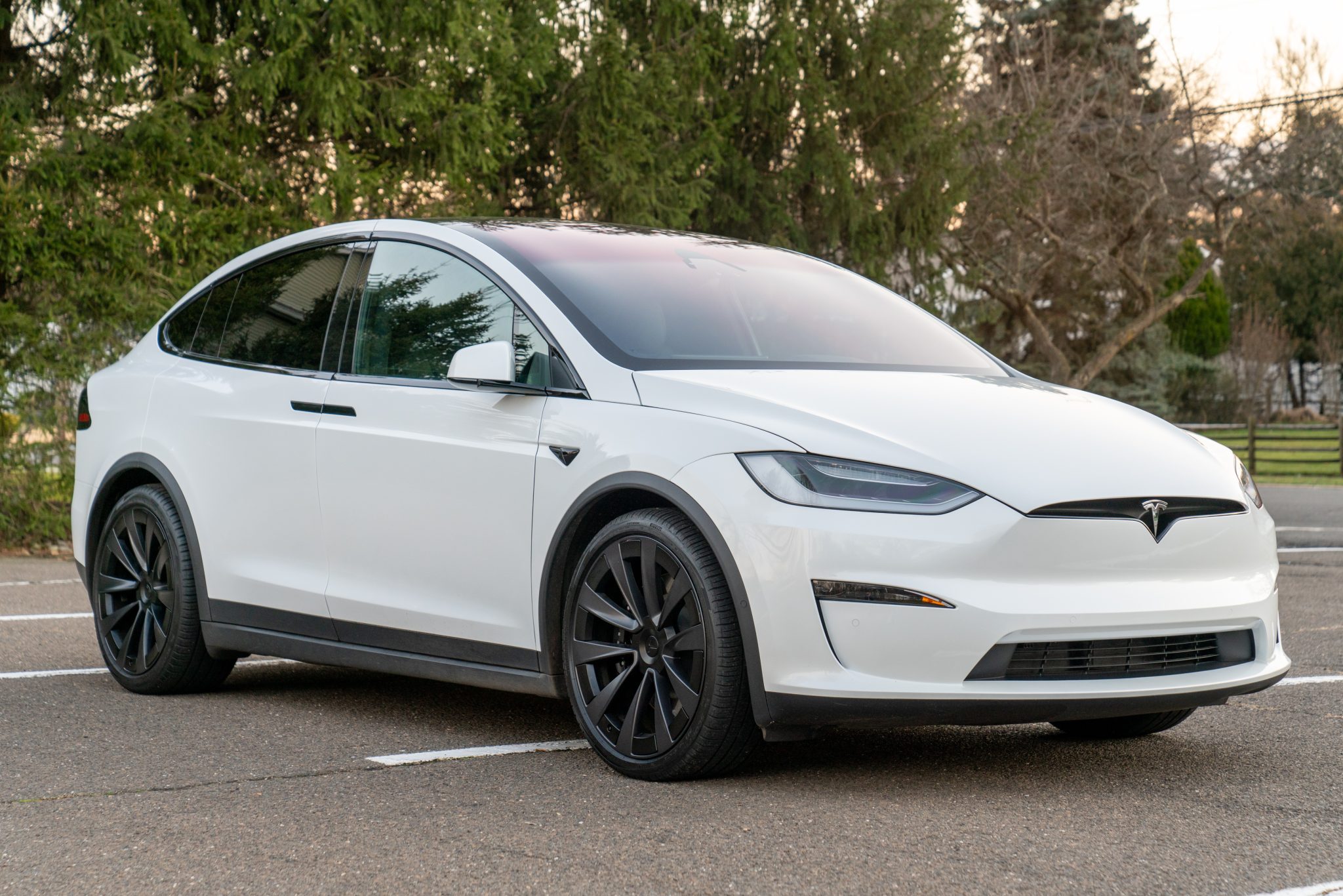 Finished in Pearl White Multi-Coat over a black leather interior with carbon-fiber accents, the truck was optioned with 22″ Turbine wheels, Autopilot, a six-passenger seat arrangement, and a yoke steering wheel. It is further equipped with LED lighting, “Falcon Wing” rear doors, regenerative braking, a 22-speaker sound system, tri-zone climate control, and heated and ventilated front seats. Now indicating 15k miles and 1020 horsepower.