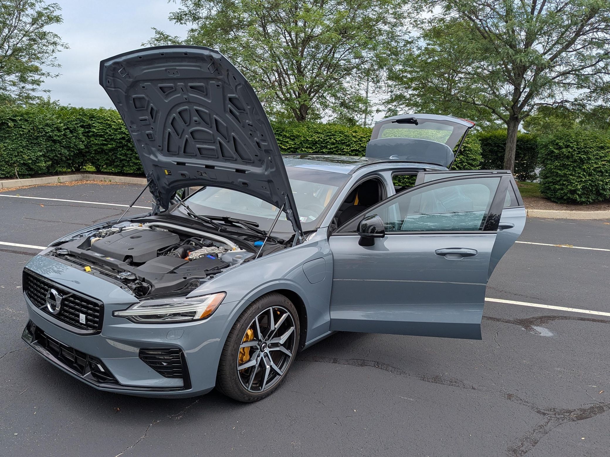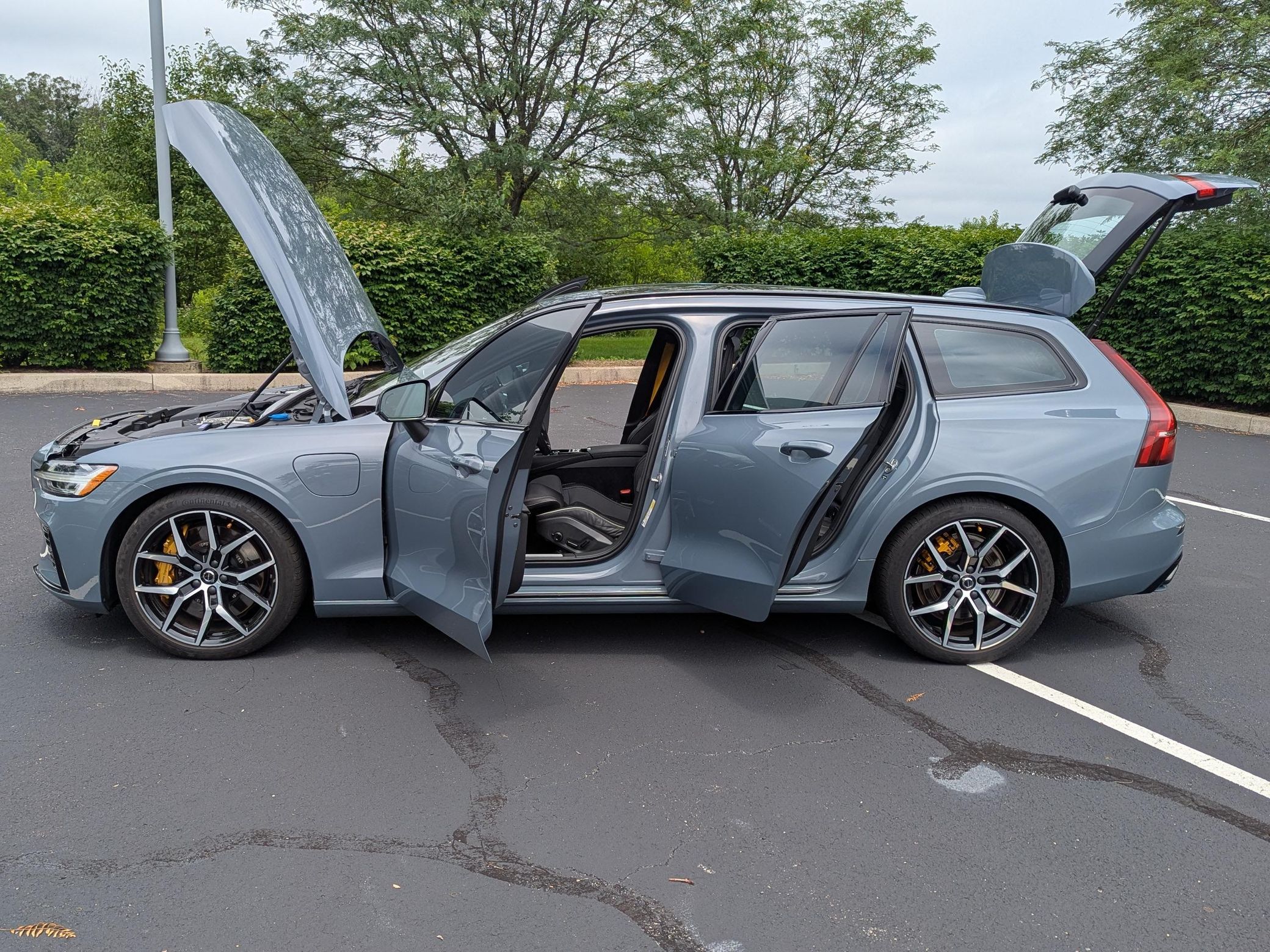 This particular V60 is a T8 Polestar Engineered Extended Range model that boasts a 40-mile electric-only driving range and a combined 455 horsepower from its plug-in hybrid powertrain. Plus, this V60 touts no major modifications Power comes from a gasoline-electric plug-in hybrid powertrain, which consists of a 2.0-liter turbocharged 4-cylinder engine, an electric motor, and an 18.8-kWh lithium-ion battery. The system is rated at a combined 455 horsepower and 523 lb-ft of torque. Output from the combustion engine is sent to the front wheels via an 8-speed automatic transmission, and the electric motor powers the rear wheels.