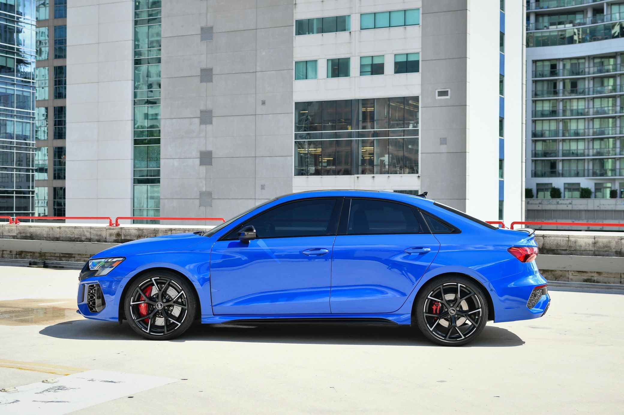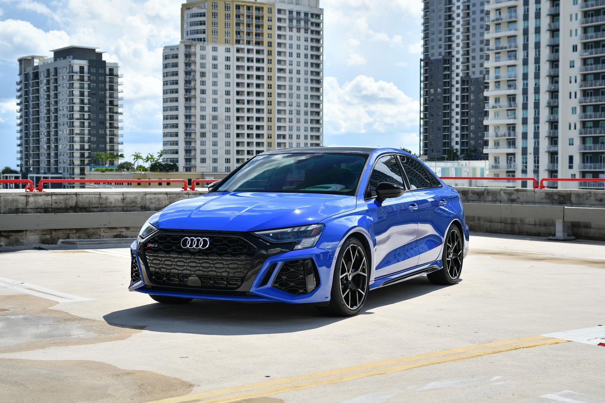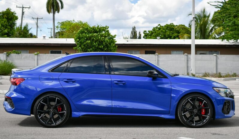 There's a LOT to like about the new Audi RS3, as it's an exciting sport sedan that touts a turbocharged 5-cylinder engine rated at a muscular 401 horsepower, a nice interior, and a cool torque vectoring system that provides for fantastic handling. This particular RS3 is finished in gorgeous Nogaro Blue Metallic, and it's well-equipped with the RS Technology Package, an RS Torque Splitter, and an RS sport exhaust system. It also has no major modifications, which is a great benefit. Power comes from a 2.5-liter turbocharged inline-5, rated at 401 horsepower and 369 lb-ft of torque. Output is sent to all four wheels via a 7-speed automatic transmission and Audi's Quattro permanent all-wheel drive system.