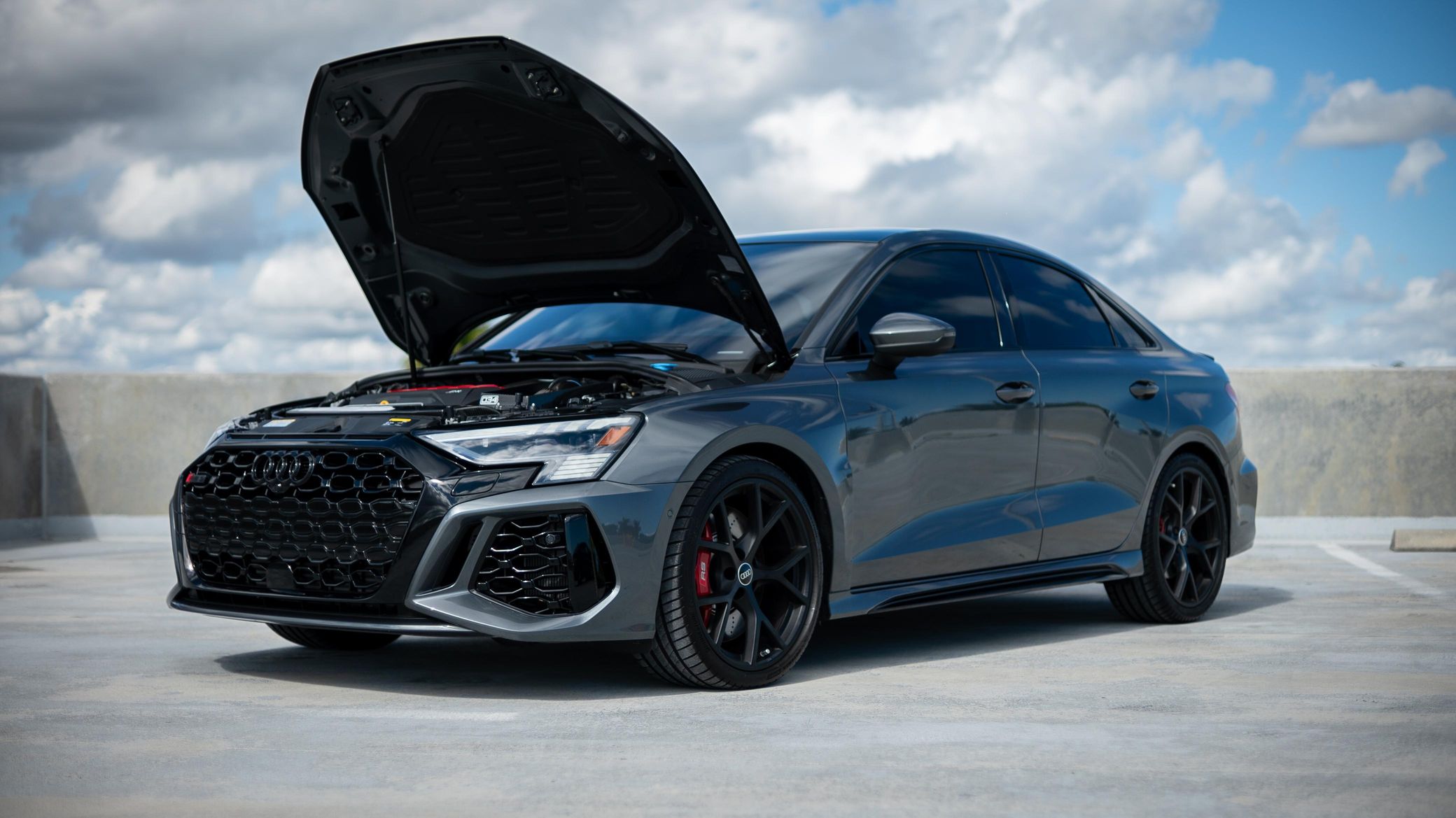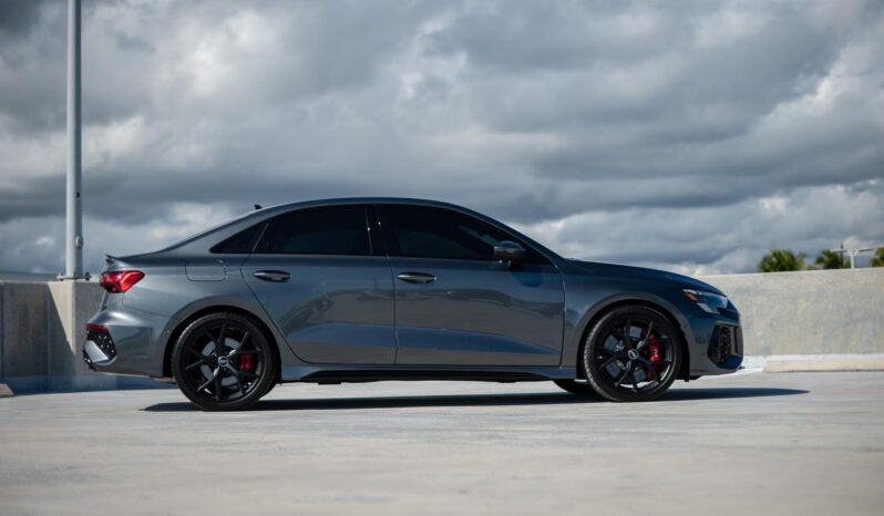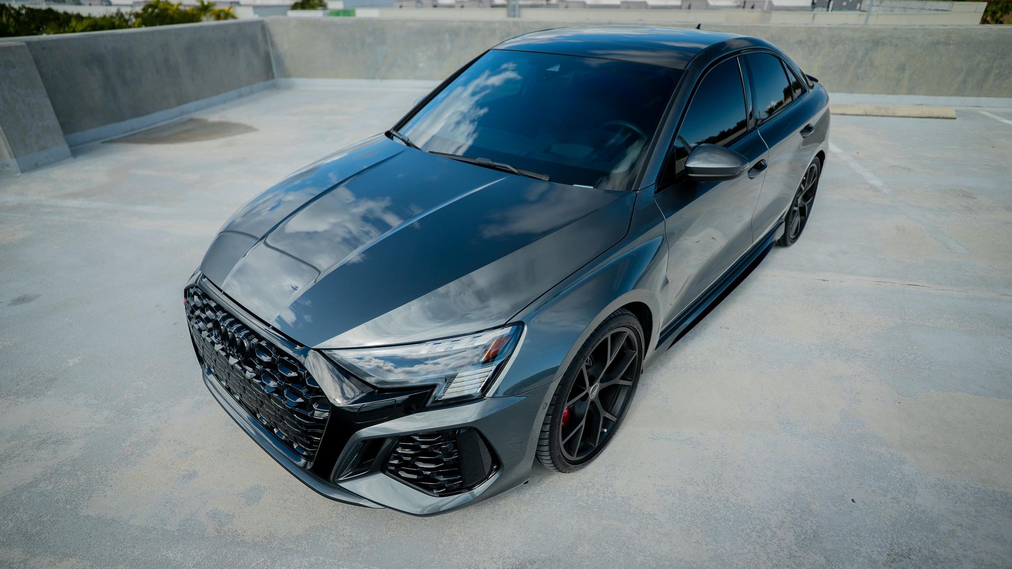 The Audi RS3 is a fantastic sport sedan, boasting excellent performance, great handling, and a powerful turbocharged 5-cylinder with over 400 horsepower paired with Audi’s trademark Quattro all-wheel drive. This particular RS3 shows just 5,100 miles on the odometer, and it features some nice factory equipment – including the RS Technology and Black Optic Plus packages, an RS sport exhaust, and heated front seats. Power comes from a 2.5-liter turbocharged inline-5, rated at 401 horsepower and 369 lb-ft of torque. Output is sent to all four wheels via a 7-speed dual-clutch automatic transmission and Audi's Quattro permanent all-wheel drive system.