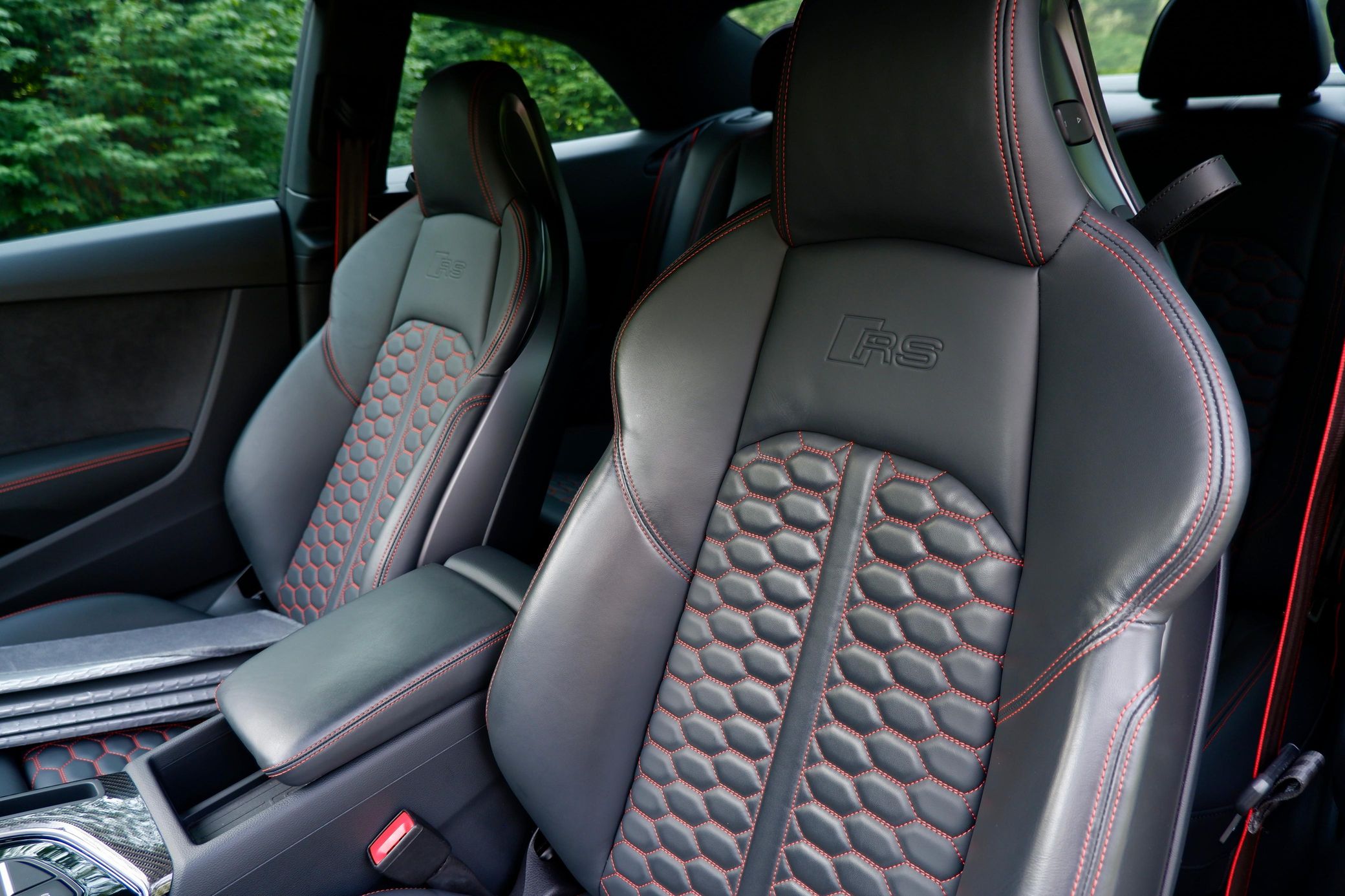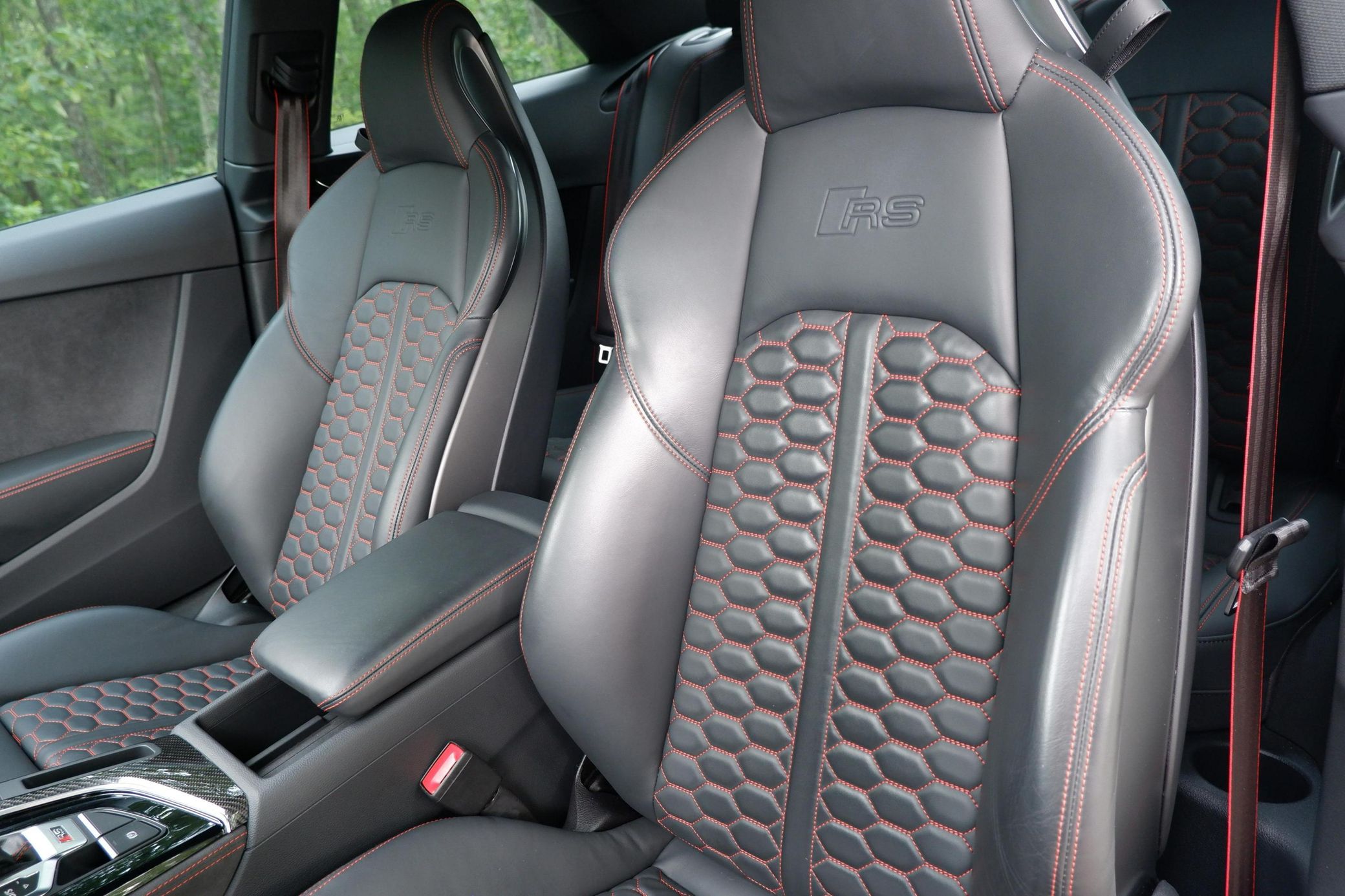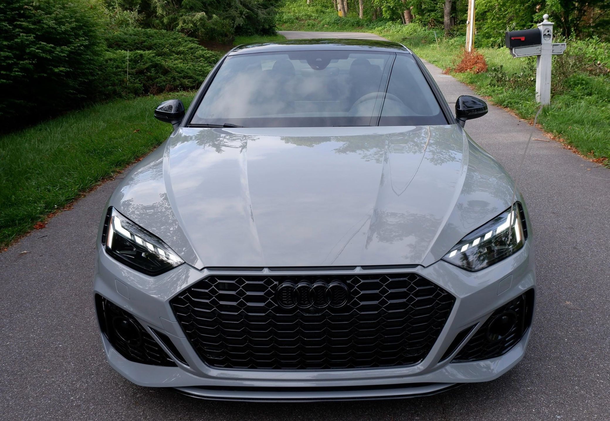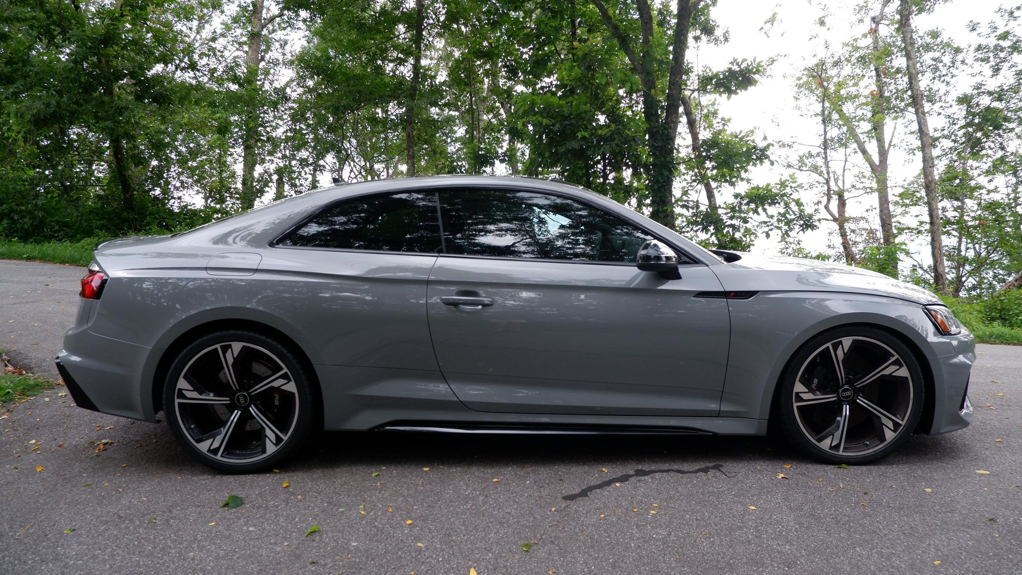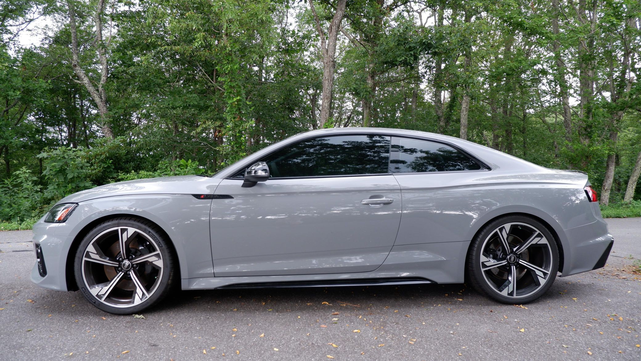 The second-generation Audi RS5 is an excellent performance car, offering a luxurious interior, handsome styling, and amazing performance from its twin-turbocharged V6 that's paired with Quattro all-wheel drive. This particular RS5 is finished in desirable Nardo Gray, and it's very well-equipped with Dynamic, Black Optic, Navigation, RS Design, and Side Assist packages. It's also unmodified, which is another great benefit. Power comes from a 2.9-liter twin-turbocharged V6, rated at 444 horsepower and 443 lb-ft of torque. It spins all four wheels via an 8-speed automatic transmission. Black Optic Package (20-inch 5-arm-flag design wheels, high-gloss black exterior trim and mirror housings)