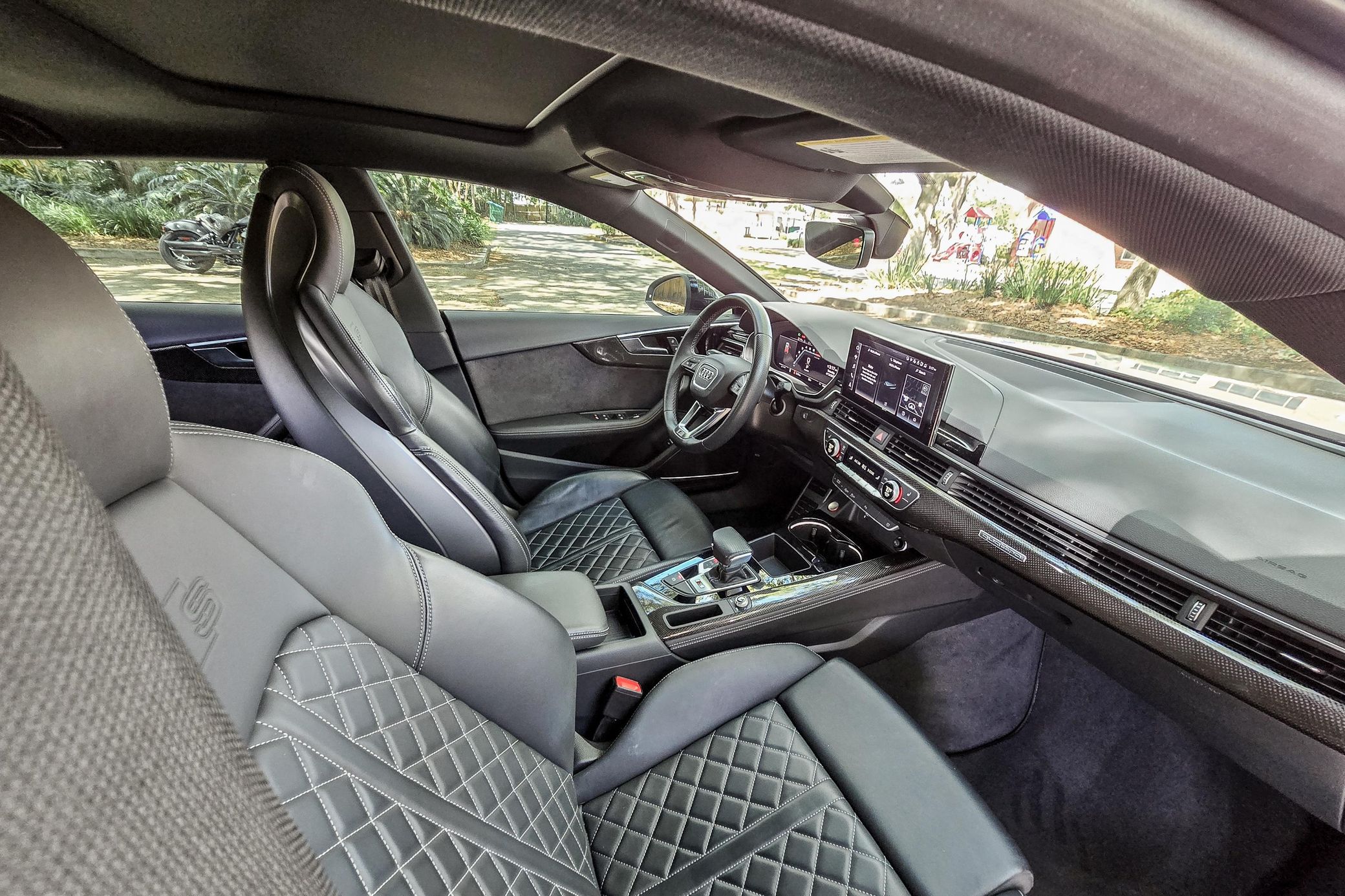 This particular S5 touts some great factory equipment including the Premium Plus and Black Optic packages, a panoramic sunroof, and diamond-stitched Nappa leather upholstery. Power comes from a 3.0-liter turbocharged V6, rated at 349 horsepower and 369 lb-ft of torque. Output is sent to all four wheels via an 8-speed automatic transmission and Audi's Quattro permanent all-wheel drive system.