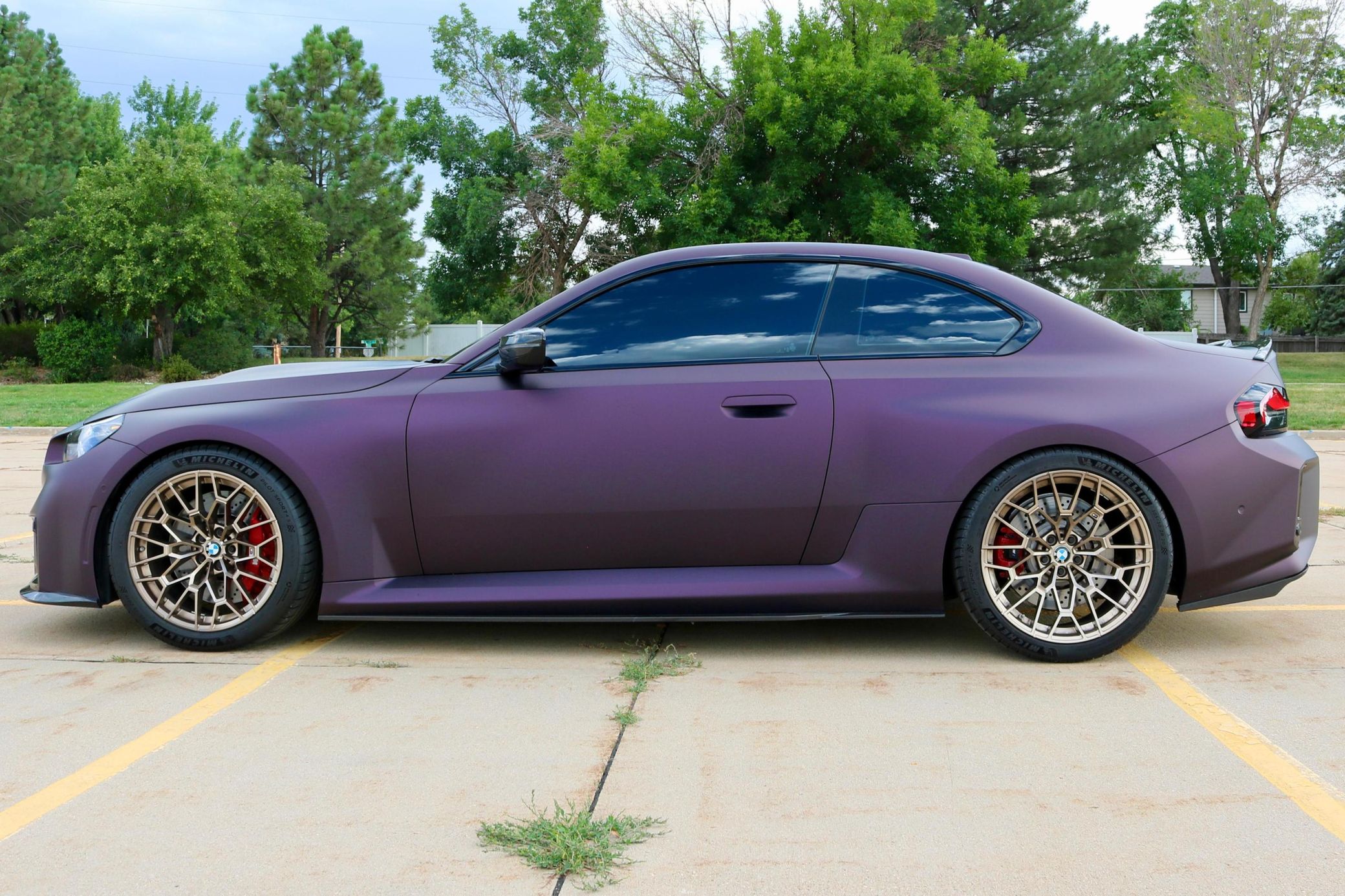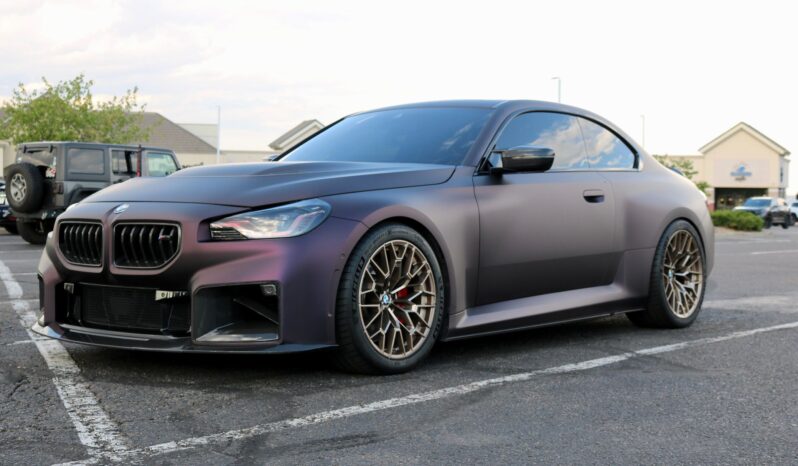 The G87 BMW M2 is an outstanding performance car, as it stays true to its roots as a driver's car beneath the bold exterior styling – thanks to a powerful twin-turbo 6-cylinder engine, rear-wheel drive, and an agile chassis. This particular M2 boasts some desirable modifications, including a set of Style 827M wheels, M Performance suspension, a Valvetronic Designs exhaust, an Alpha-N carbon fiber hood – along with a head-turning satin Midnight Purple wrap. Power comes from an S58 twin-turbocharged 3.0-liter straight-6, rated at 453 horsepower and 406 lb-ft of torque. Output is sent to the rear wheels via an 8-speed automatic transmission.