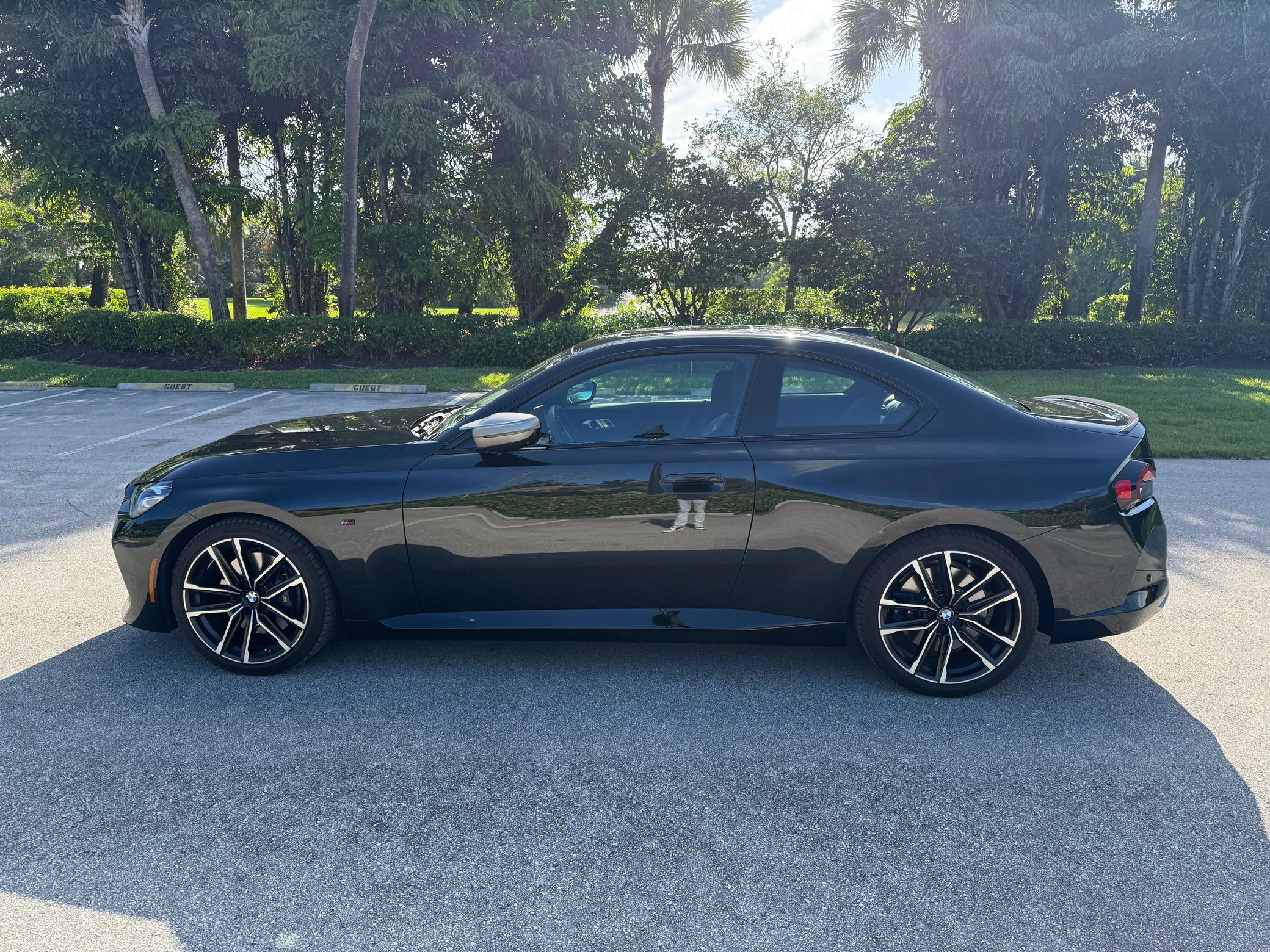 The G42 BMW 2 Series is an excellent sports coupe that offers compact sizing and an engaging driving experience. This particular M240i features a 382-horsepower turbocharged straight-6 and some great factory equipment, including the Premium and Parking Assistance packages, 19-inch wheels, an M Sport differential, and adaptive M suspension.