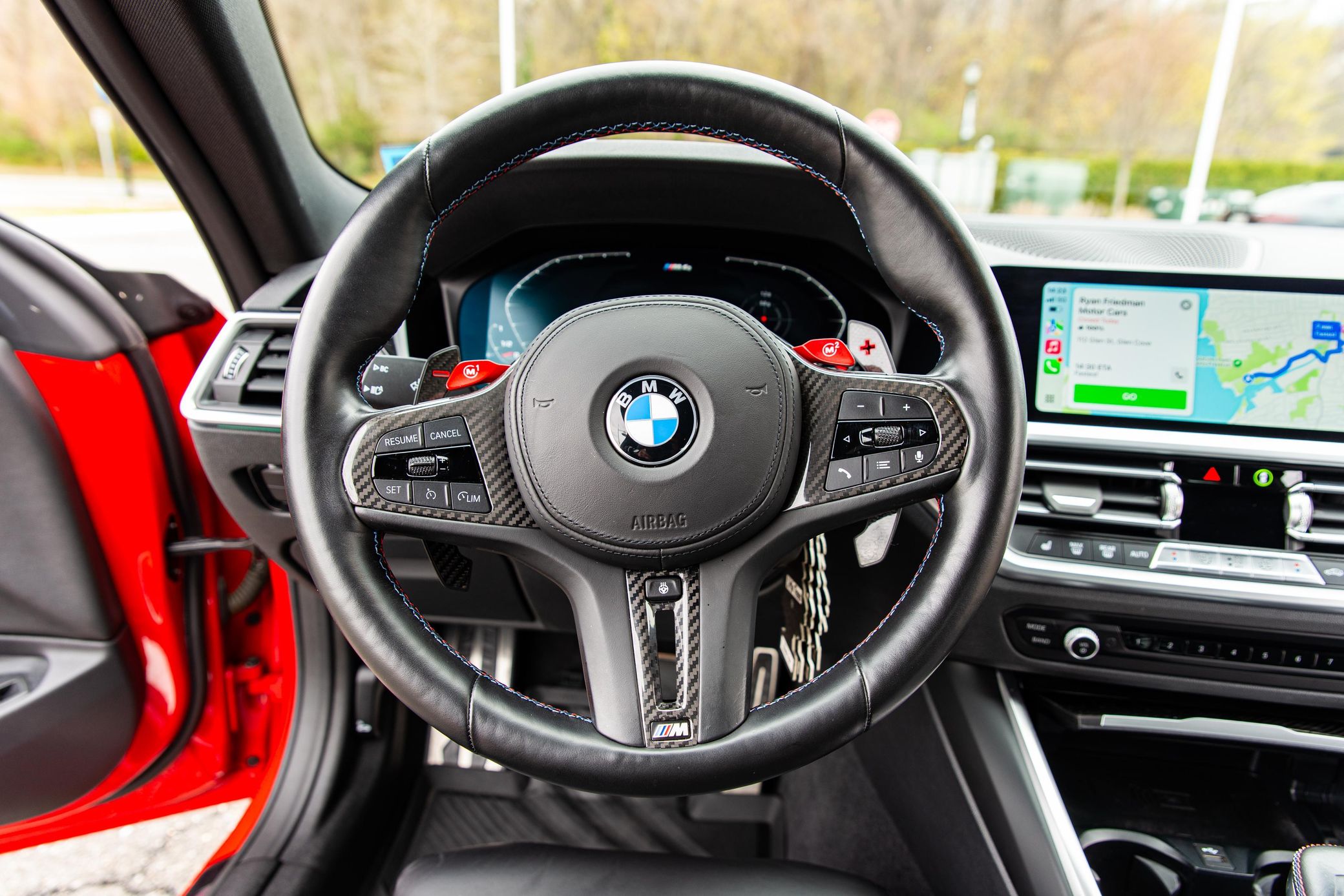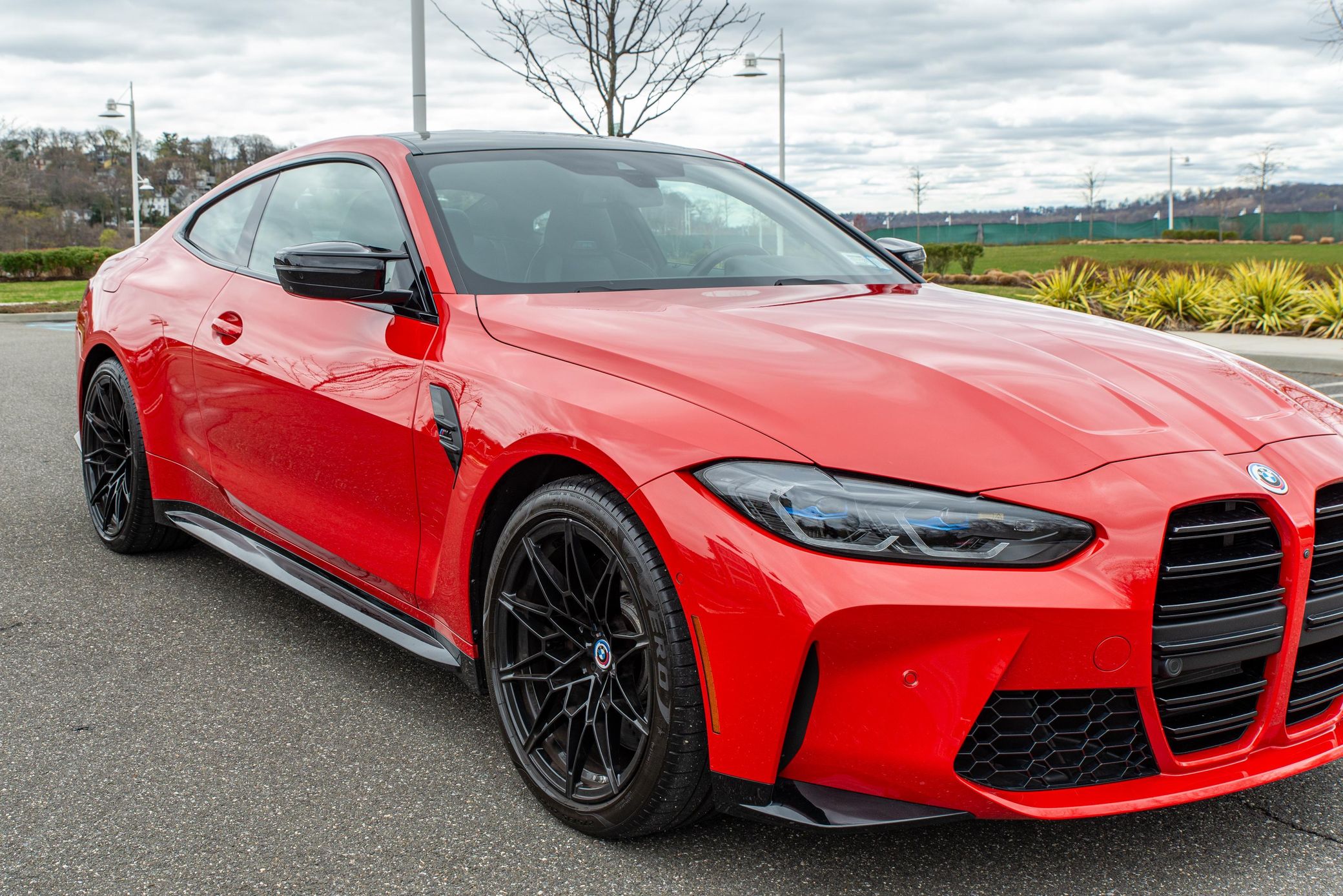 This particular M4 is finished in gorgeous Toronto Red Metallic, and it's well-equipped with all-wheel drive, the Executive Package, 19-inch front and 20-inch rear Style 826M wheels, a carbon fiber roof panel, and a Harman/Kardon surround sound system. Power comes from a 3.0-liter twin-turbocharged straight-6, rated at 503 horsepower and 479 lb-ft of torque. Output is sent to the four wheels via an 8-speed automatic transmission and BMW's xDrive all-wheel drive system.